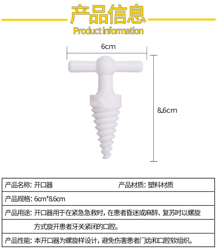 一次性医用急救开口器塑料开口器独立包装螺旋开口器撑开固定口腔 独立包装灭菌【开口器】 2个