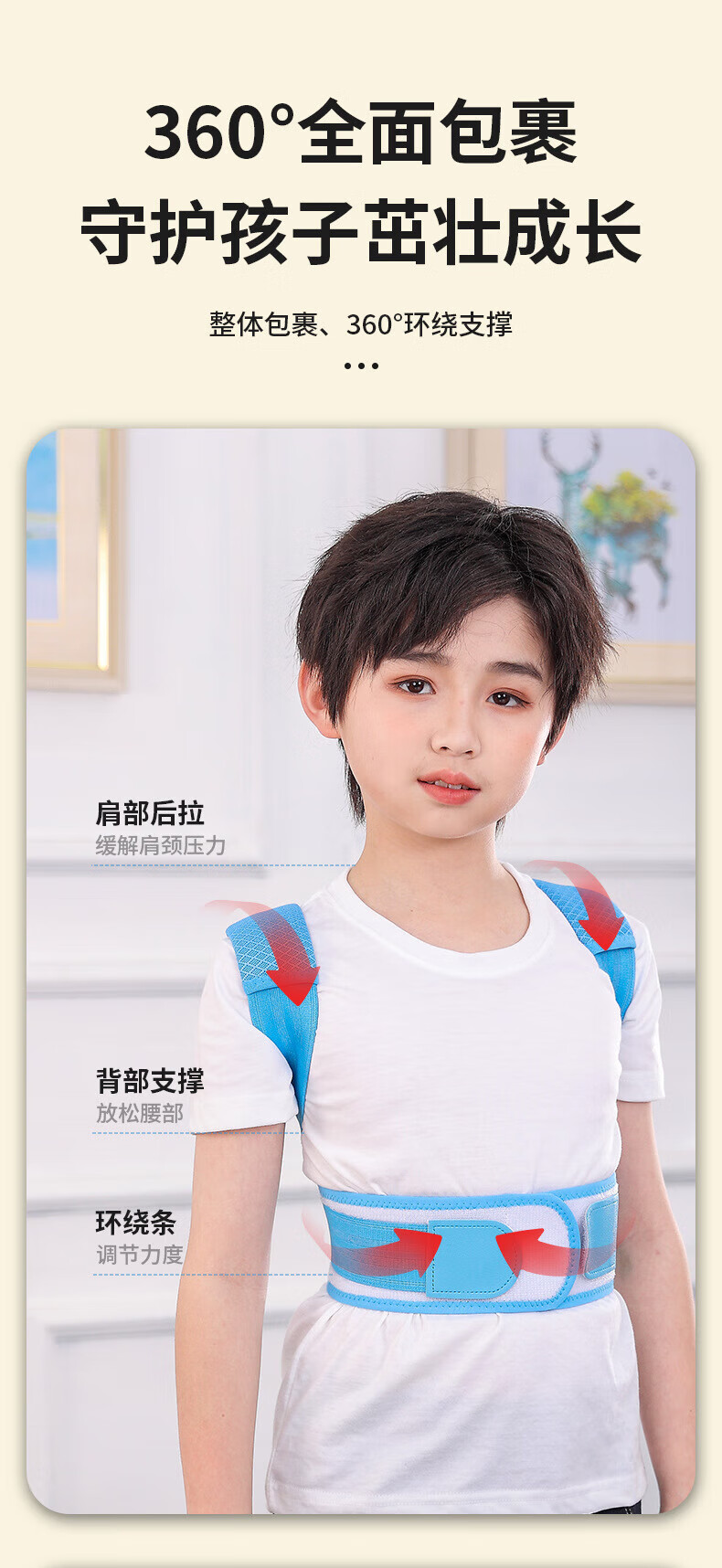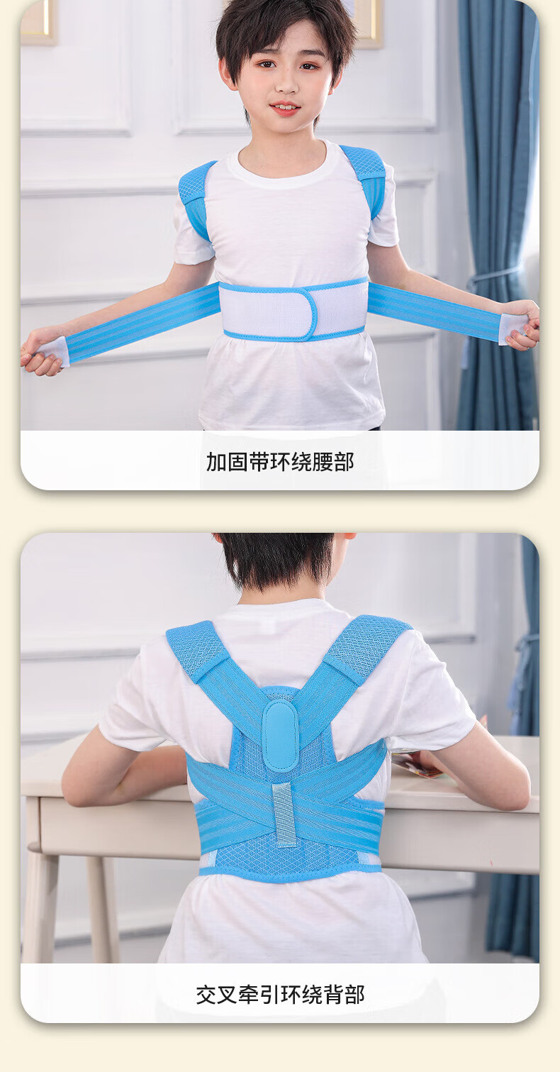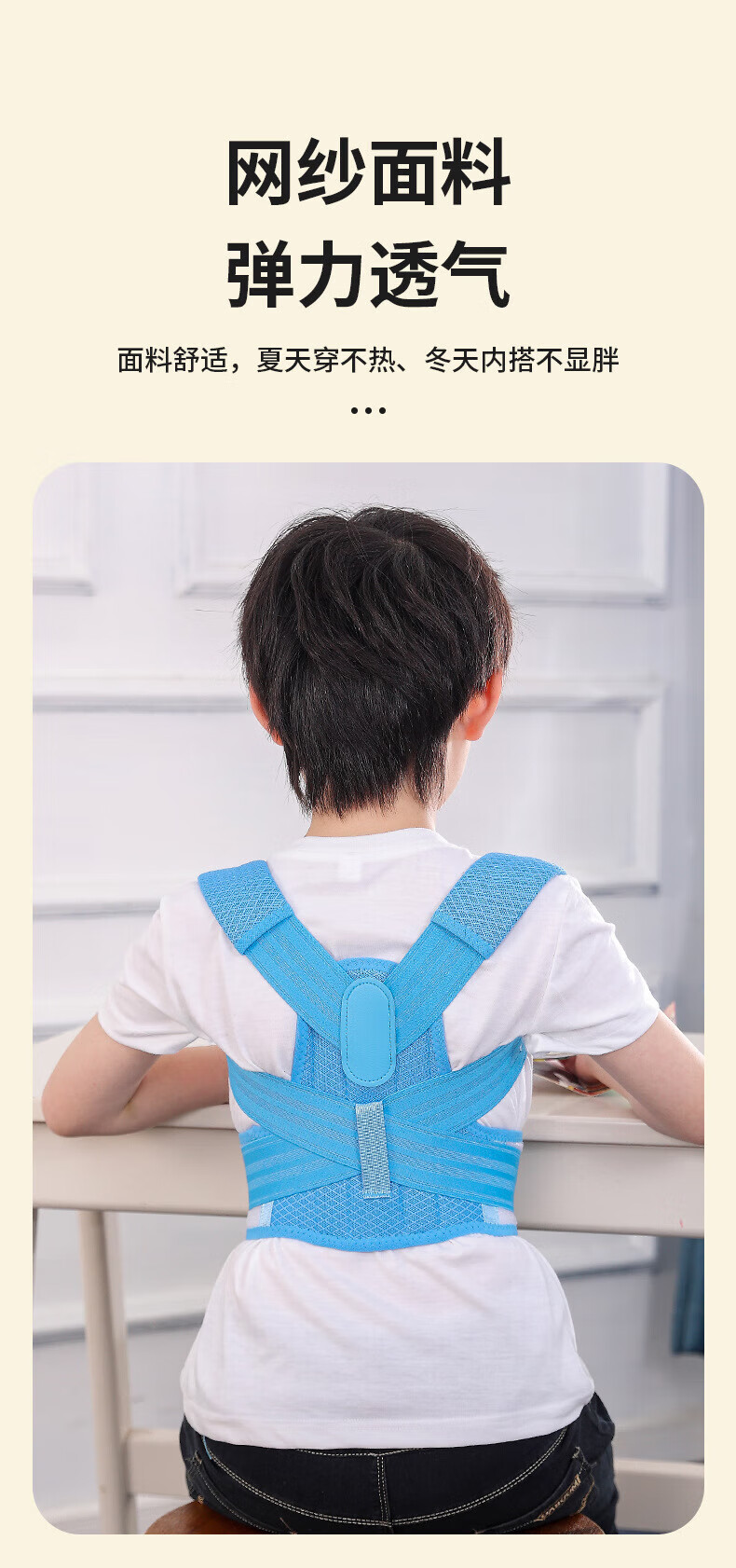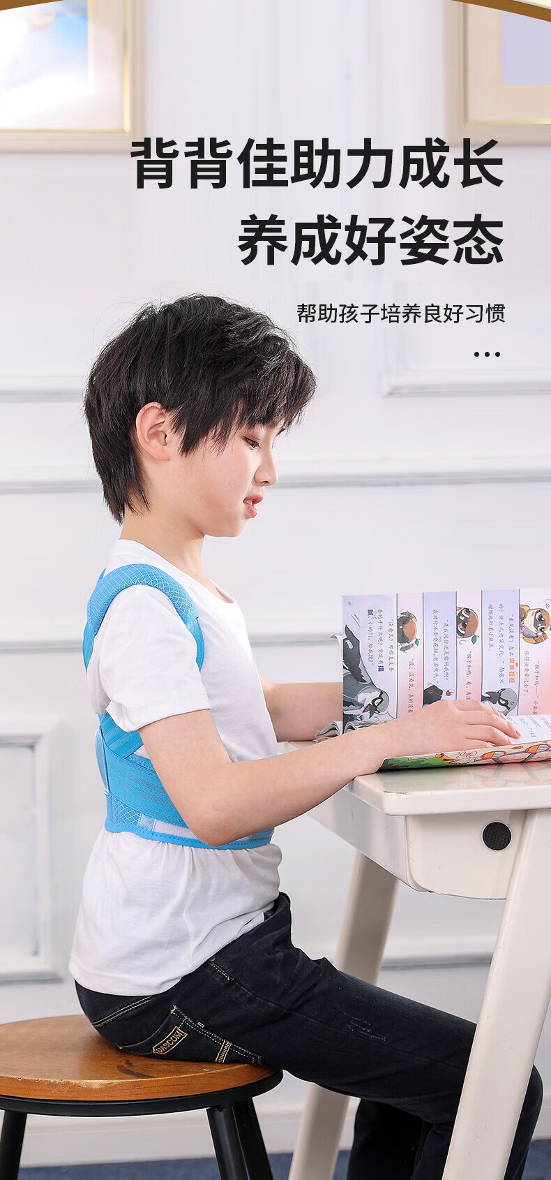 背背佳儿童6到12岁-16岁驼背矫正神器12岁-18学生青少年驼背矫正器透气 王子蓝(透气双龙骨) XL号【体重80-110斤】