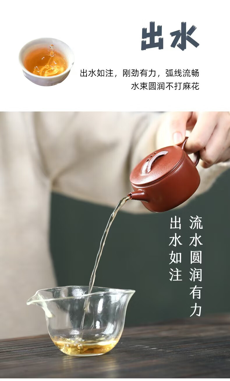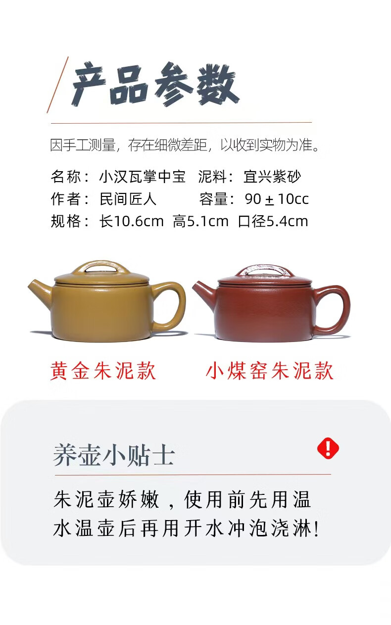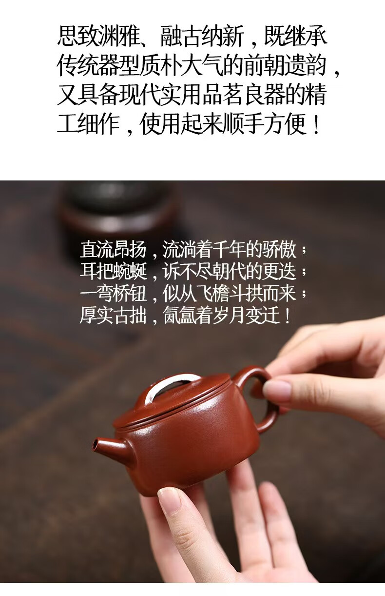 紫砂壶全手工泡茶壶泡茶壶养生壶 黄金朱泥汗瓦(单壶)
