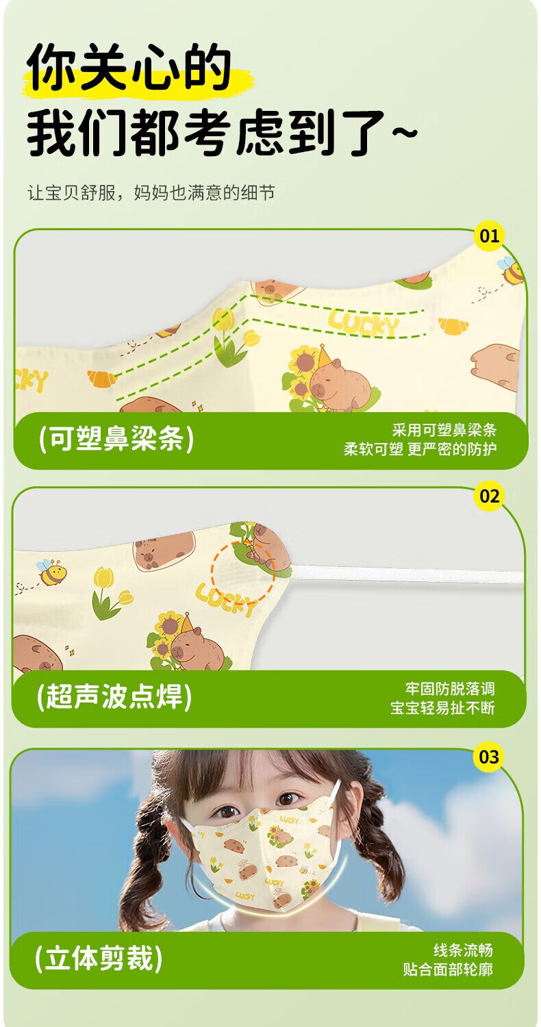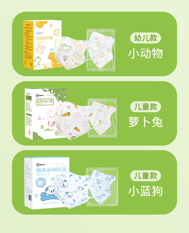 超亚儿童款3D立体口罩医用外科级一次性婴幼儿宝宝0-9岁学生防尘保暖 【3-6岁】萝卜兔+粉色小熊【60只独立装】