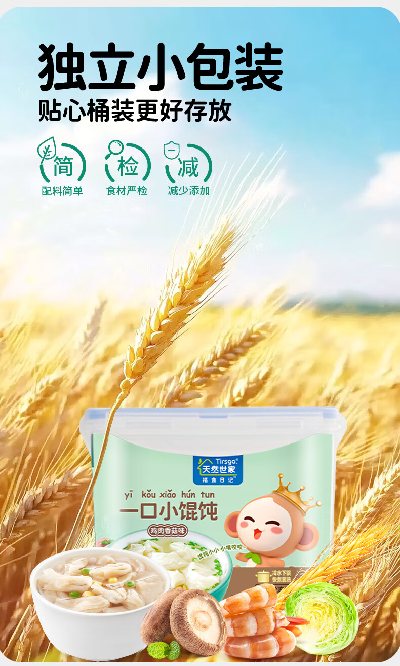 天然世家一口小馄饨小云吞方便速食混沌面食早餐无需冷藏送宝宝儿童辅食谱 【囤货装】松茸鸡肉彩蔬味馄饨桶装3桶
