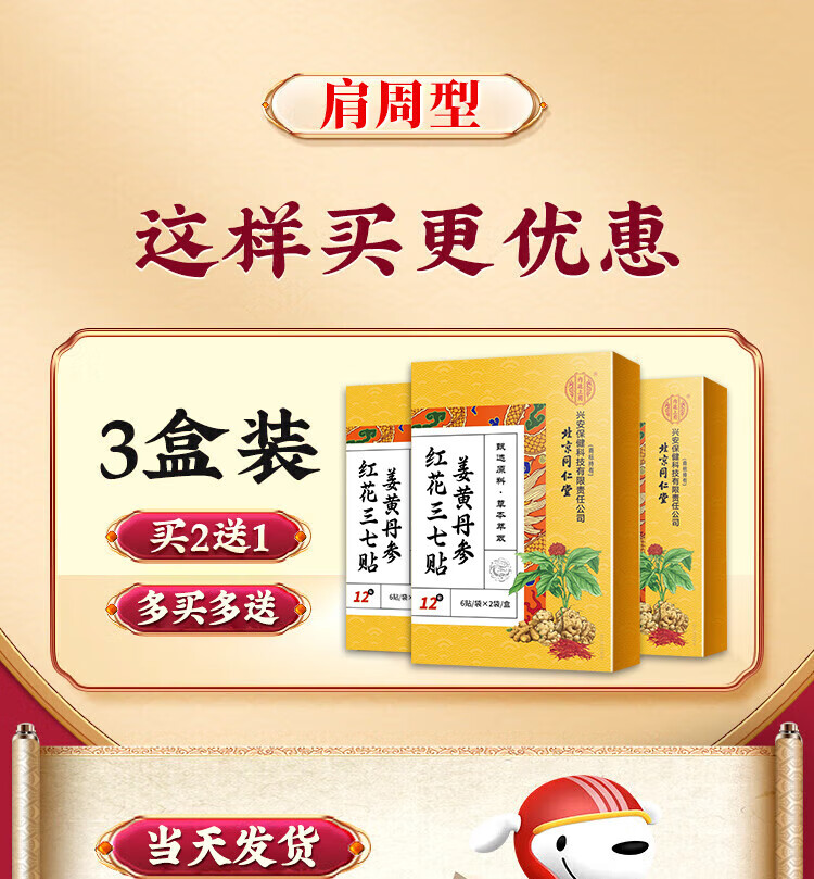 南京同仁堂肩周炎专用贴膏药肩膀疼痛僵硬抬臂困难劳损严重抬不起胳膊热敷贴 一盒装 特效南京同仁堂肩周炎专用贴膏
