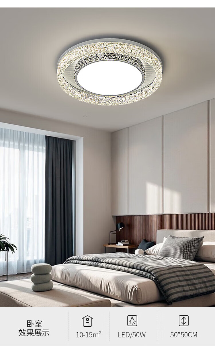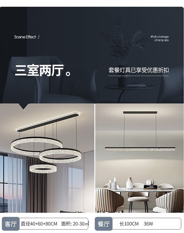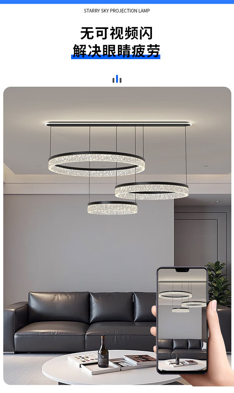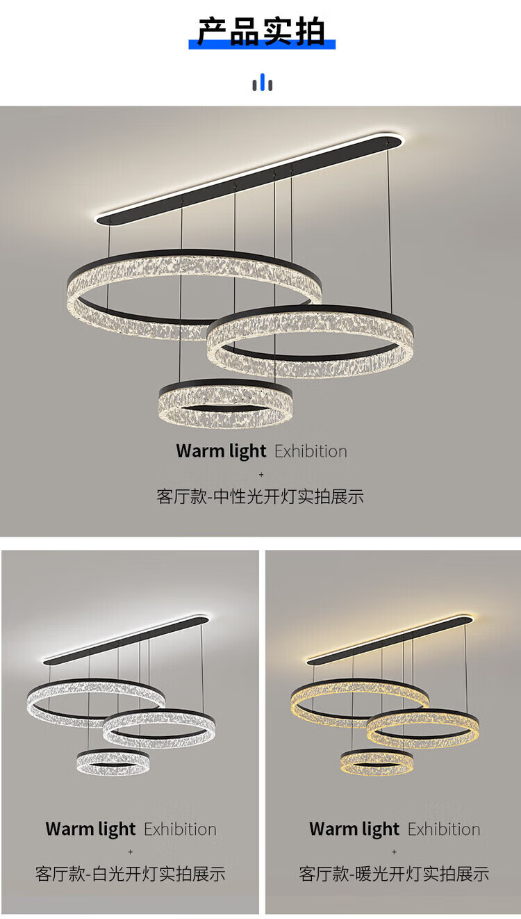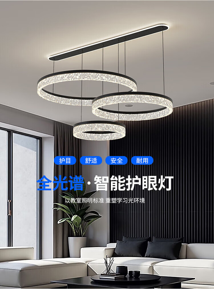 欧普照明客厅灯现代轻奢极简大气感圆形吊灯2026新款护眼灯具全屋套餐 送安装-4室1厅A客厅无极其他三 意式轻奢冰裂纹吊灯
