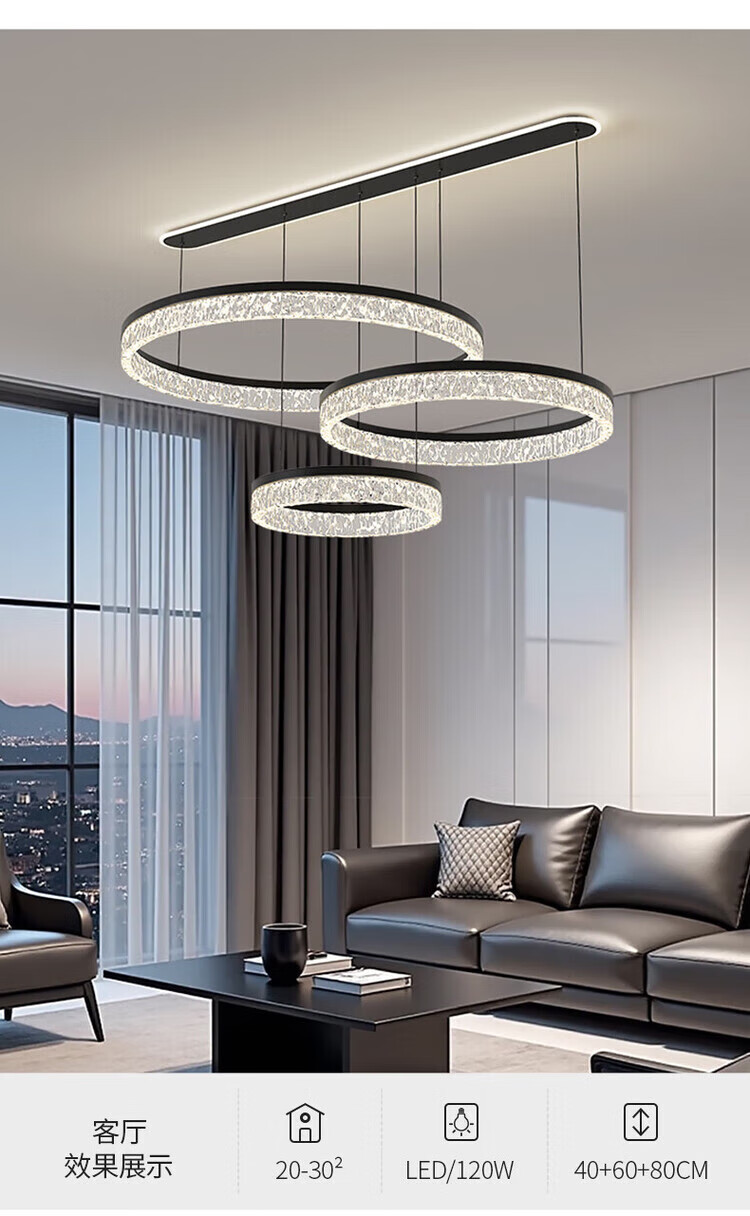 灯诺堡2026款北欧吊灯现代简约大气环形餐厅灯led灯极简创意大厅主灯 五圈大号100+80+60+40+30 小爱同学