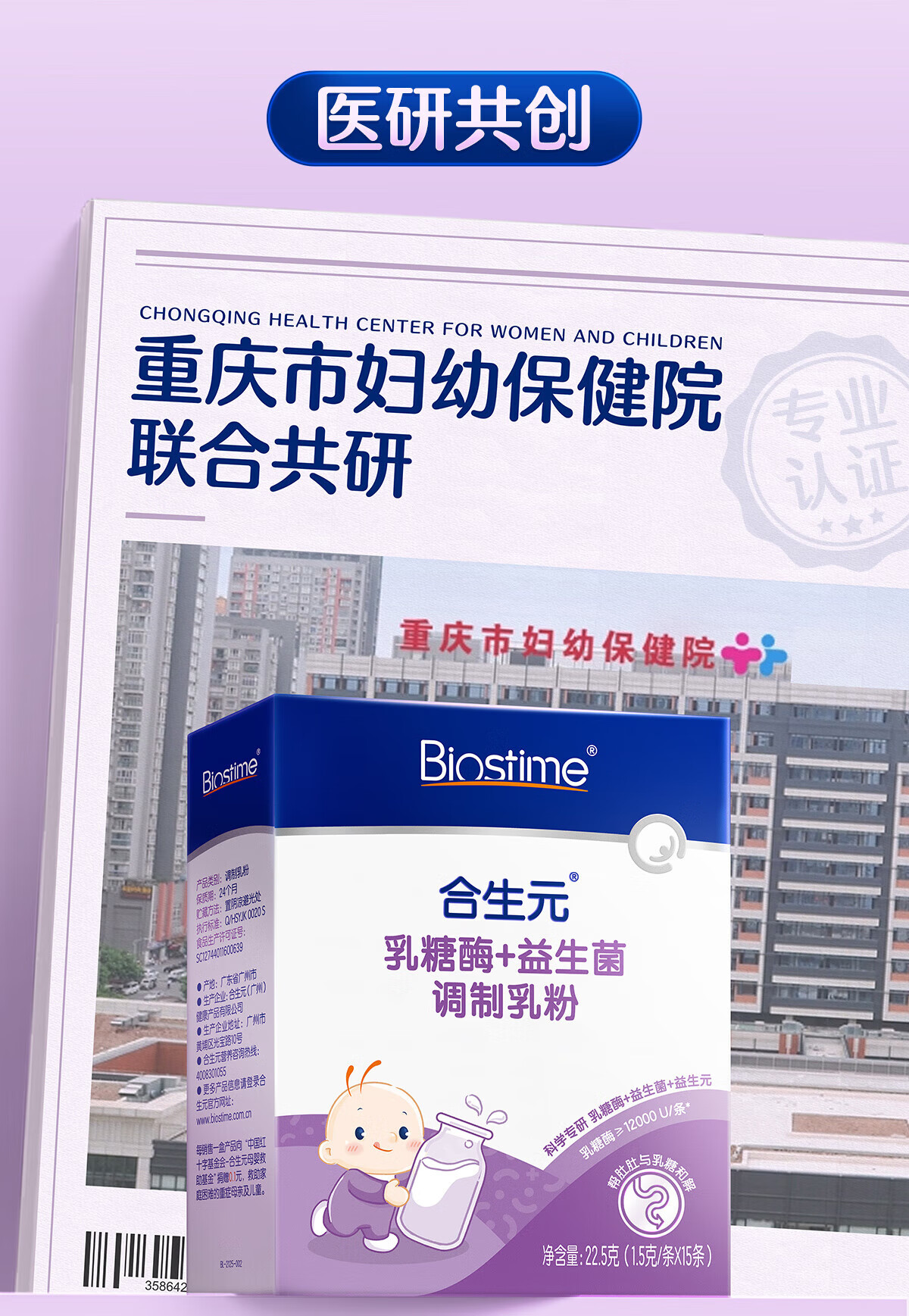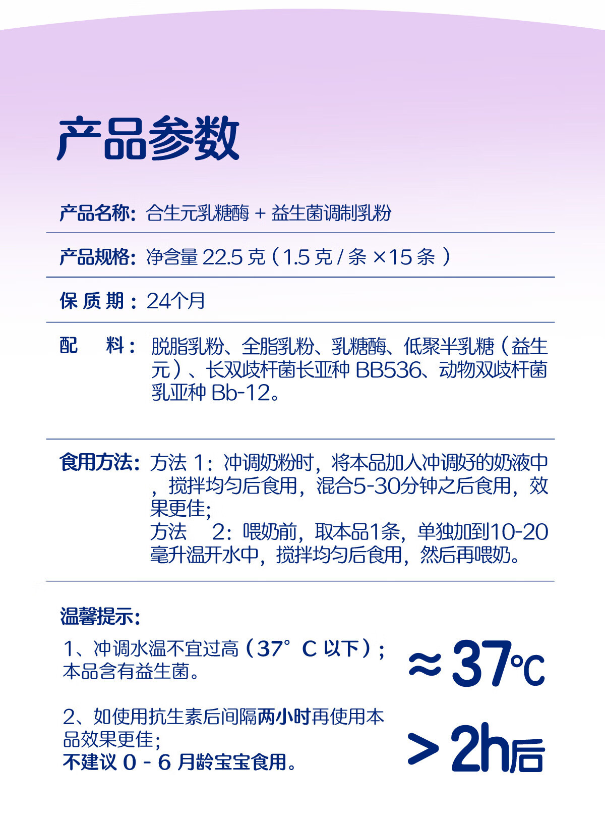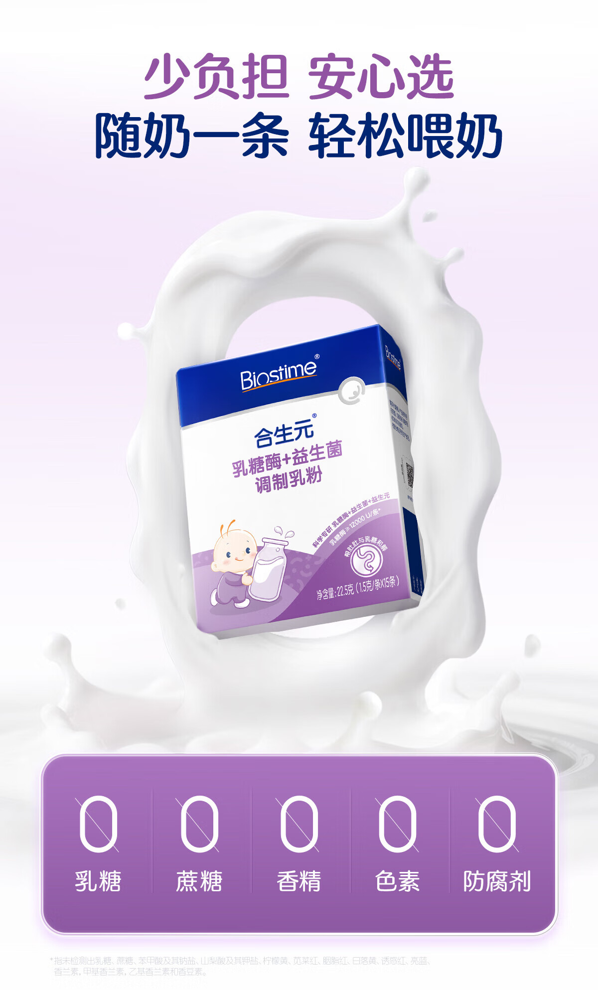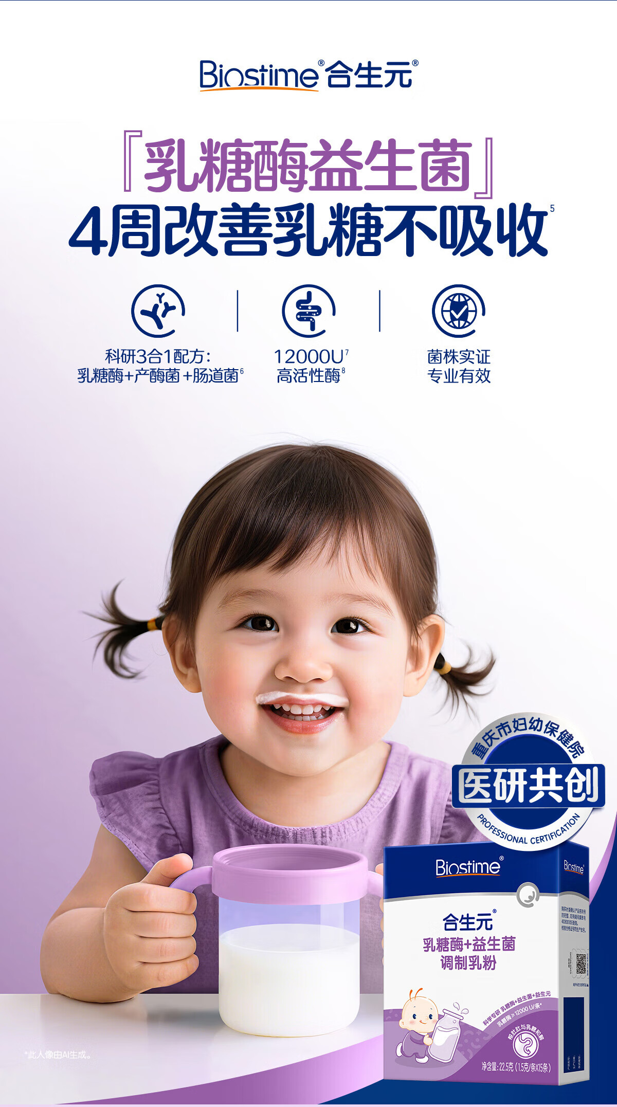合生元乳糖酶益生菌6个月以上婴幼儿调制乳粉消化酶宝宝乳糖不耐受奶伴 【缓解乳糖不吸收】 15条*1盒