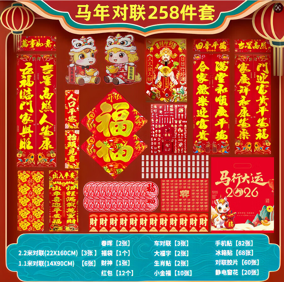 BODR WEWA马年春联大礼包春节对联过年年画年货福字贴高档新年装饰 306件套