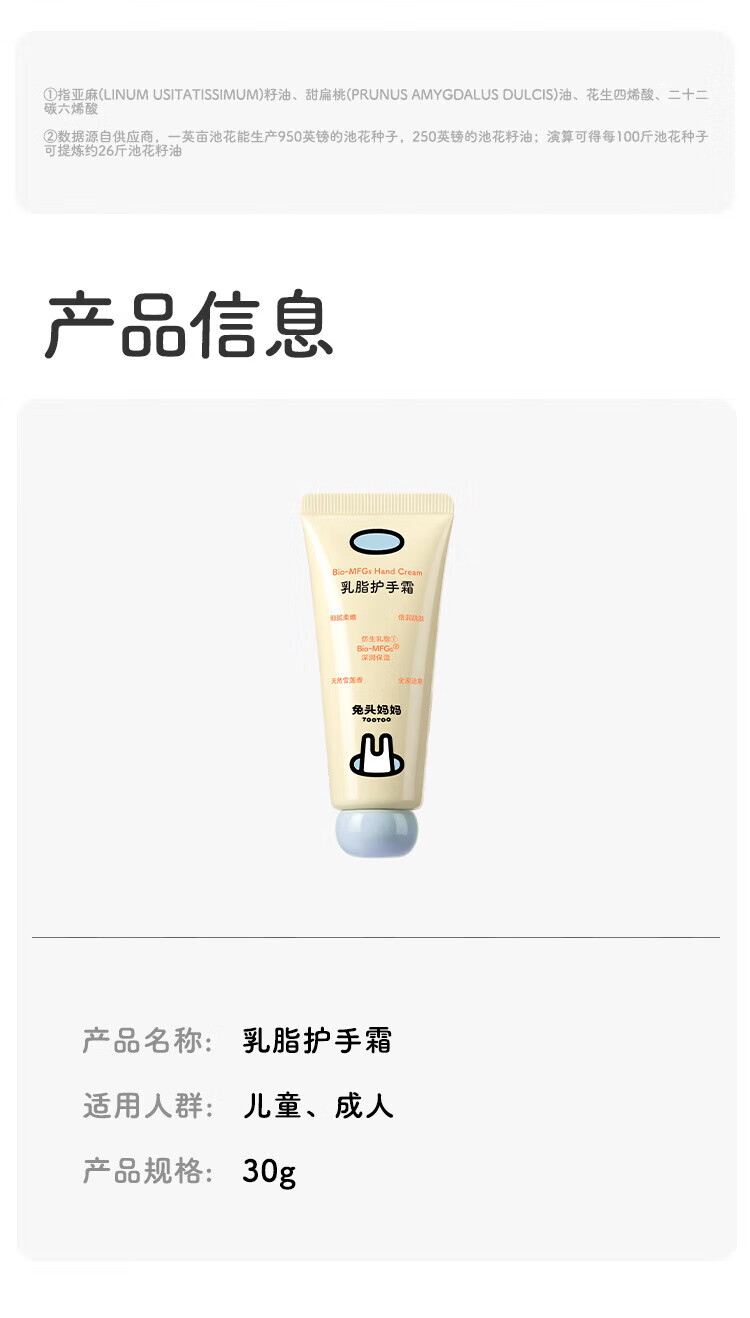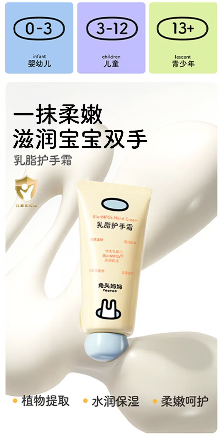 兔头妈妈儿童护手霜滋润保湿防干裂 乳霜护手霜30g*2