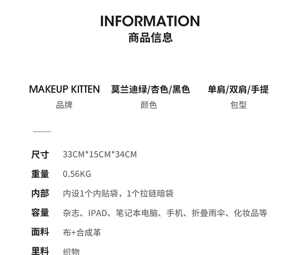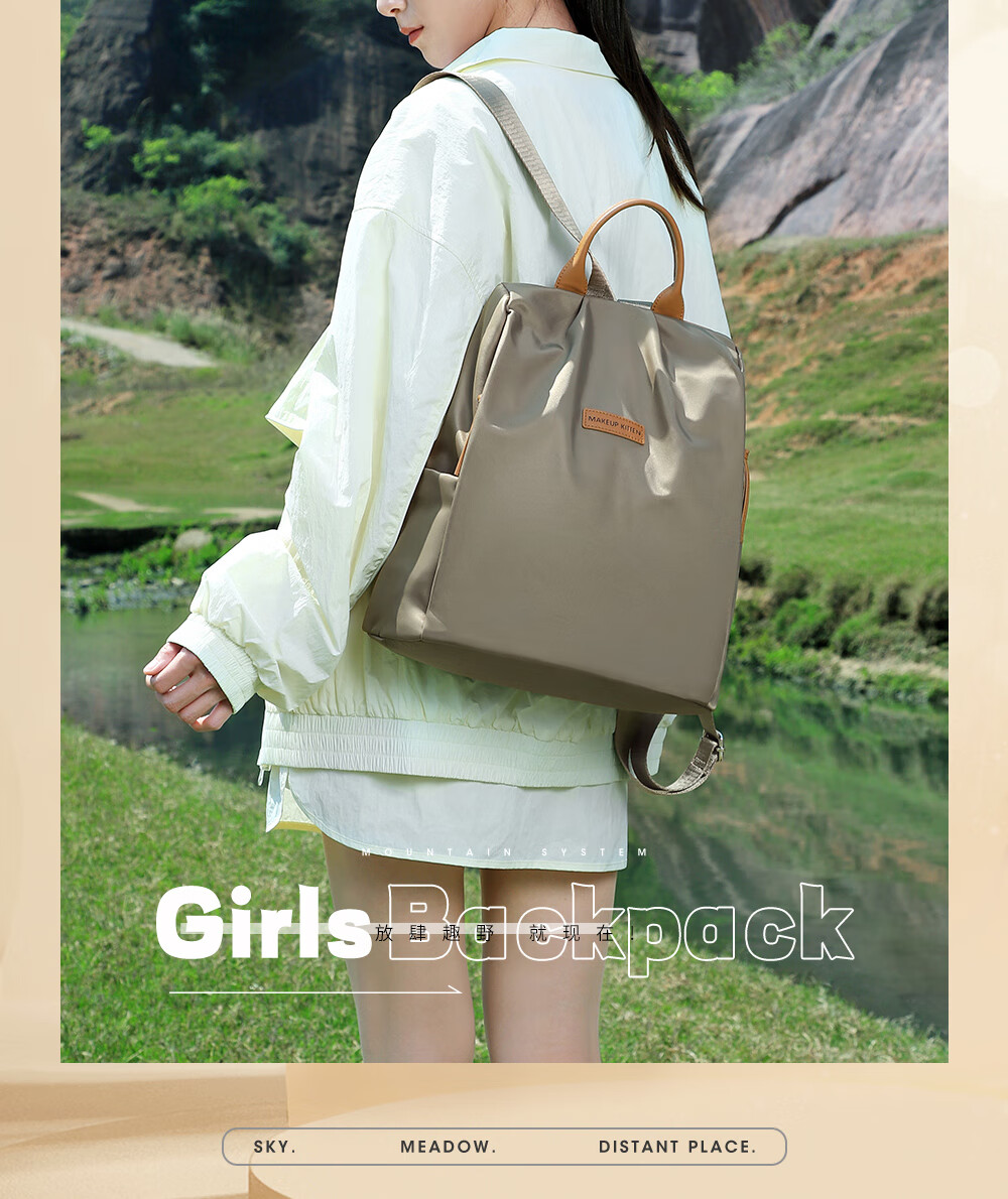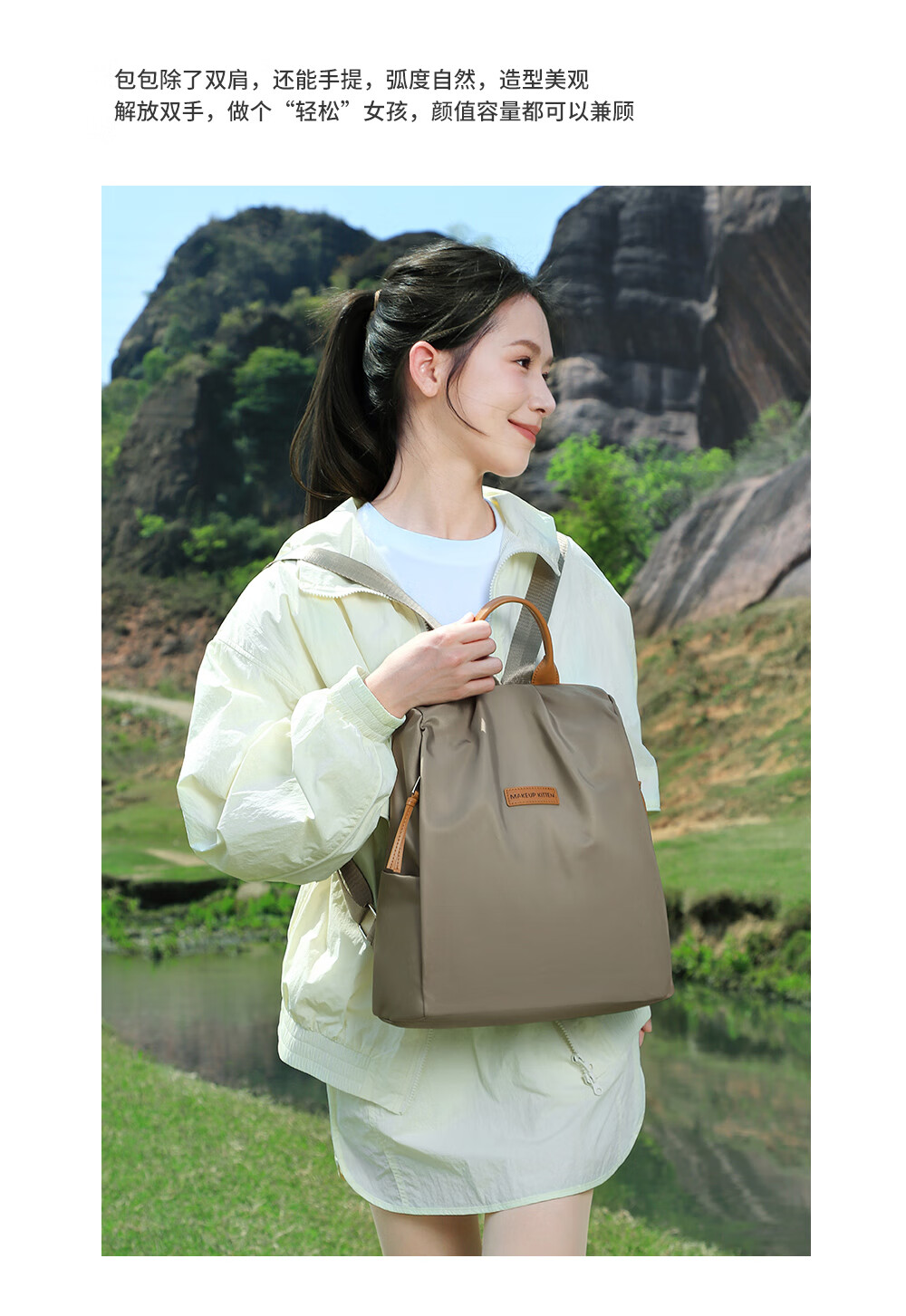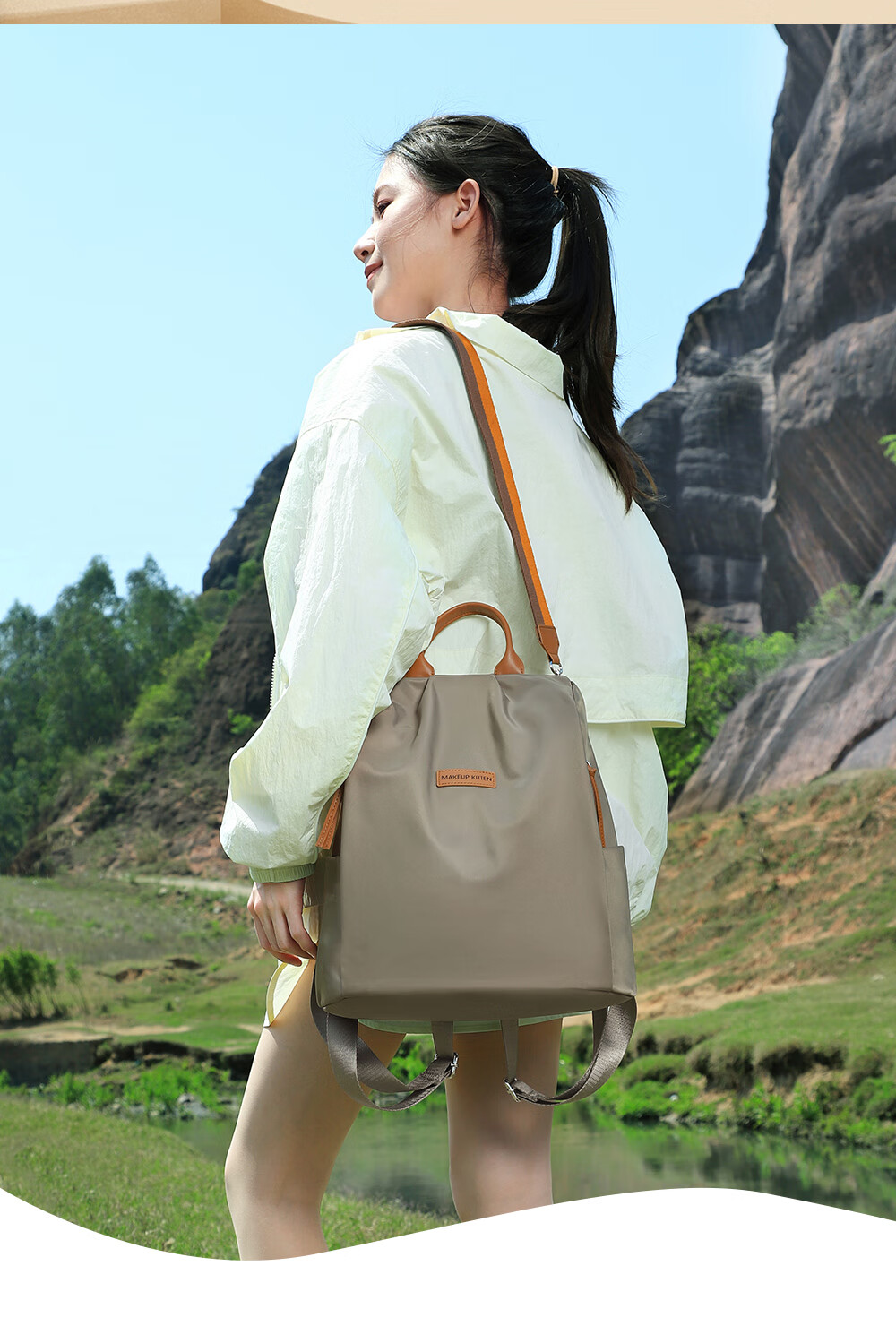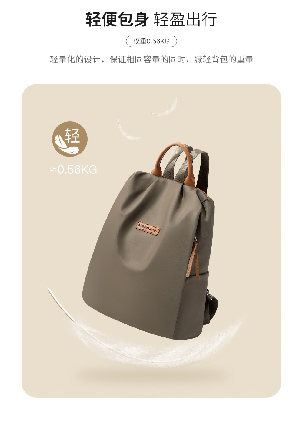 MAKEUP KITTEN双肩包女2026轻便情人节背包时尚户外旅行包通勤防泼水牛津布书包 黑色新年礼物