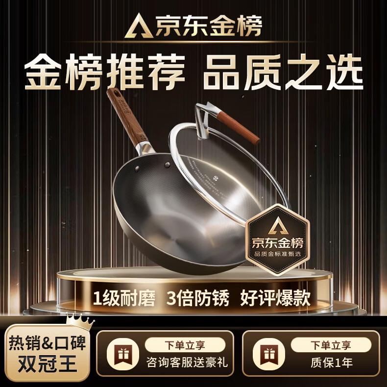 中康铁锅炒锅不粘锅第四代深氮平底锅精铁无涂层电磁炉燃气通用32cm