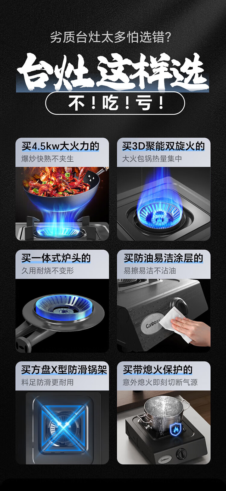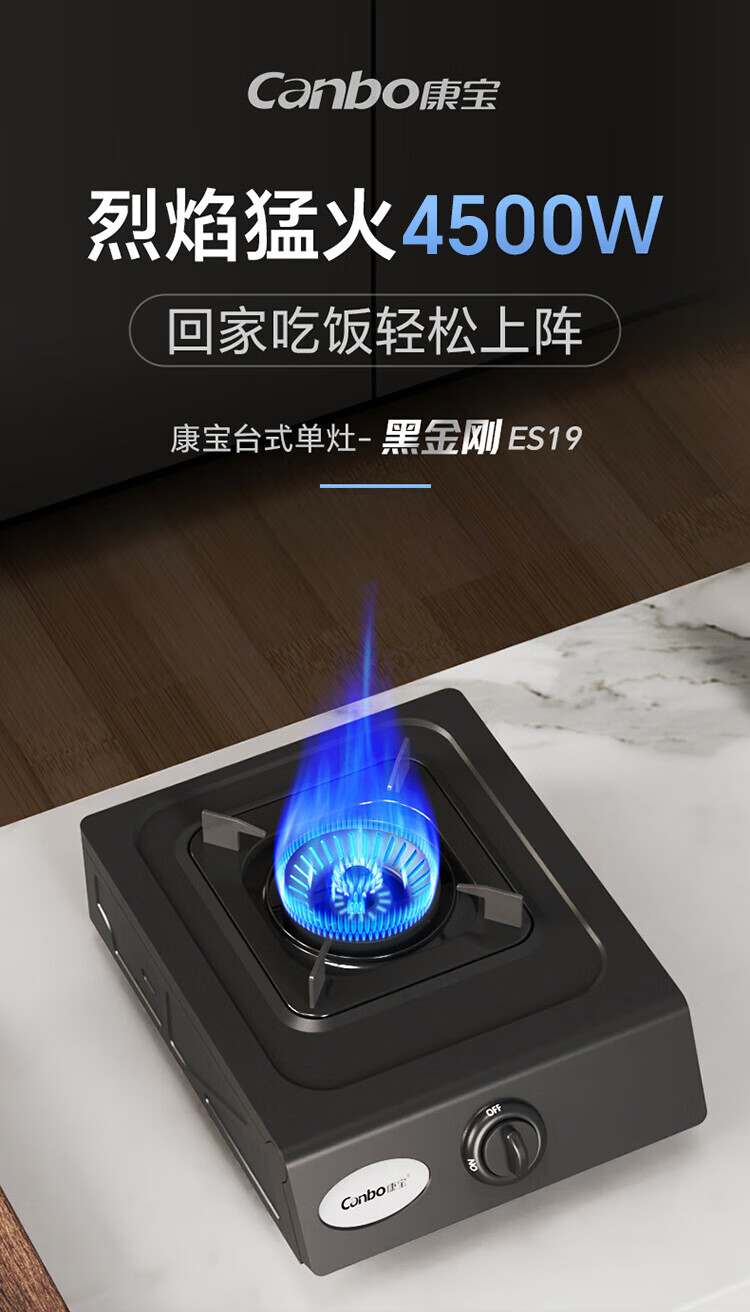 康宝(Canbo)家用罐装煤气灶台燃气灶具单眼炉具【政府补贴】4.5kW大火力台式猛火单灶JZY-H145-ES19 液化气
