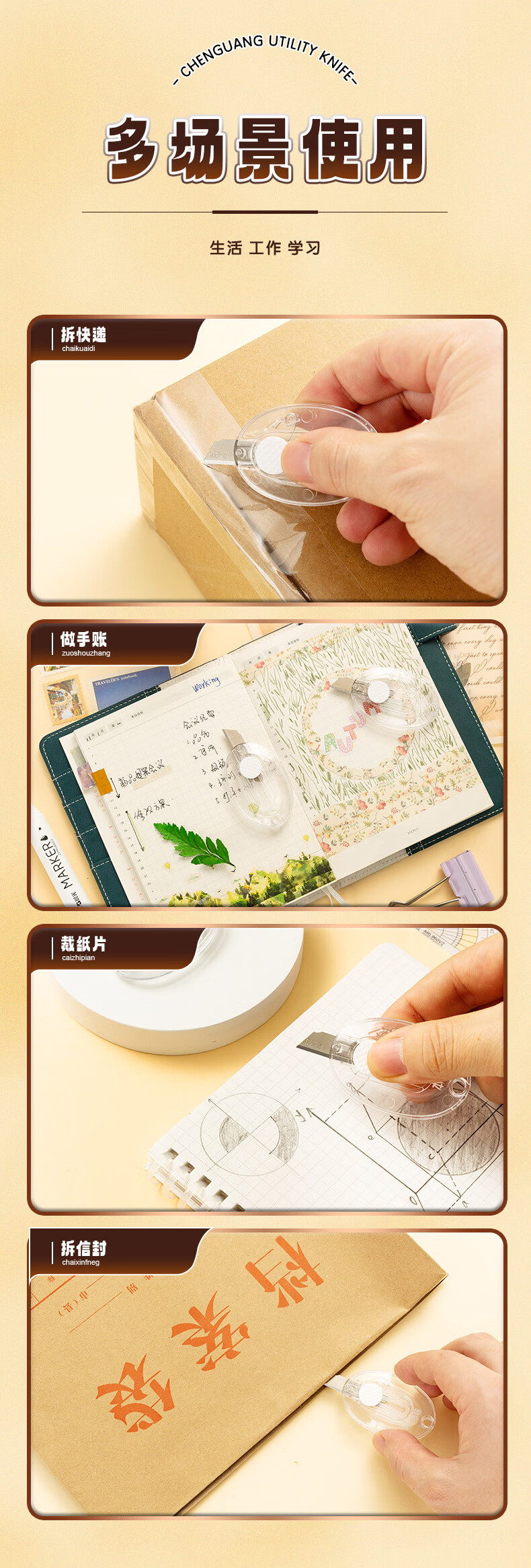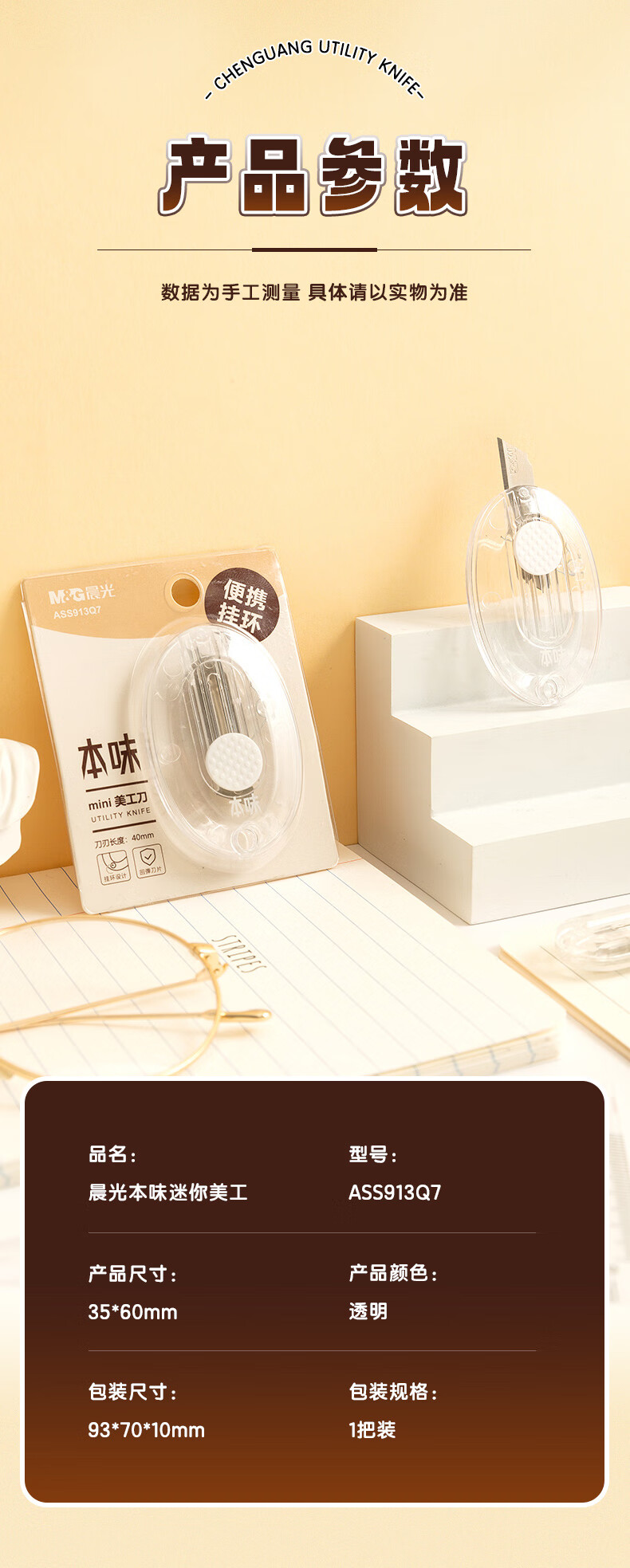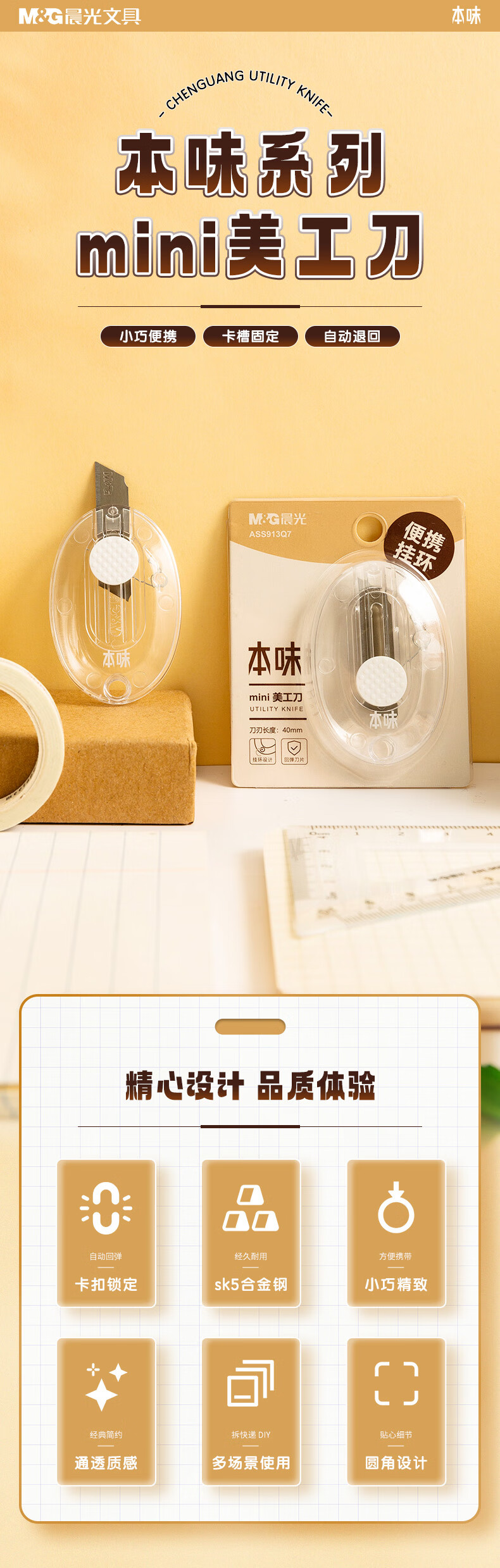 晨光(M&G)文具本味迷你挂环型随身美工刀 便携拆快递小刀 开箱神器裁纸刀 单把装 ASS913Q7