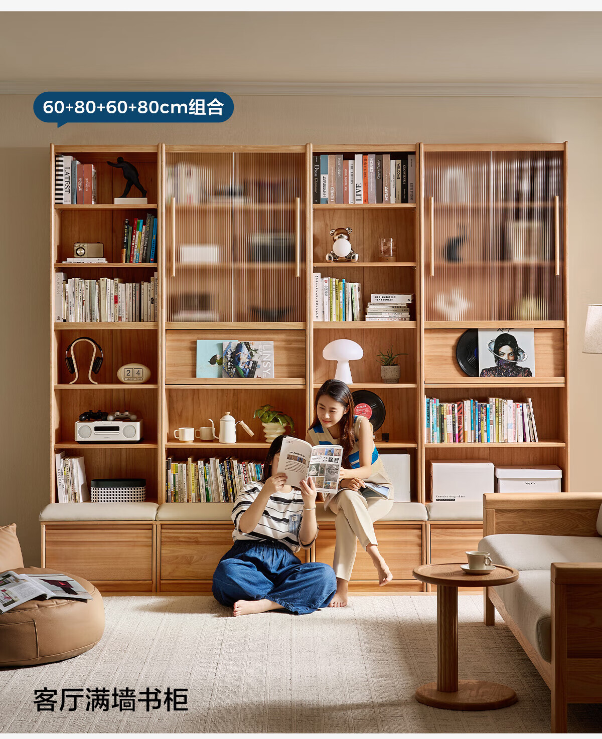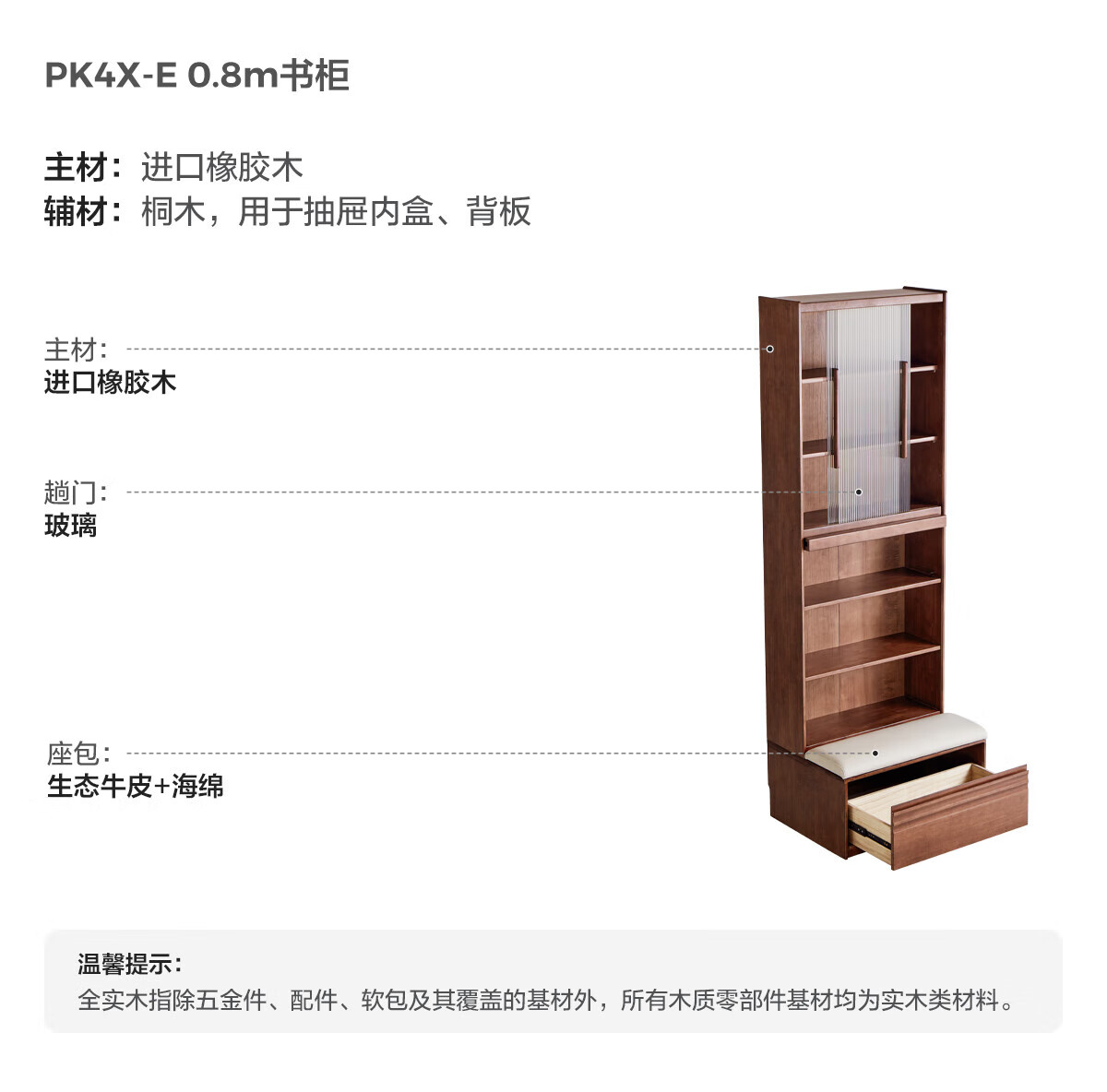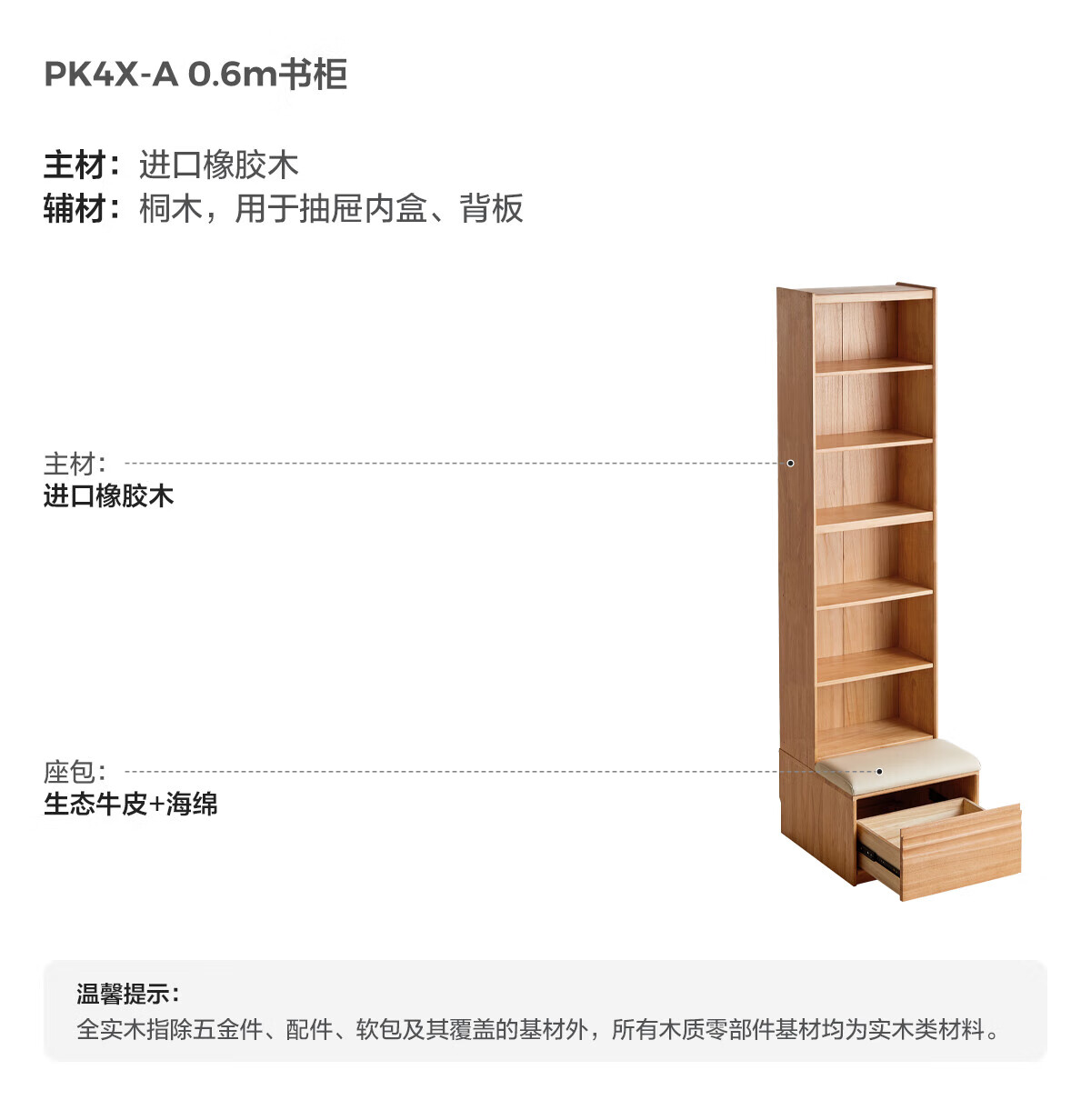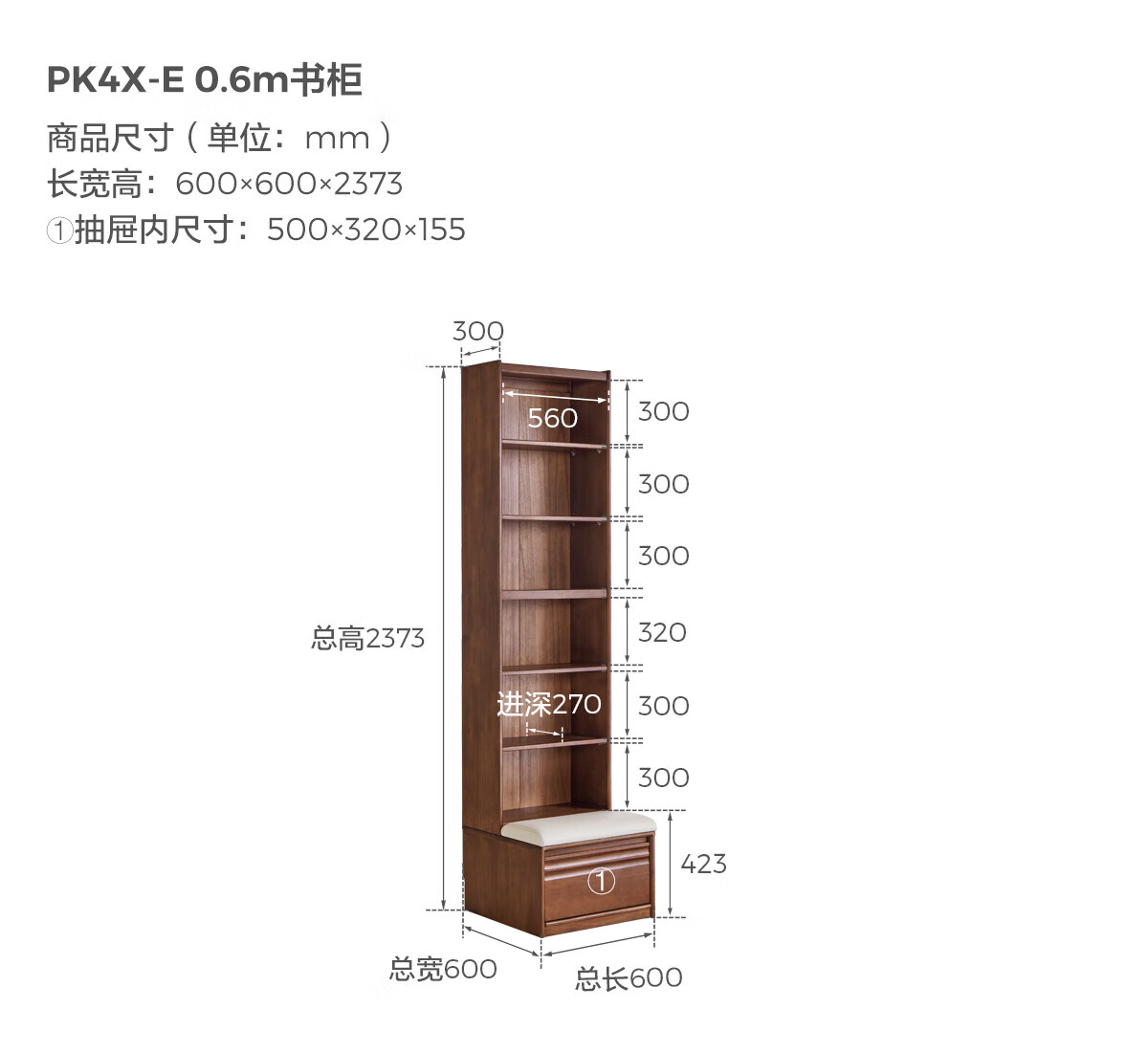 林氏家居中古风实木书柜组合柜家用客厅收纳立柜靠墙木业小满系列PK4X 【全实木|胡桃色】0.6m卡座书柜