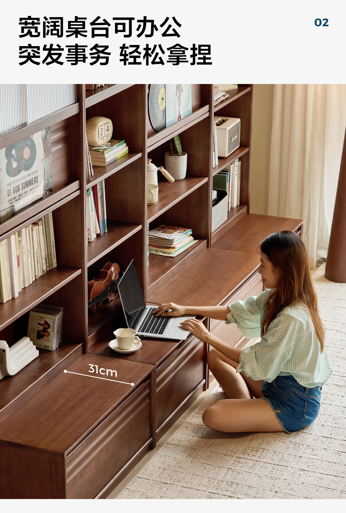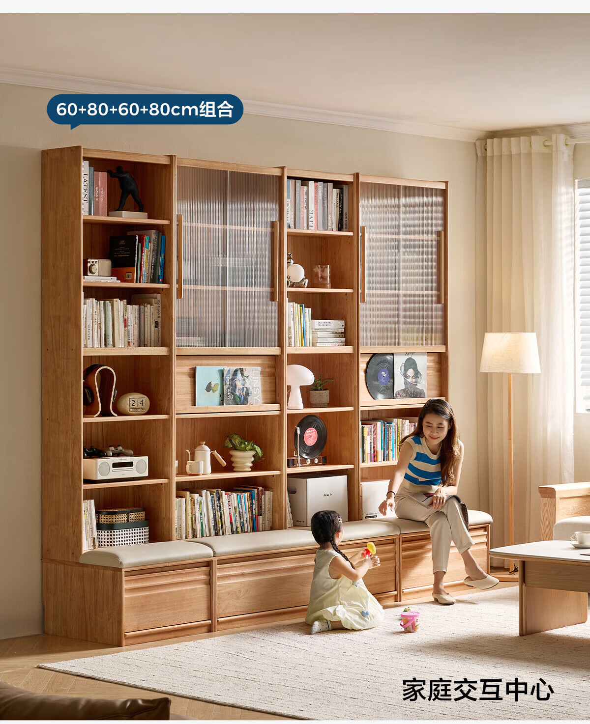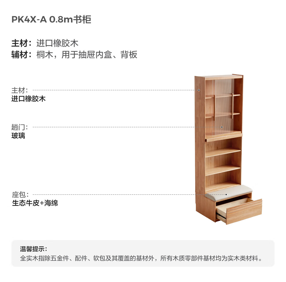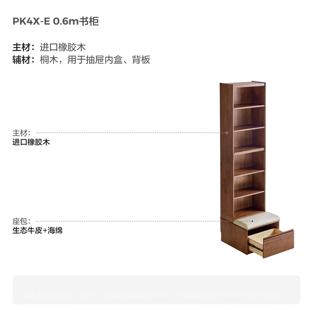 林氏家居中古风实木书柜组合柜家用客厅收纳立柜靠墙木业小满系列PK4X 【全实木|胡桃色】0.6m卡座书柜