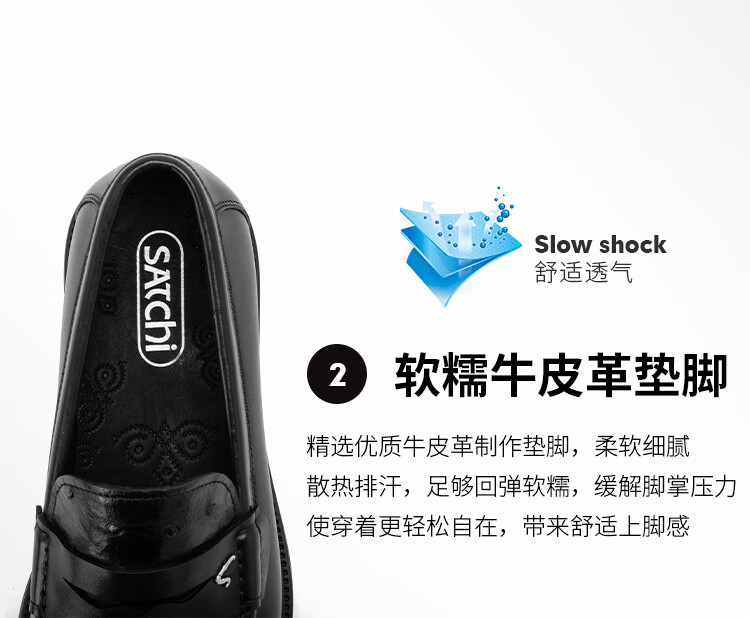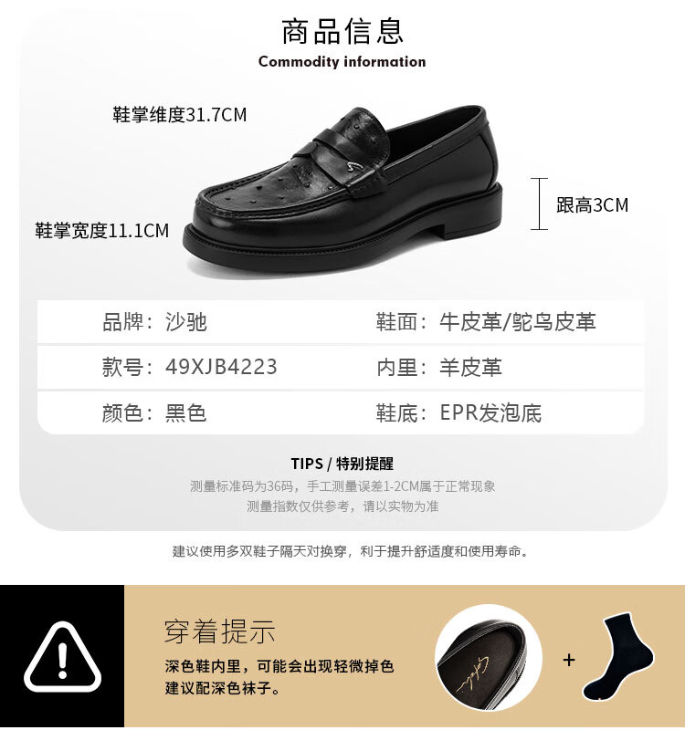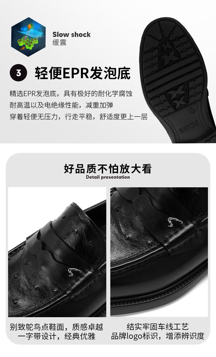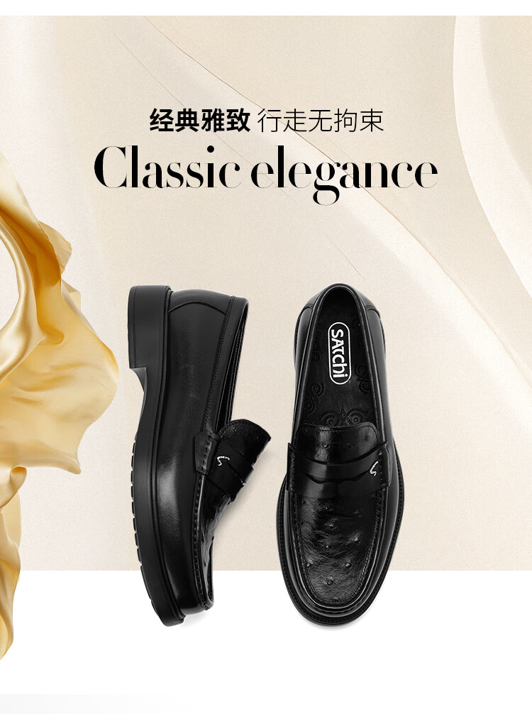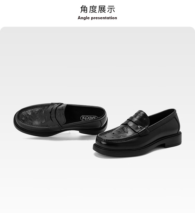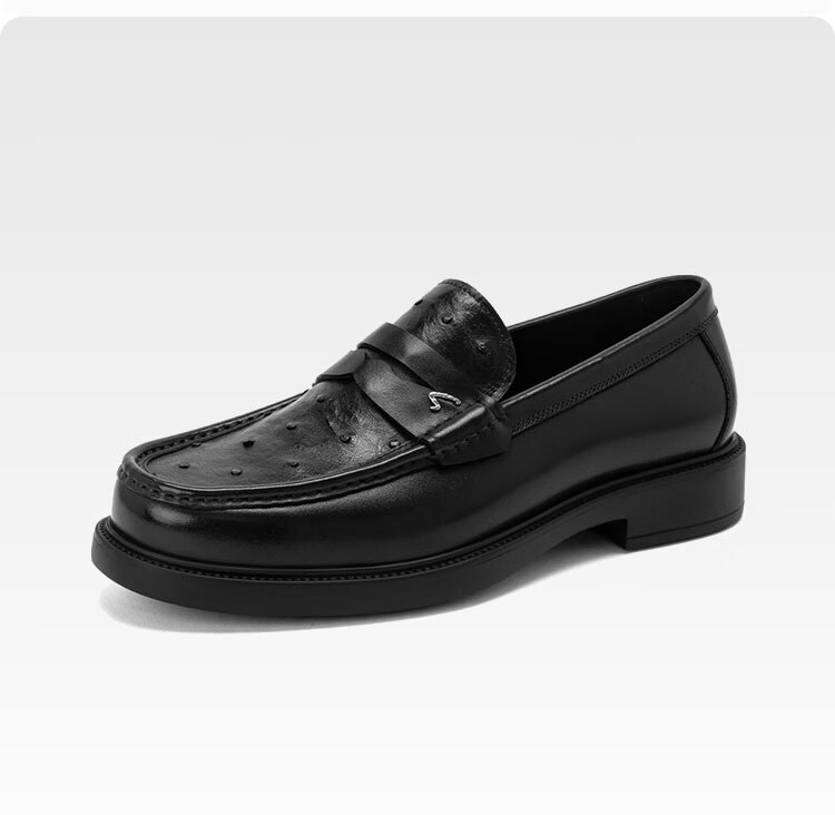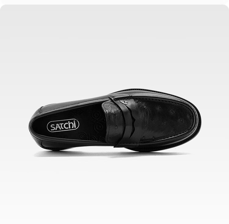 沙驰(SATCHI)男鞋【牛皮/鸵鸟皮】新款轻奢乐福鞋商务皮鞋轻底舒适通勤皮鞋 黑色(49XJB4223) 37 欧码(选小一码)