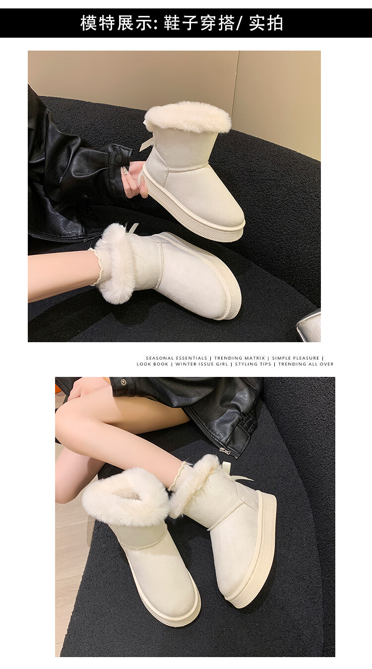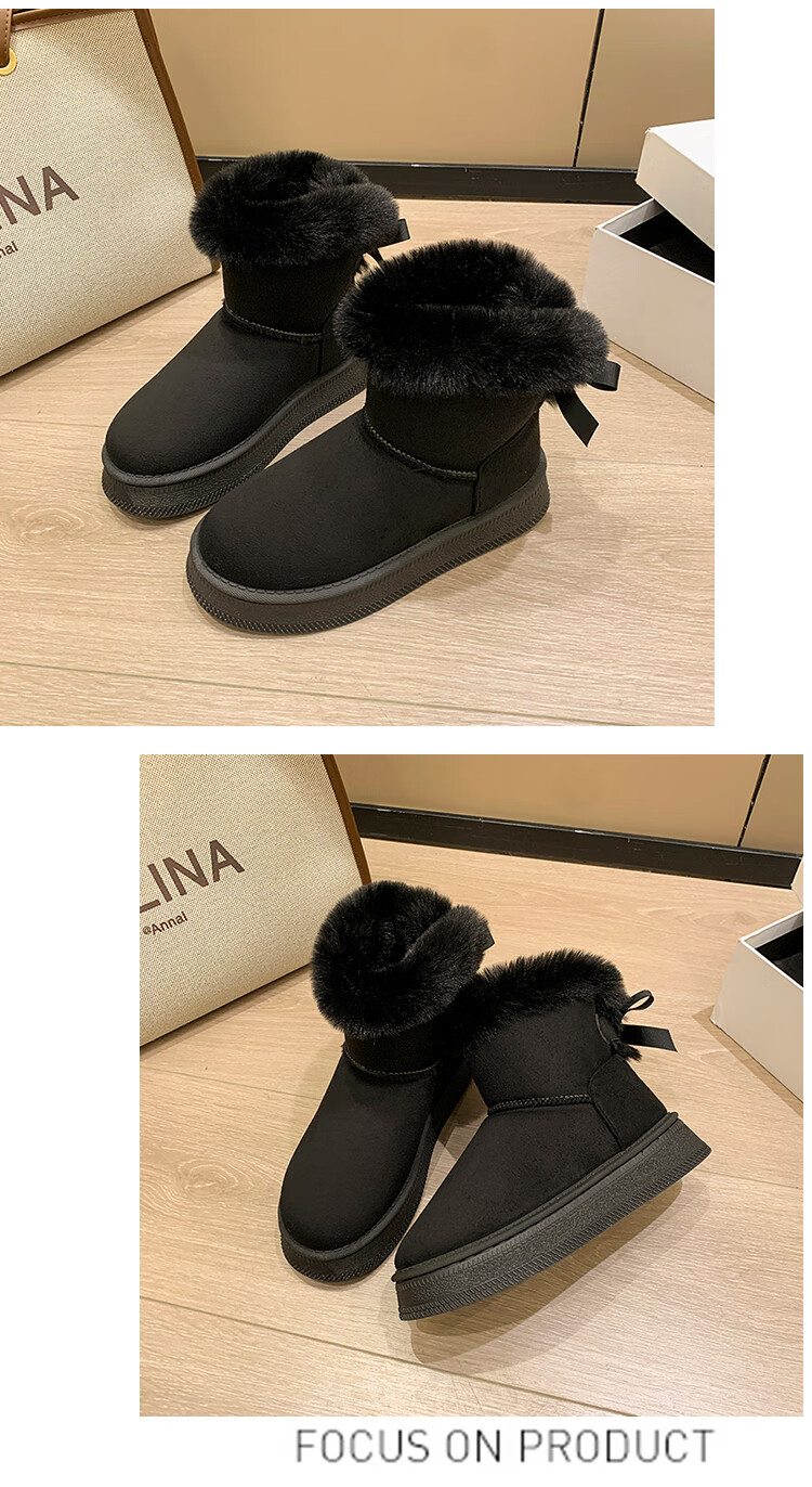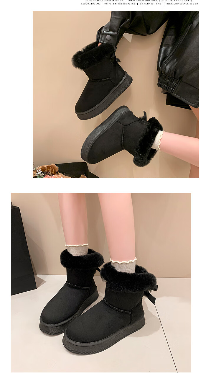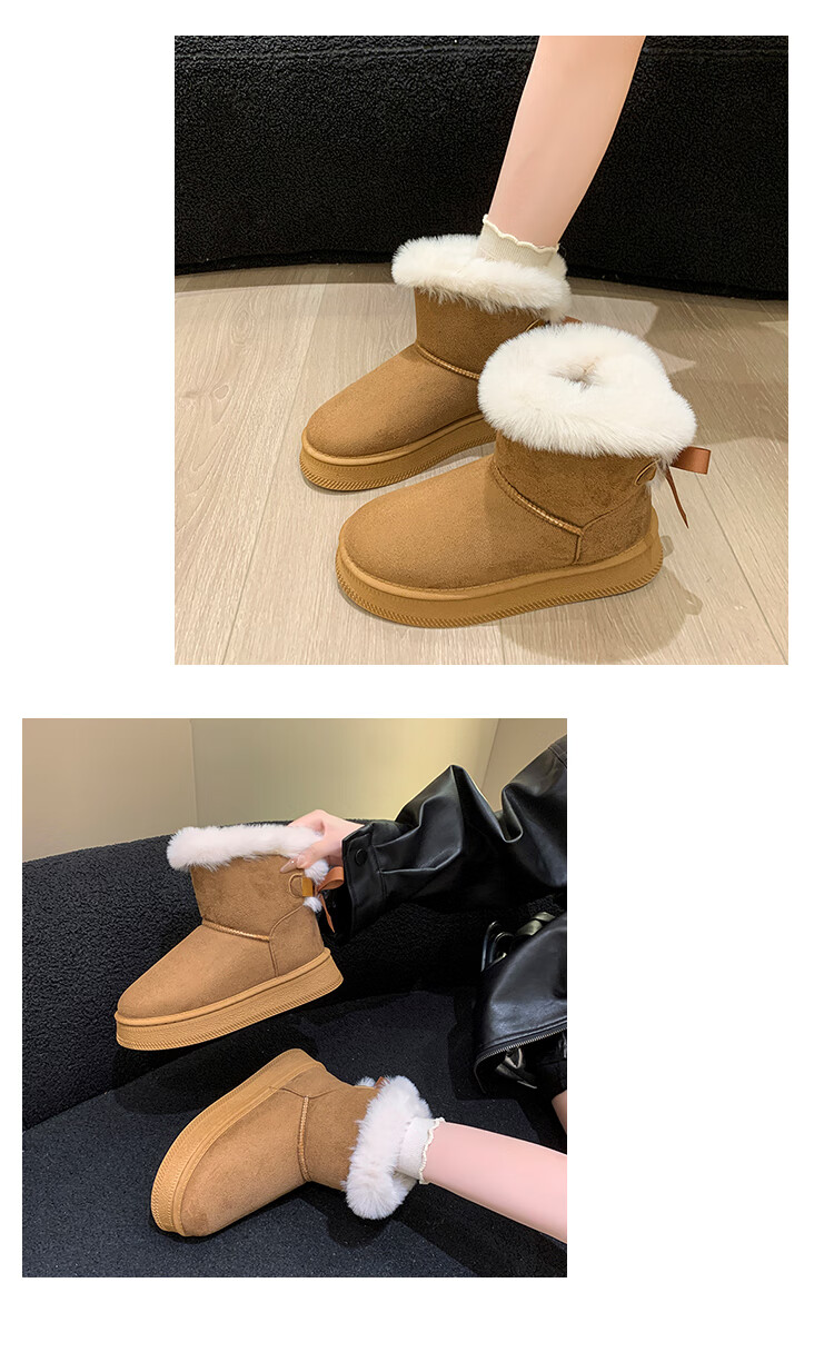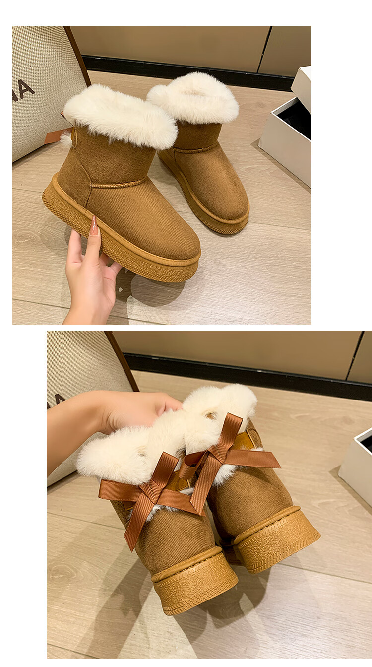 稻草人(MEXICAN)时尚厚底雪地靴女款2026秋冬季新款皮毛一体加绒加厚保暖大码棉鞋 1黑色【质保版】 39 偏小一码