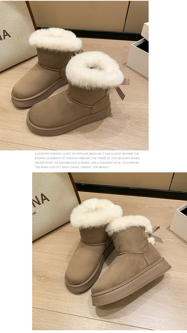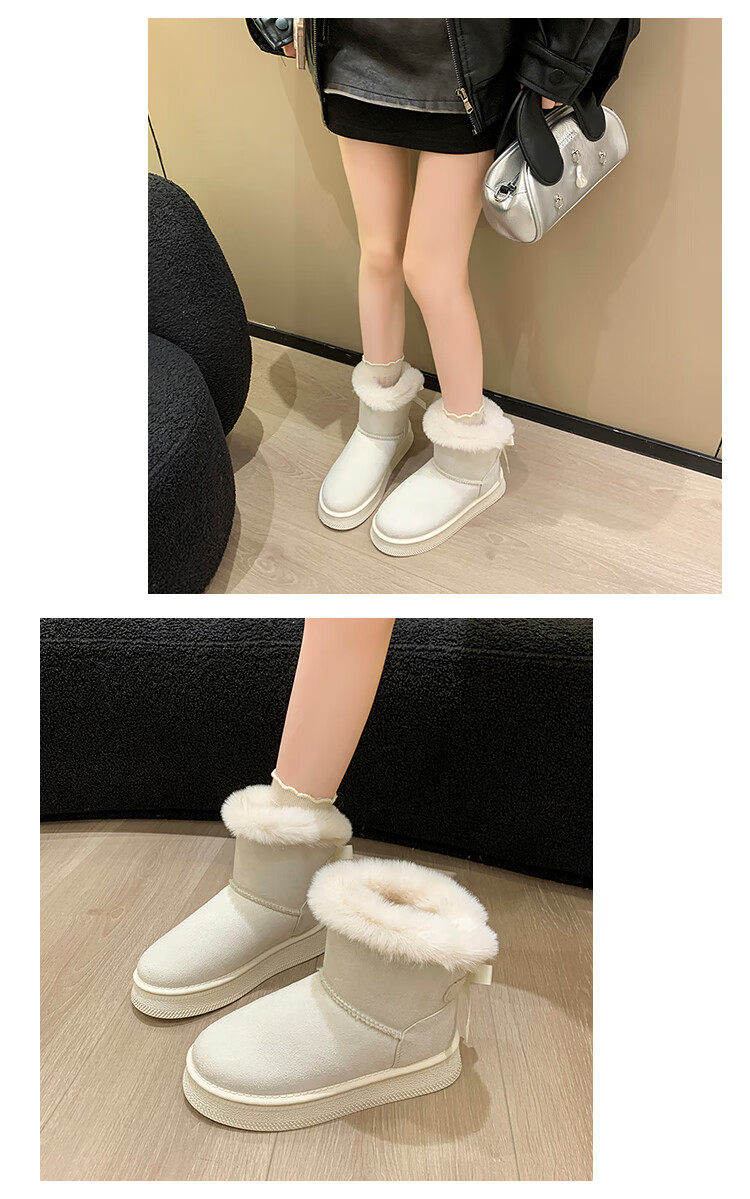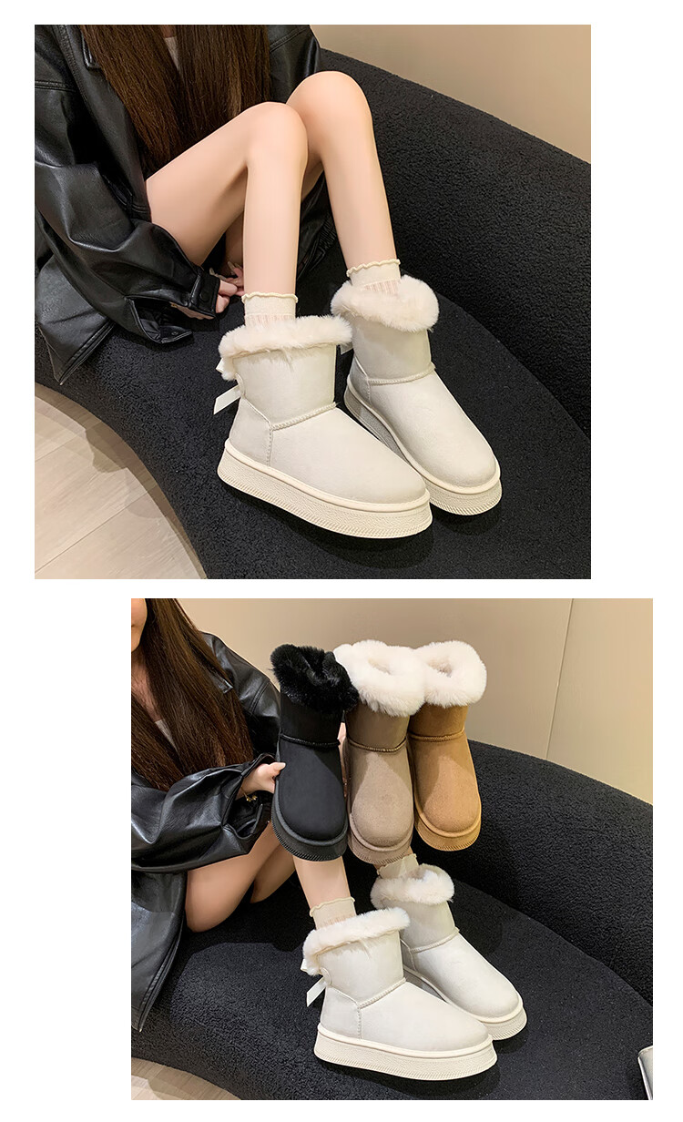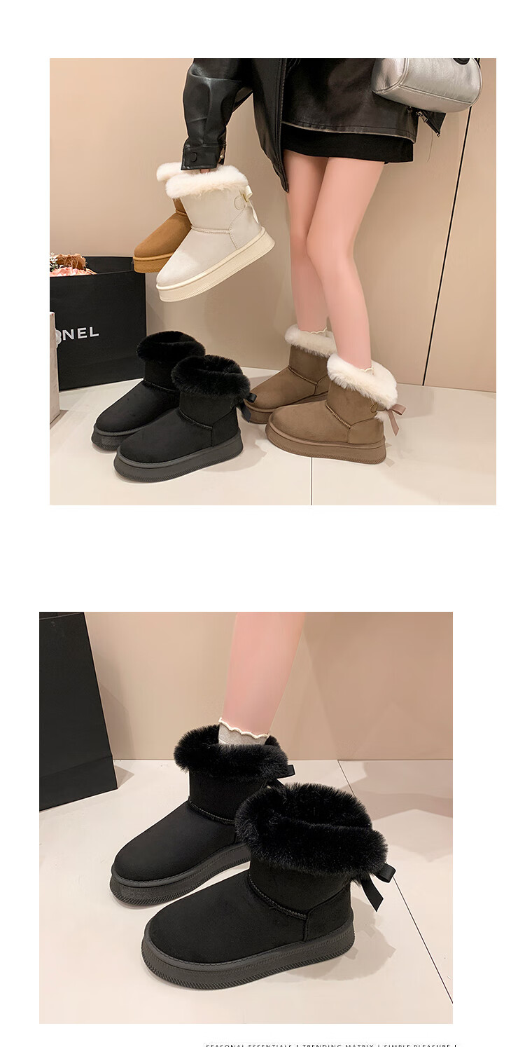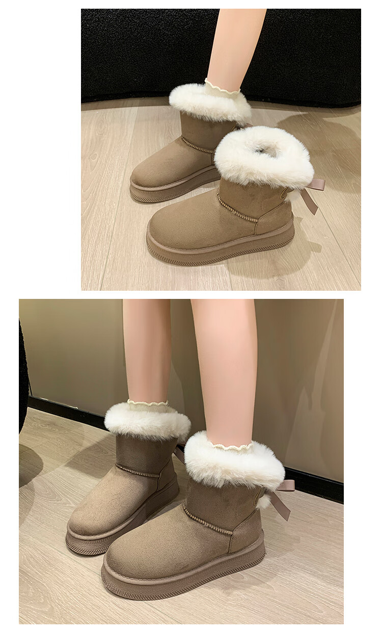 稻草人(MEXICAN)时尚厚底雪地靴女款2026秋冬季新款皮毛一体加绒加厚保暖大码棉鞋 1黑色【质保版】 39 偏小一码