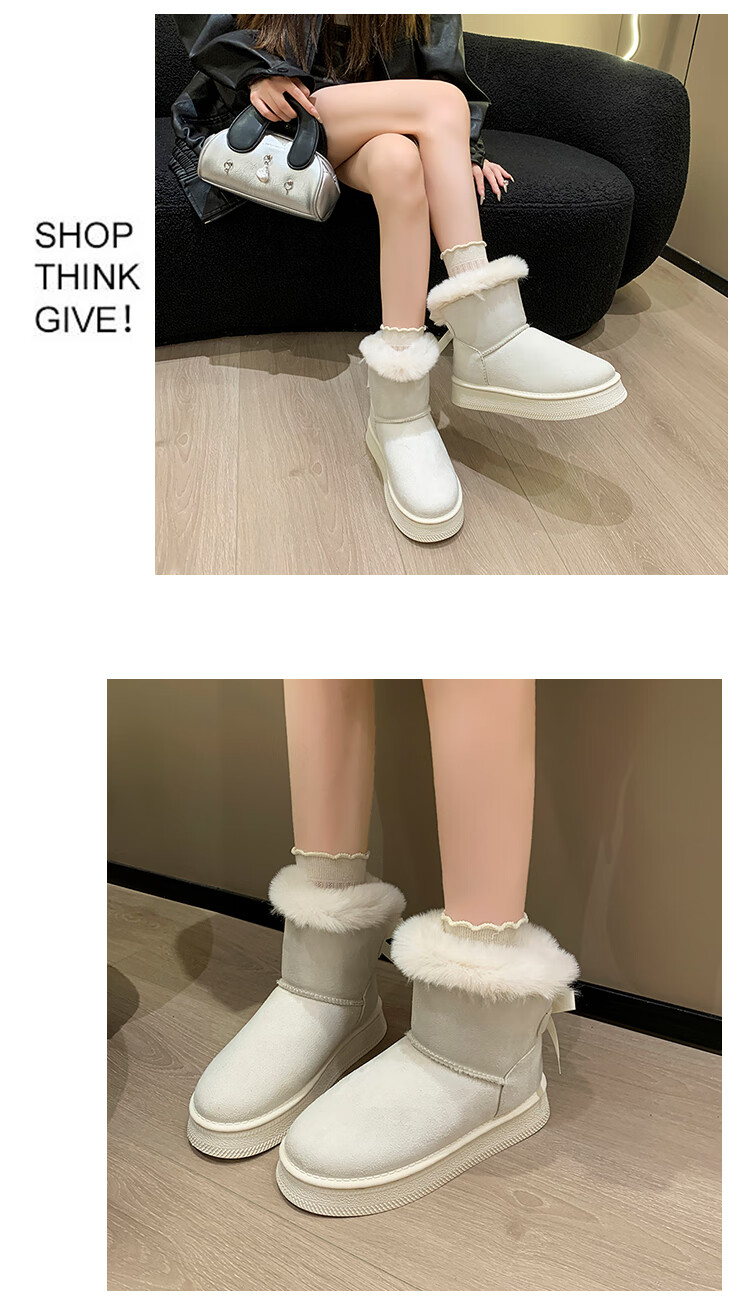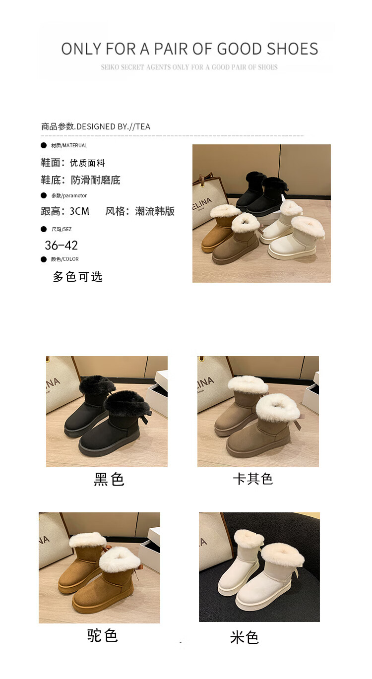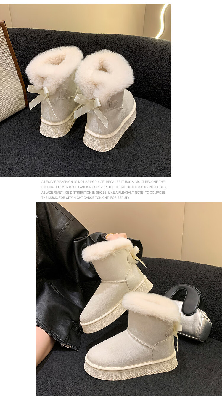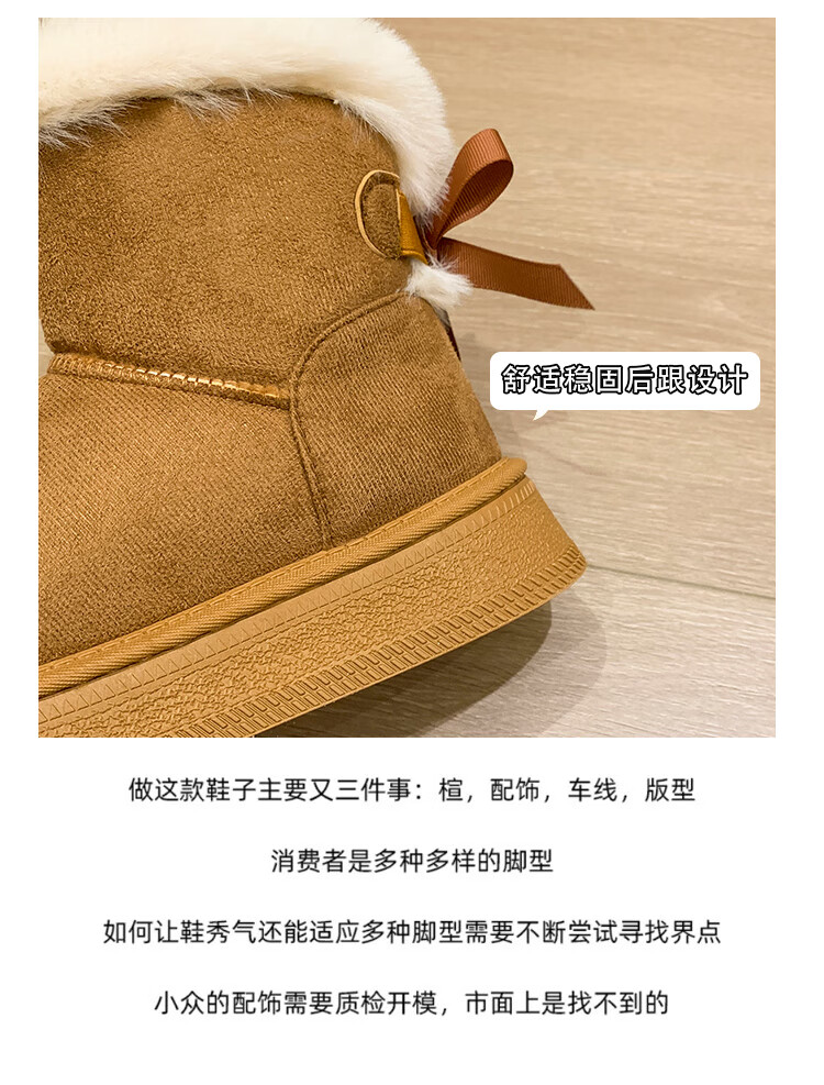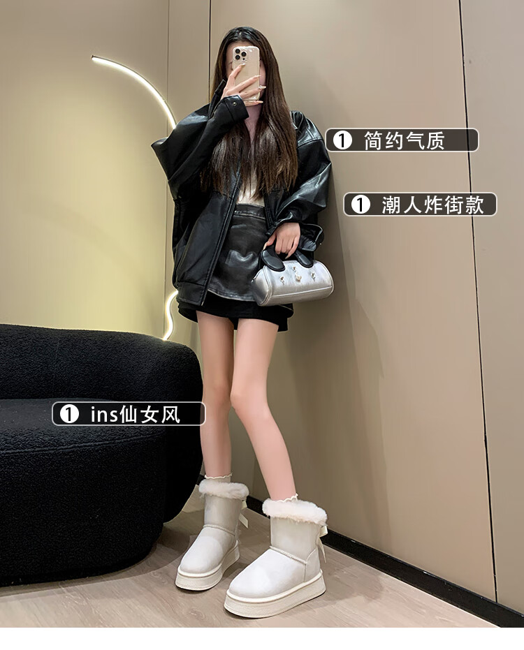 稻草人(MEXICAN)时尚厚底雪地靴女款2026秋冬季新款皮毛一体加绒加厚保暖大码棉鞋 1黑色【质保版】 39 偏小一码