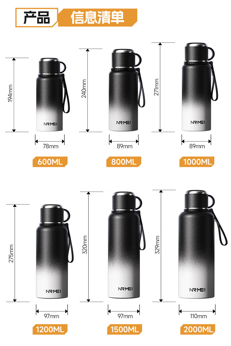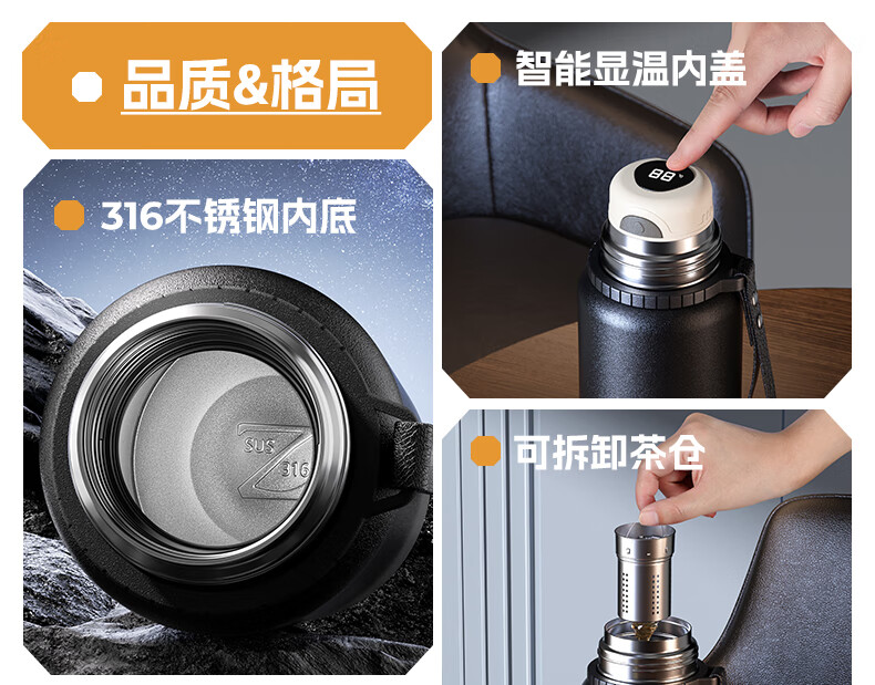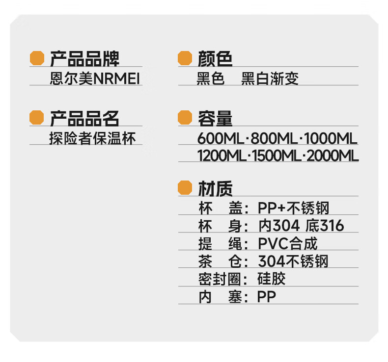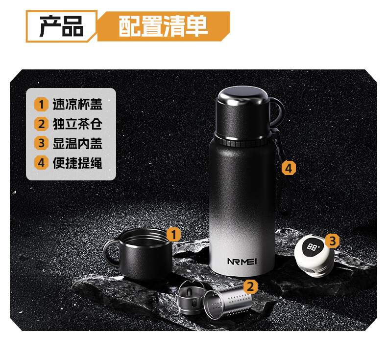 恩尔美(nRMEi)保温杯大容量男士男款316不锈钢茶水分离焖泡茶壶户外便携水杯子