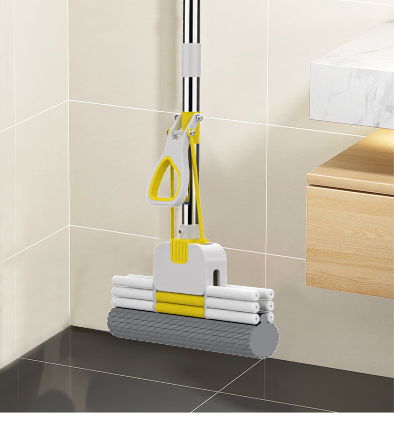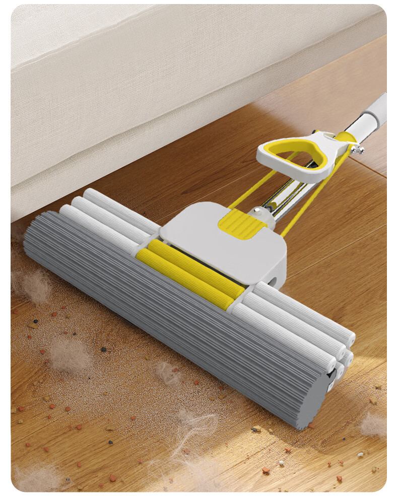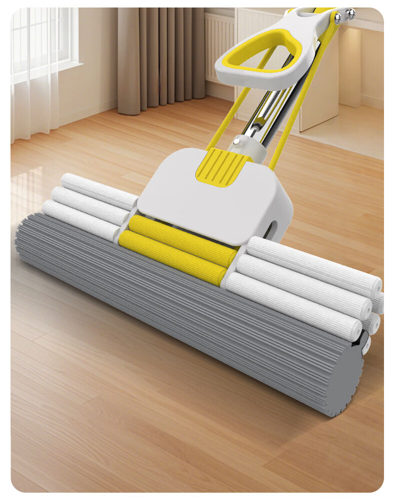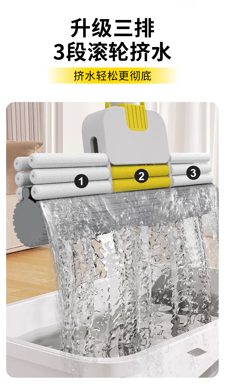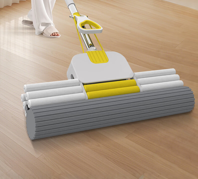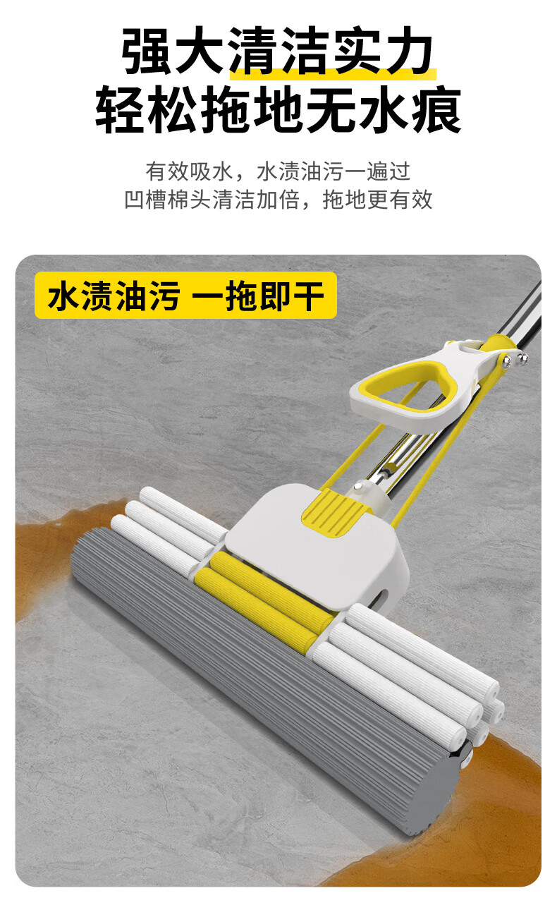 胖东来同款加大海绵拖把大号三排轮胶棉挤水滚轮吸水免手洗耐用结 款44CM二排轮拖把【共2个棉头】蓝色