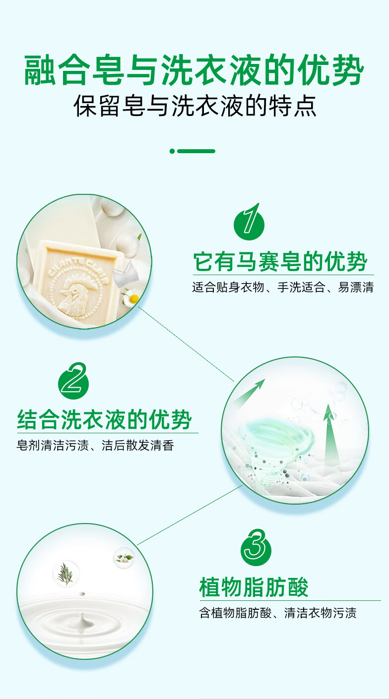 大公鸡管家chanteclair液态洗衣皂进口 留香洗衣液 易漂洗天然马赛皂配方 白苔香1500ml*三瓶装