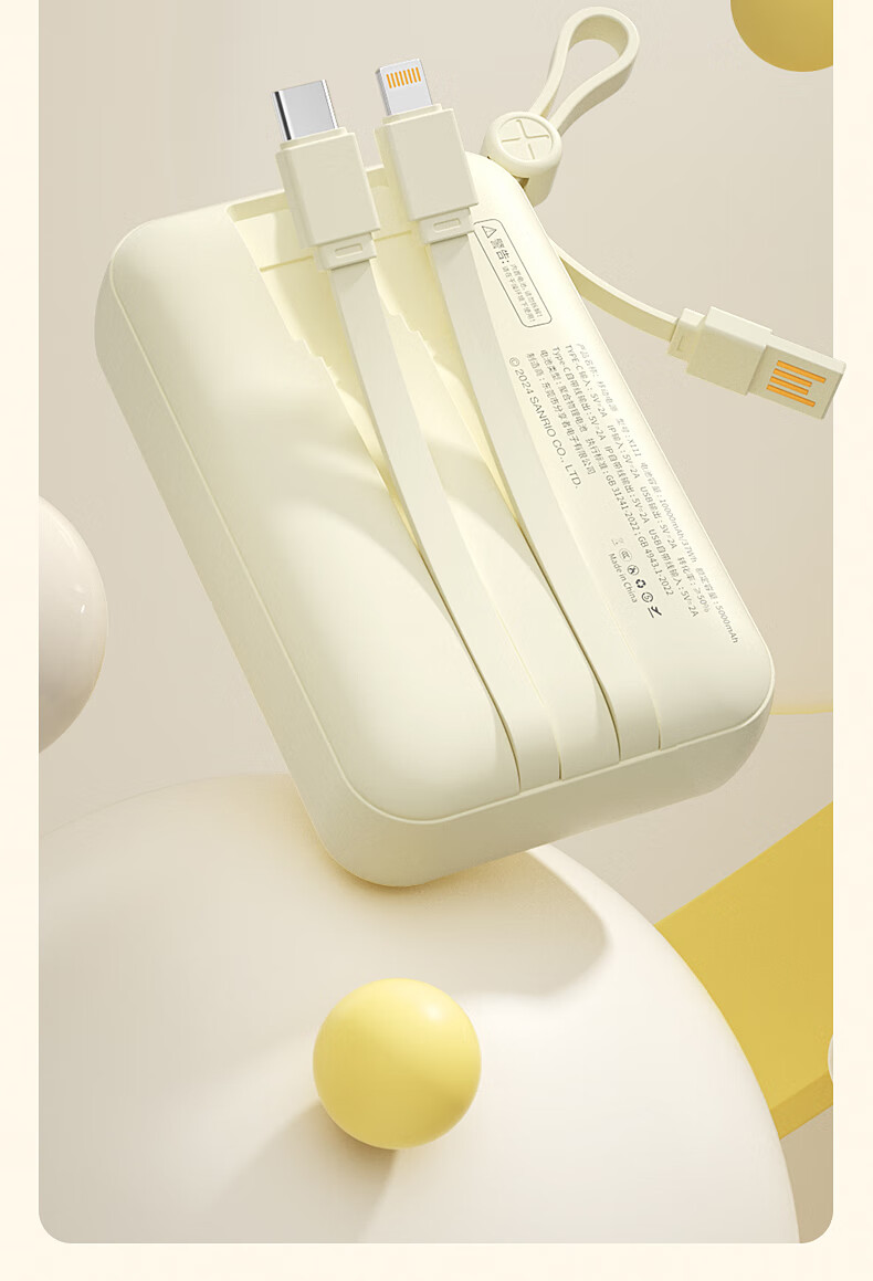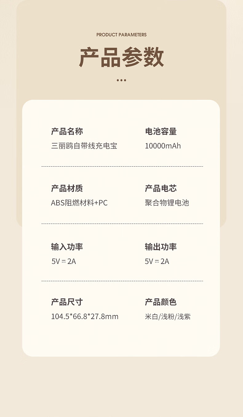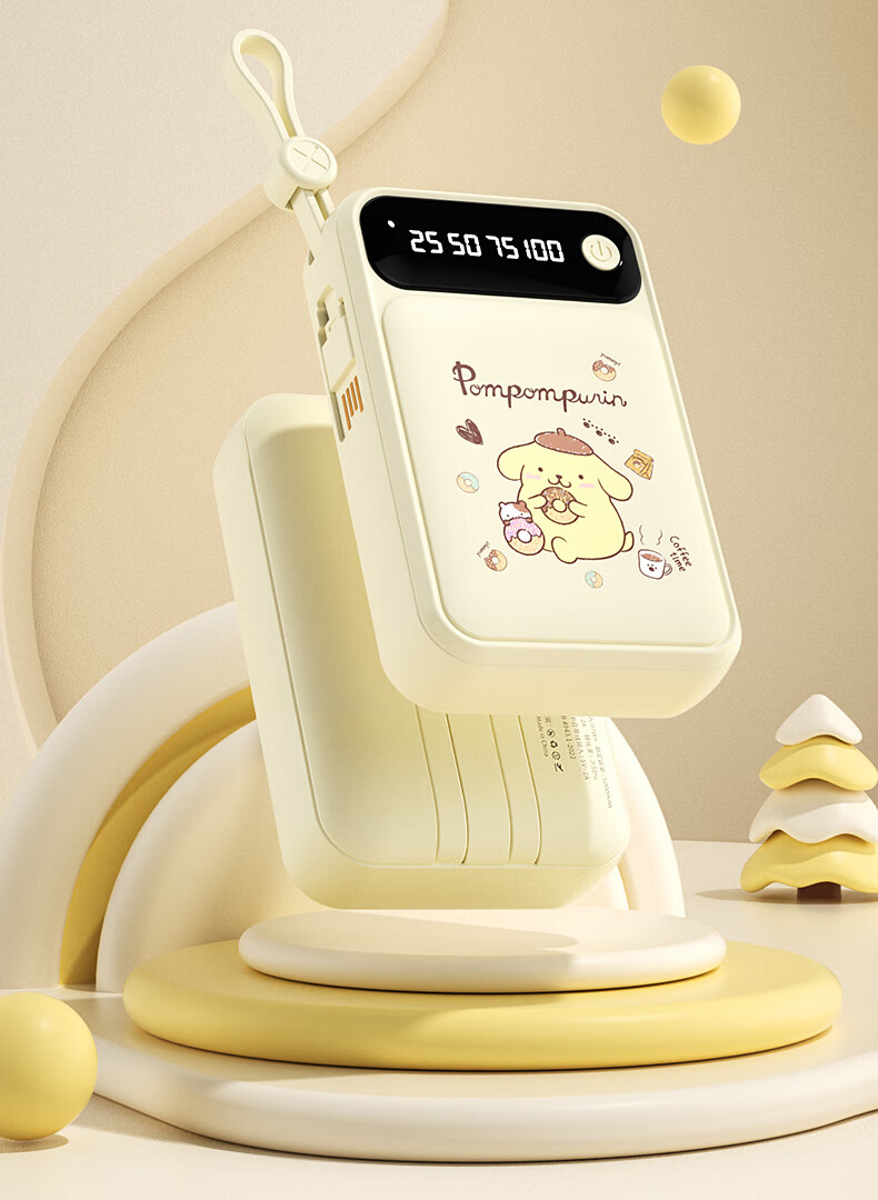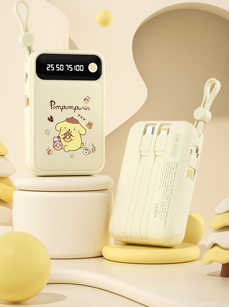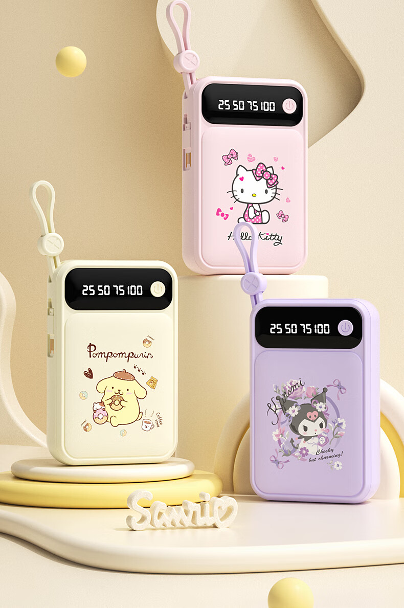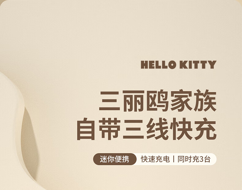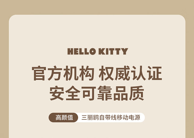 Hello Kitty3C认证【快充提速300%】三丽鸥大容量充电宝10000毫安自带三线移动电源适用安卓苹果 米白色