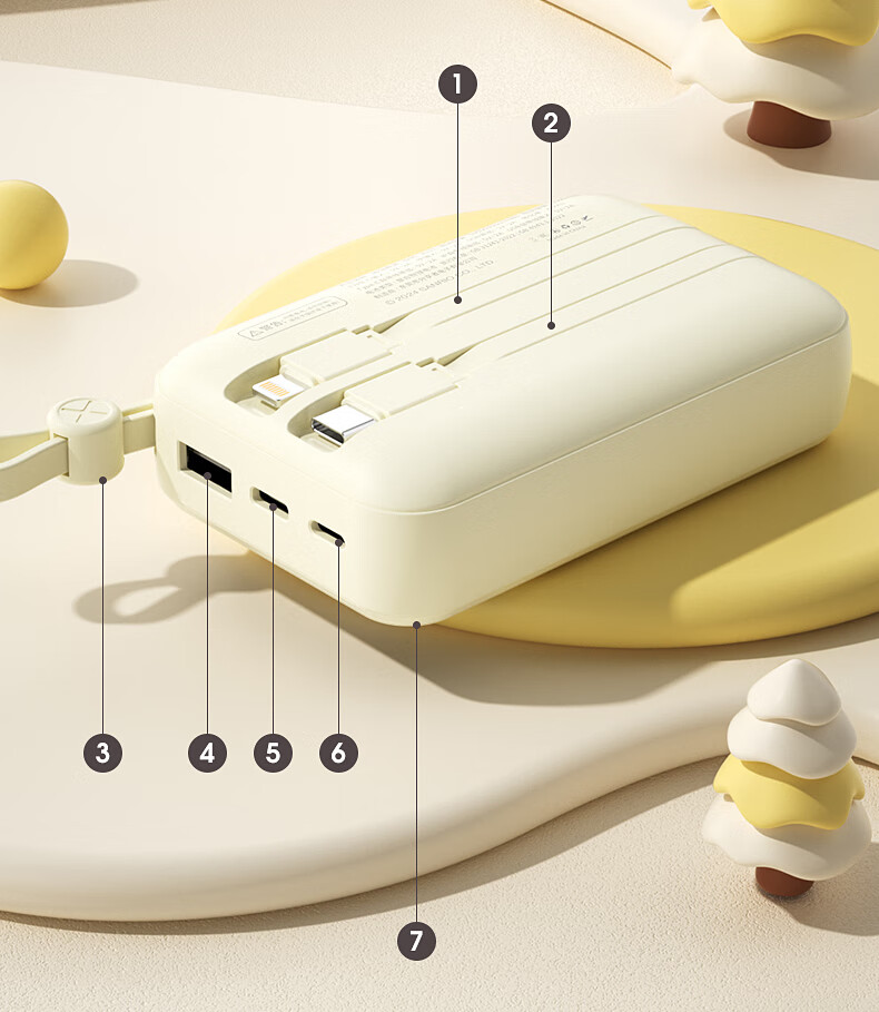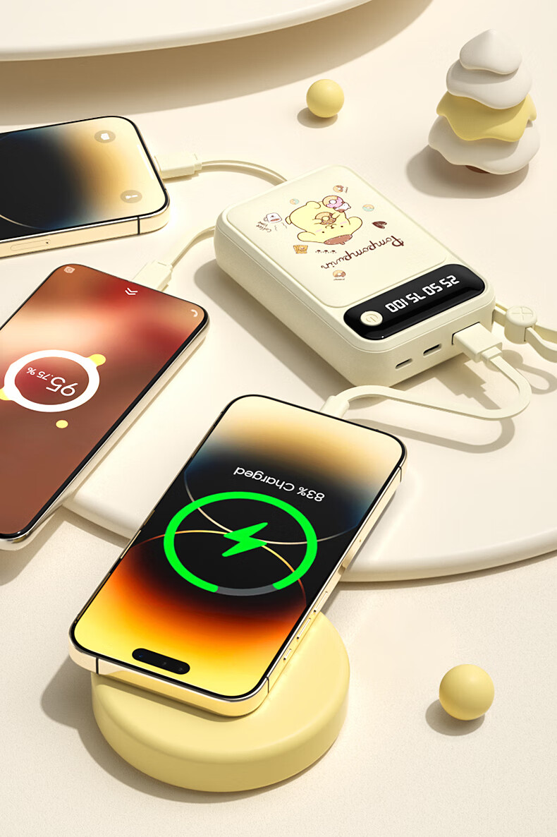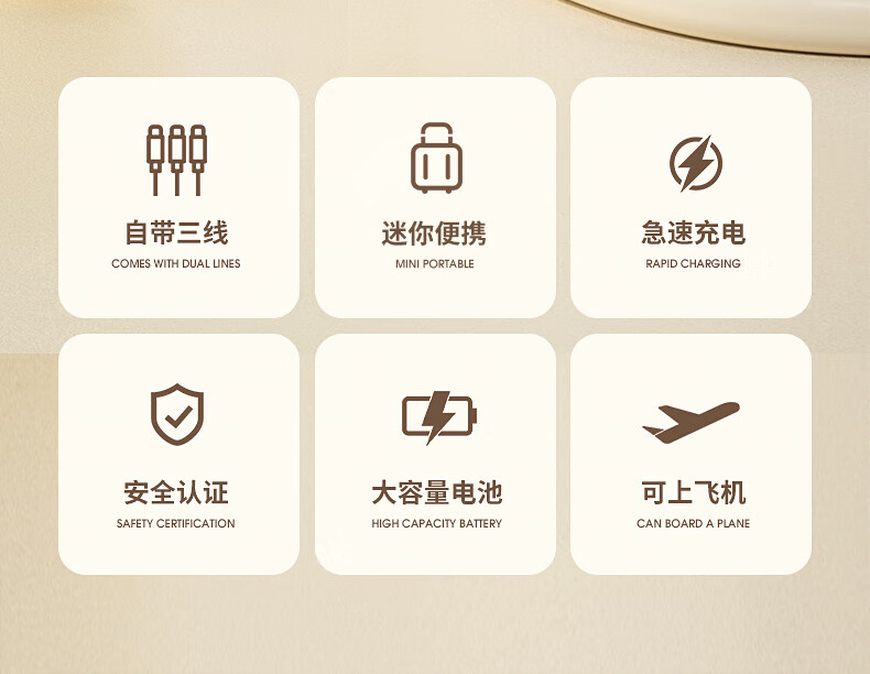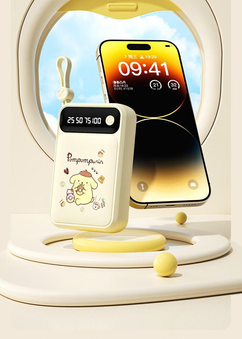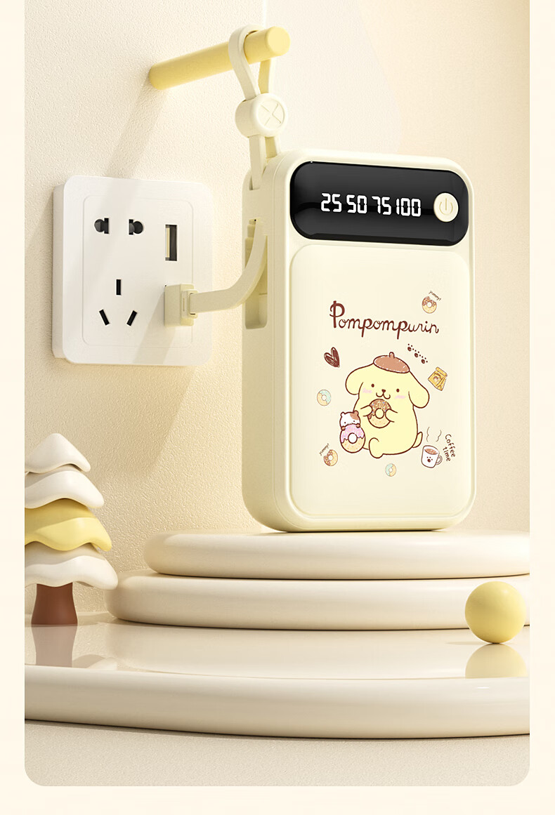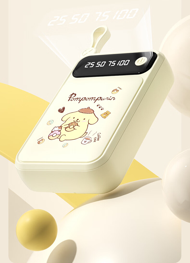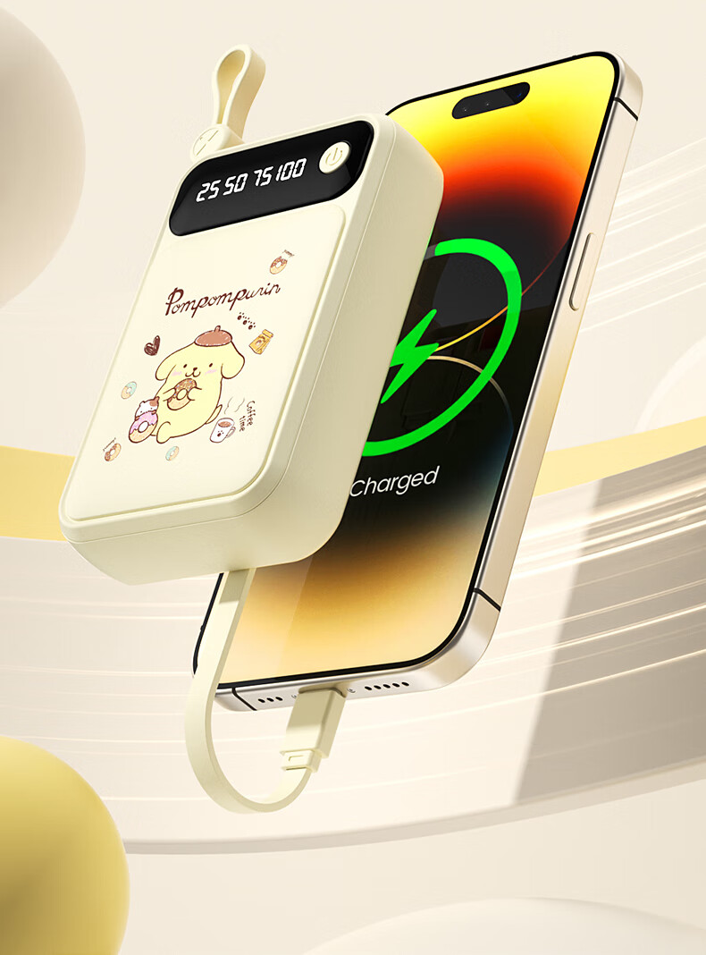 Hello Kitty3C认证【快充提速300%】三丽鸥大容量充电宝10000毫安自带三线移动电源适用安卓苹果 米白色