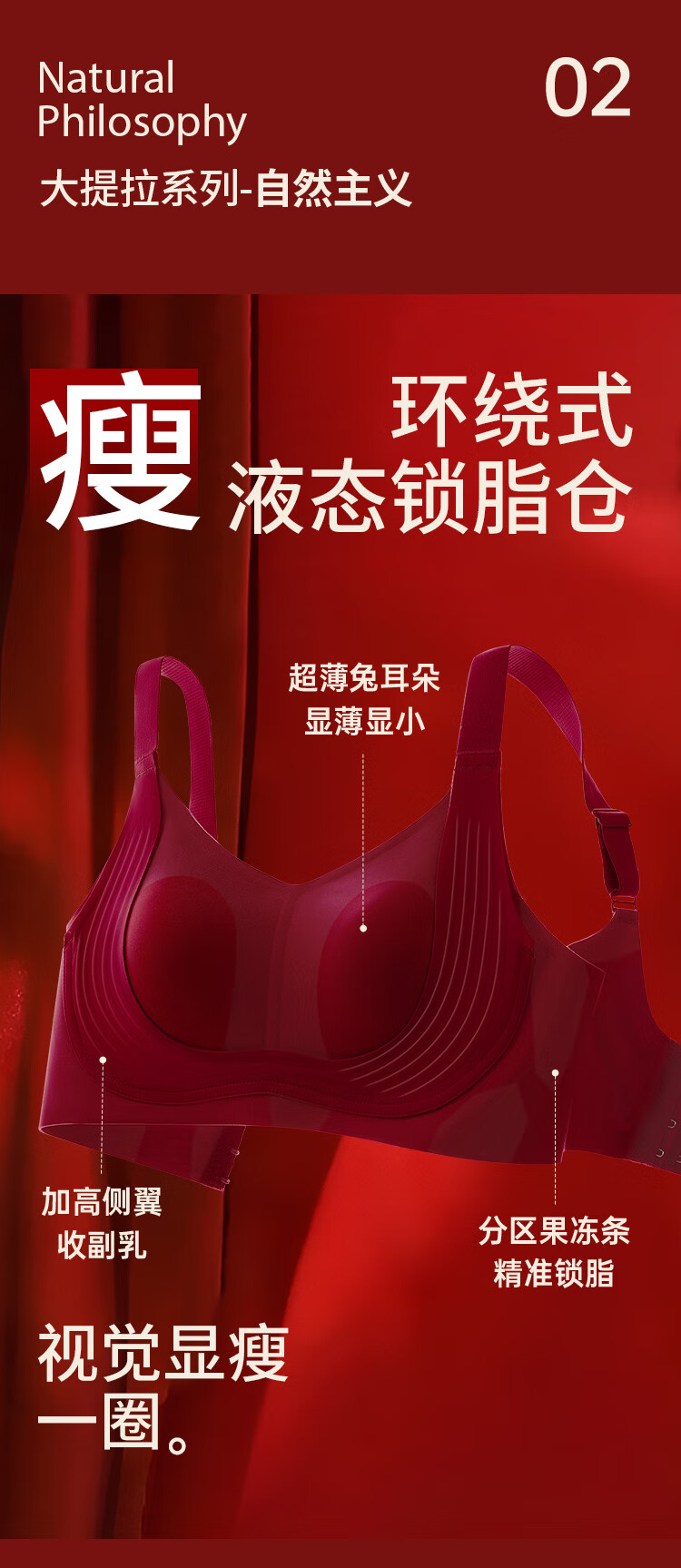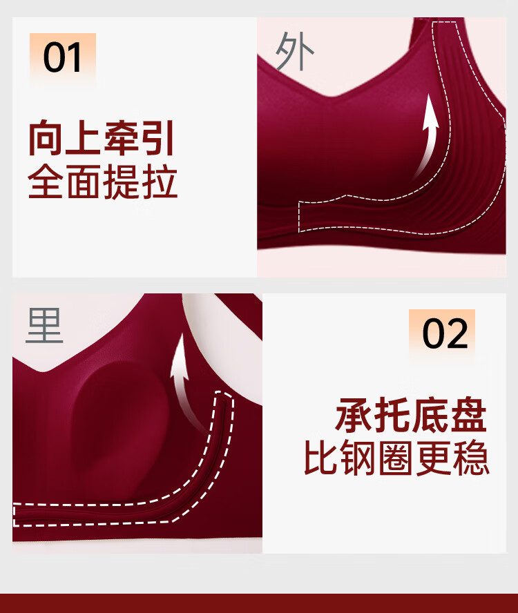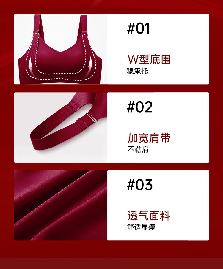 润微【送内裤】本命年红品文胸内衣礼盒结婚大胸显小提拉防下垂文胸罩 【礼盒装】文胸+内裤 2XL (适合90BCDE)