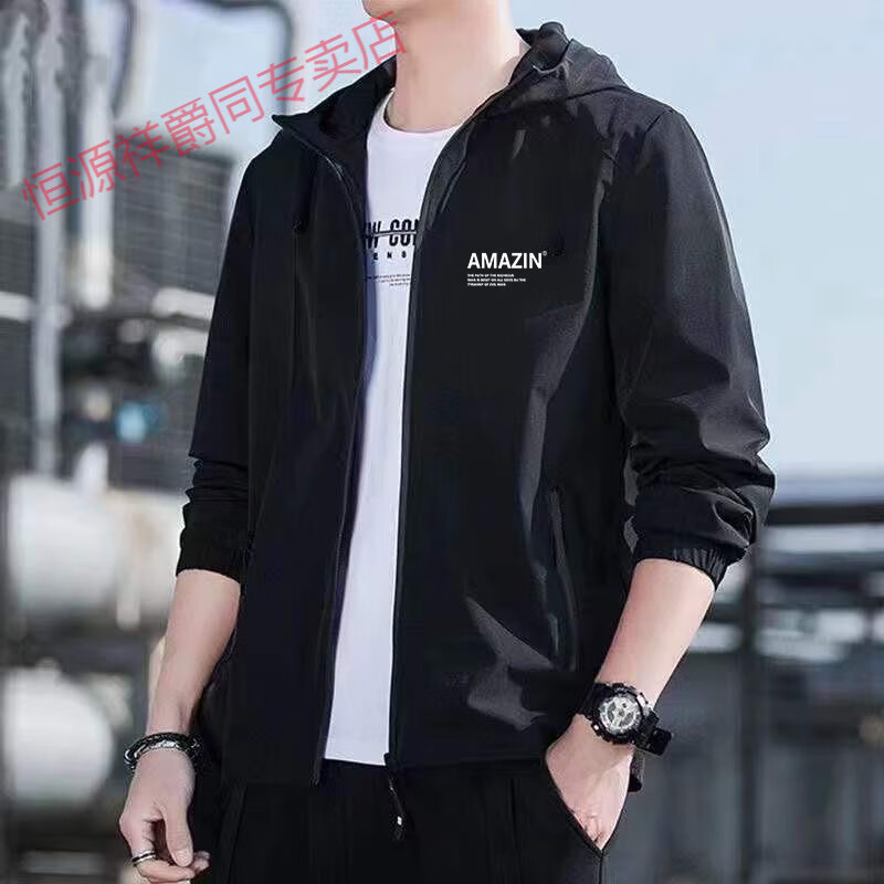 恒源祥户外登山防风连帽冲锋衣秋季薄款宽松休闲潮流百搭夹克男爸爸外套 中国 连帽夹克 4XL