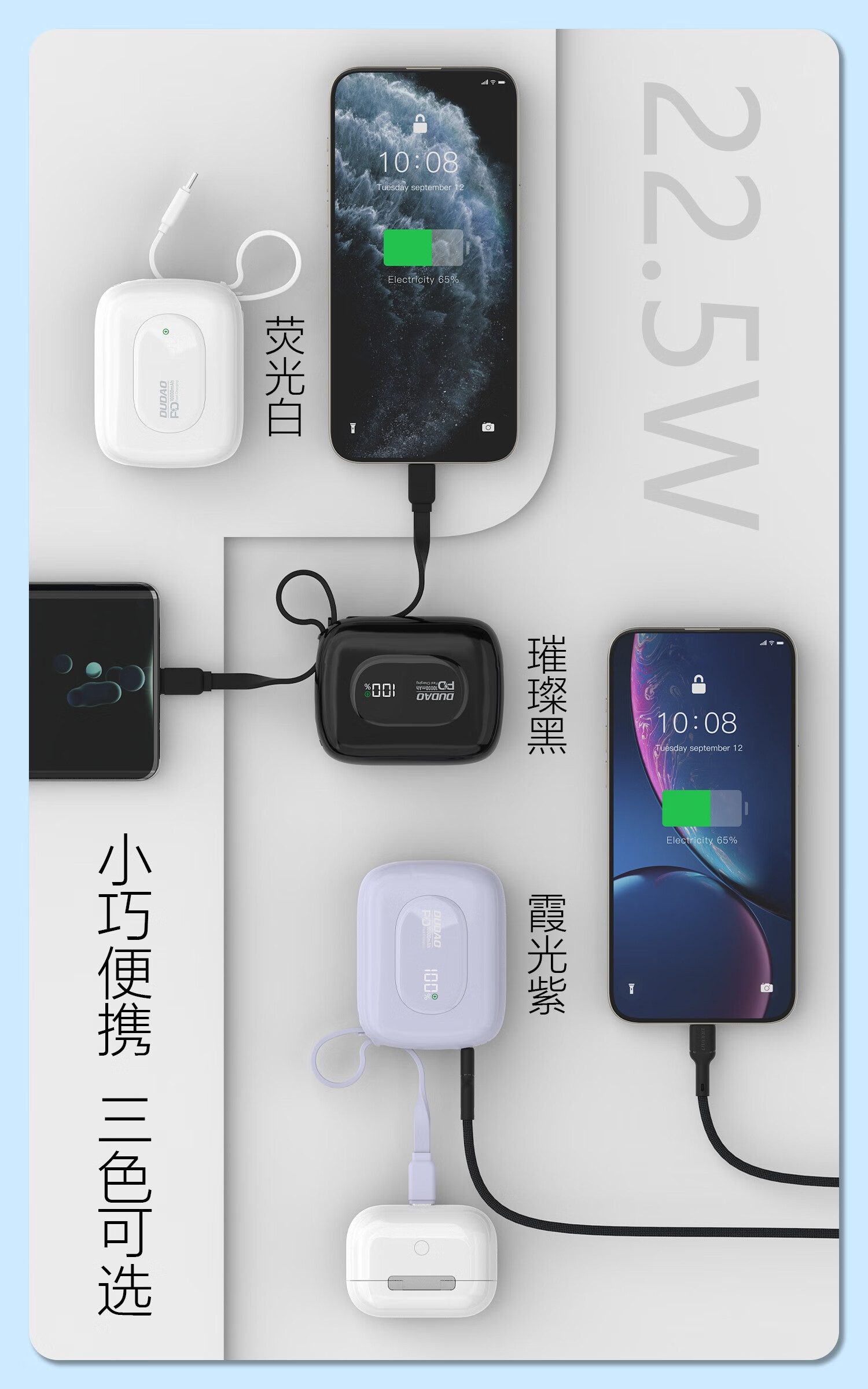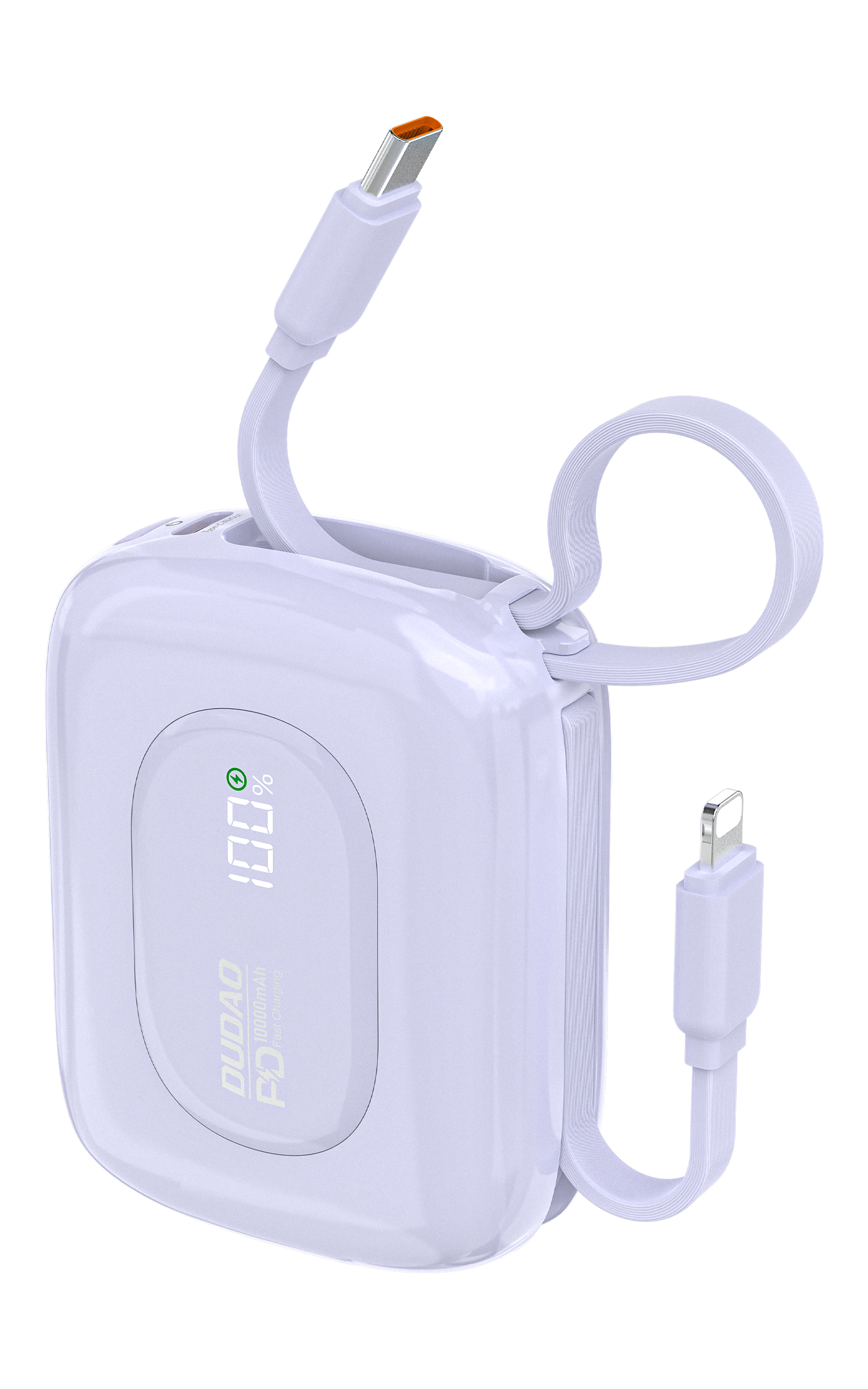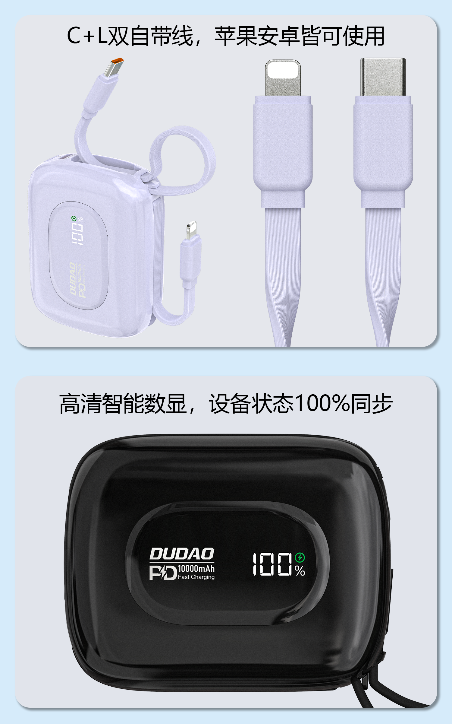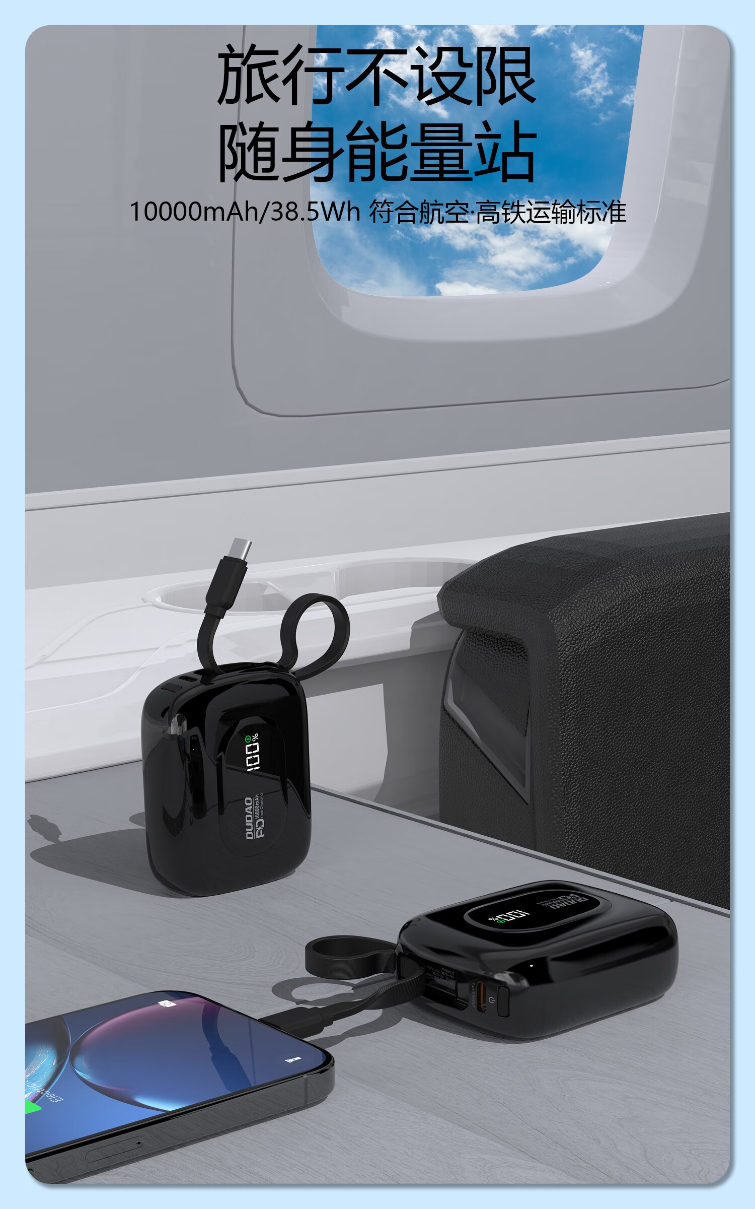 DUDAO独到可上飞机高铁超级快充自带线充电宝小巧便携移动电源安卓苹果iPhone17大容量新3C认证手机备用 紫色便捷两万毫安
