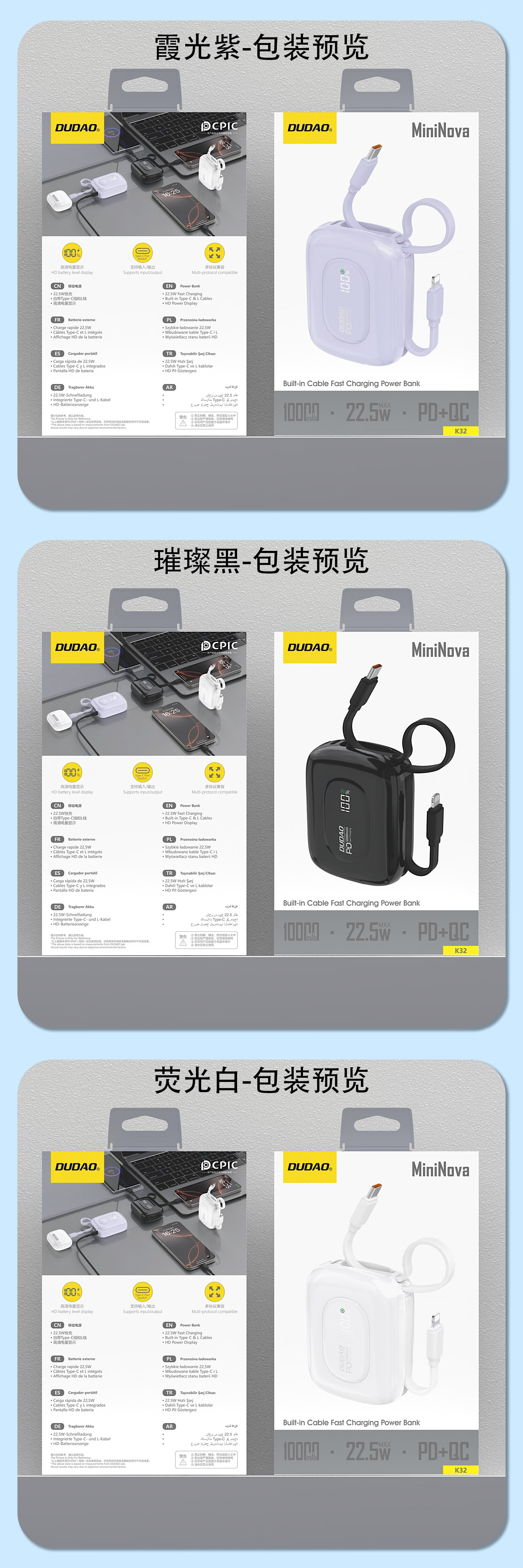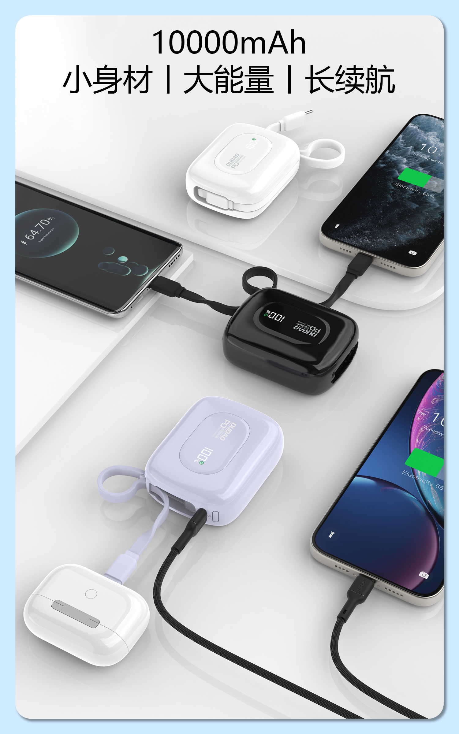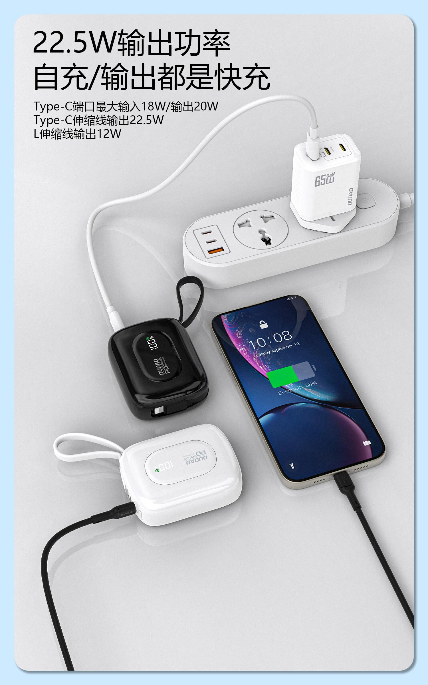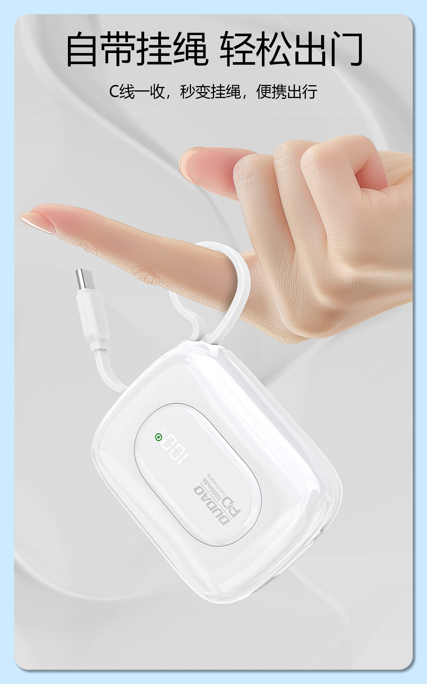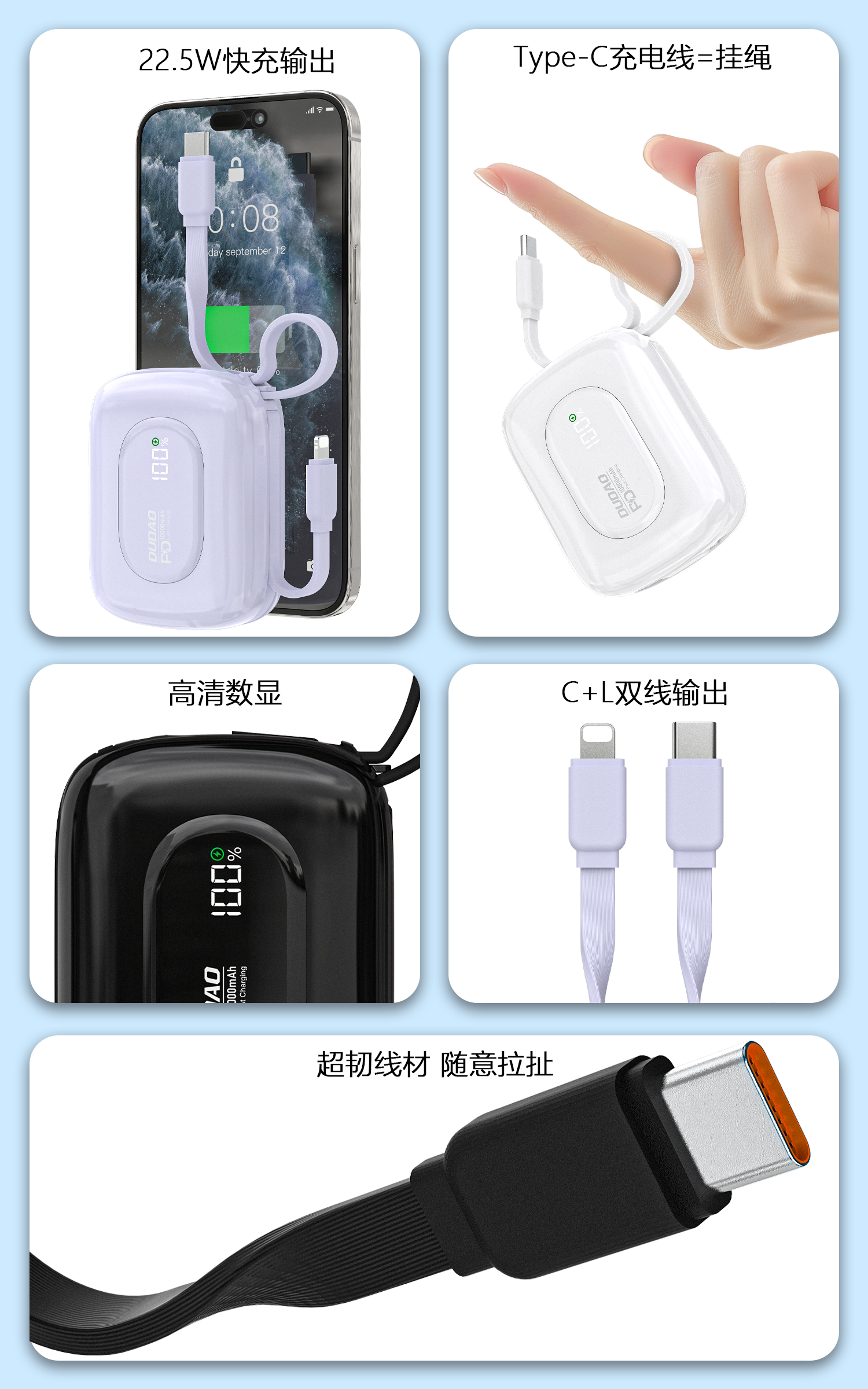 DUDAO独到可上飞机高铁超级快充自带线充电宝小巧便携移动电源安卓苹果iPhone17大容量新3C认证手机备用 紫色便捷两万毫安