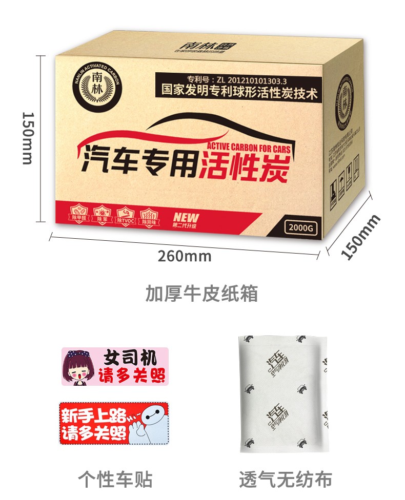 南林新车除味活性炭汽车用竹炭新车除甲醛除异味炭包吸去甲醛车内去味 【小型车】2000g活性炭24包