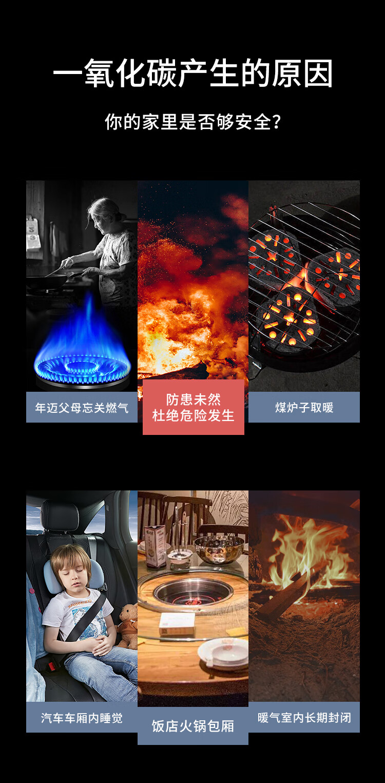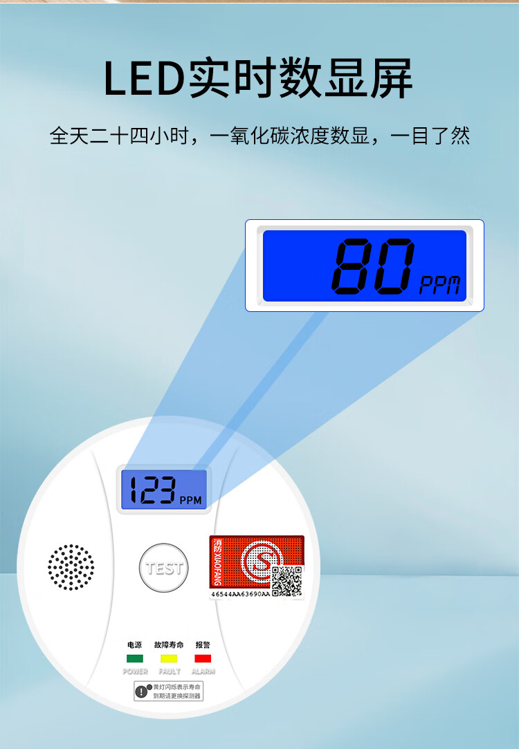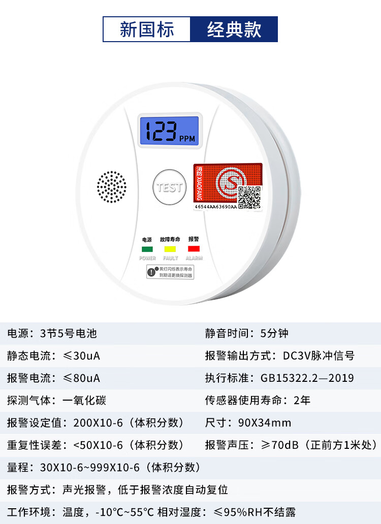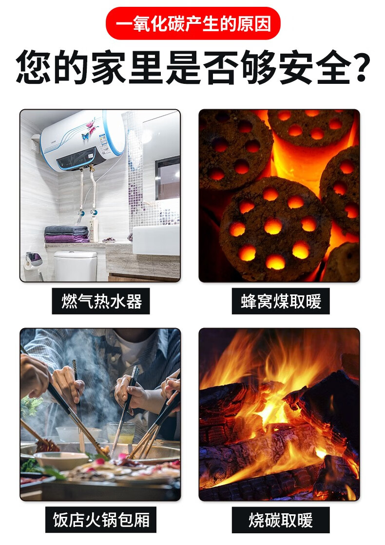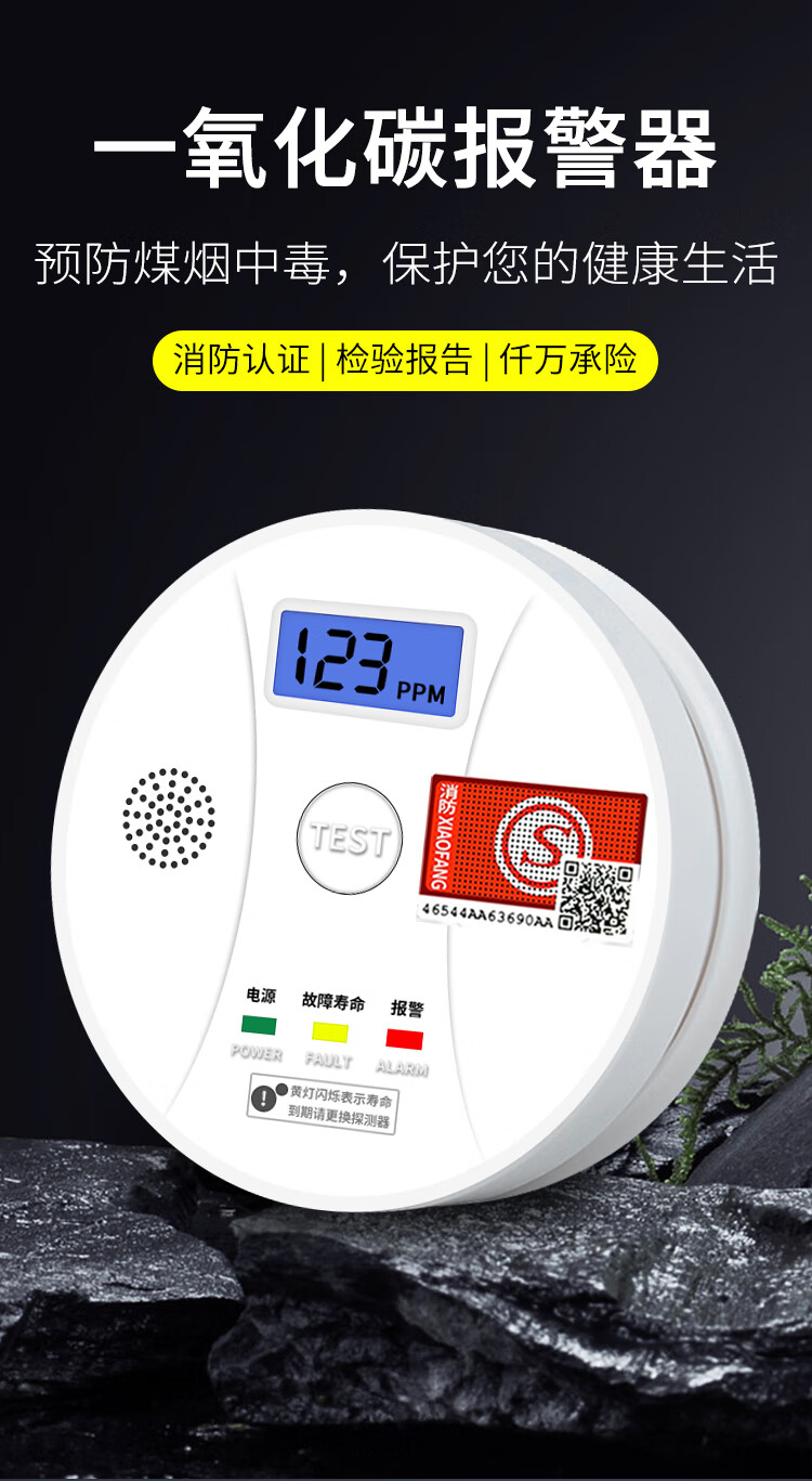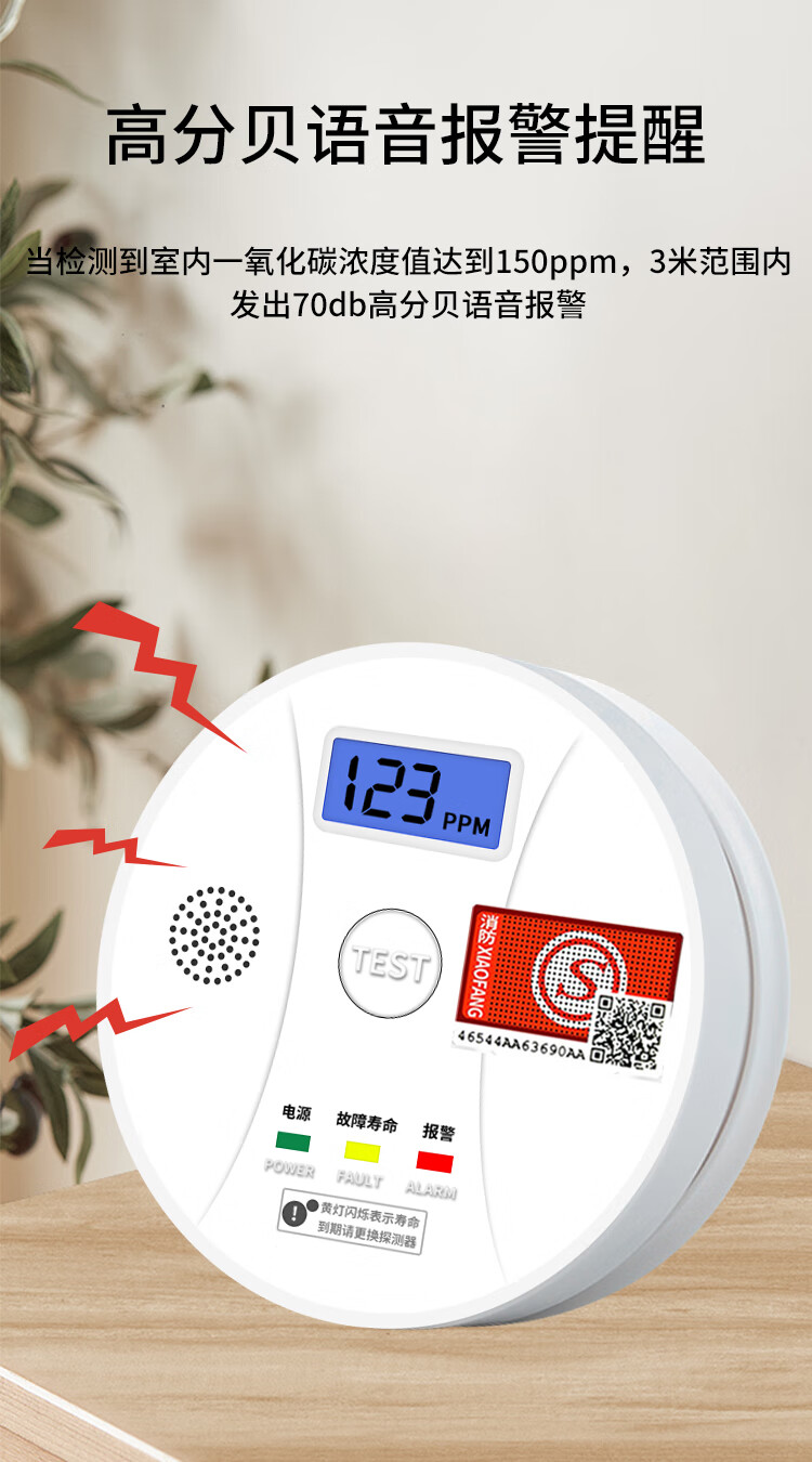 立可安一氧化碳报警器家用煤烟烧炭co浓度探测器煤气户外一氧化碳检测仪 一氧化碳报警器(150PPM起报,2年电池)