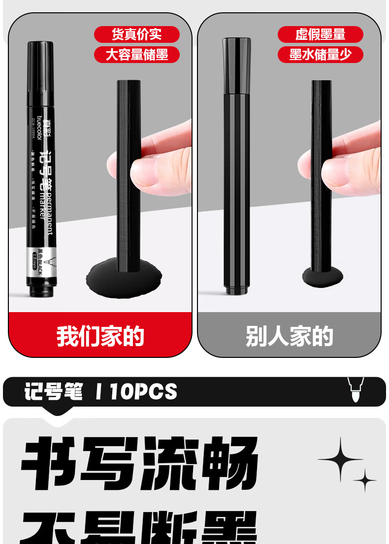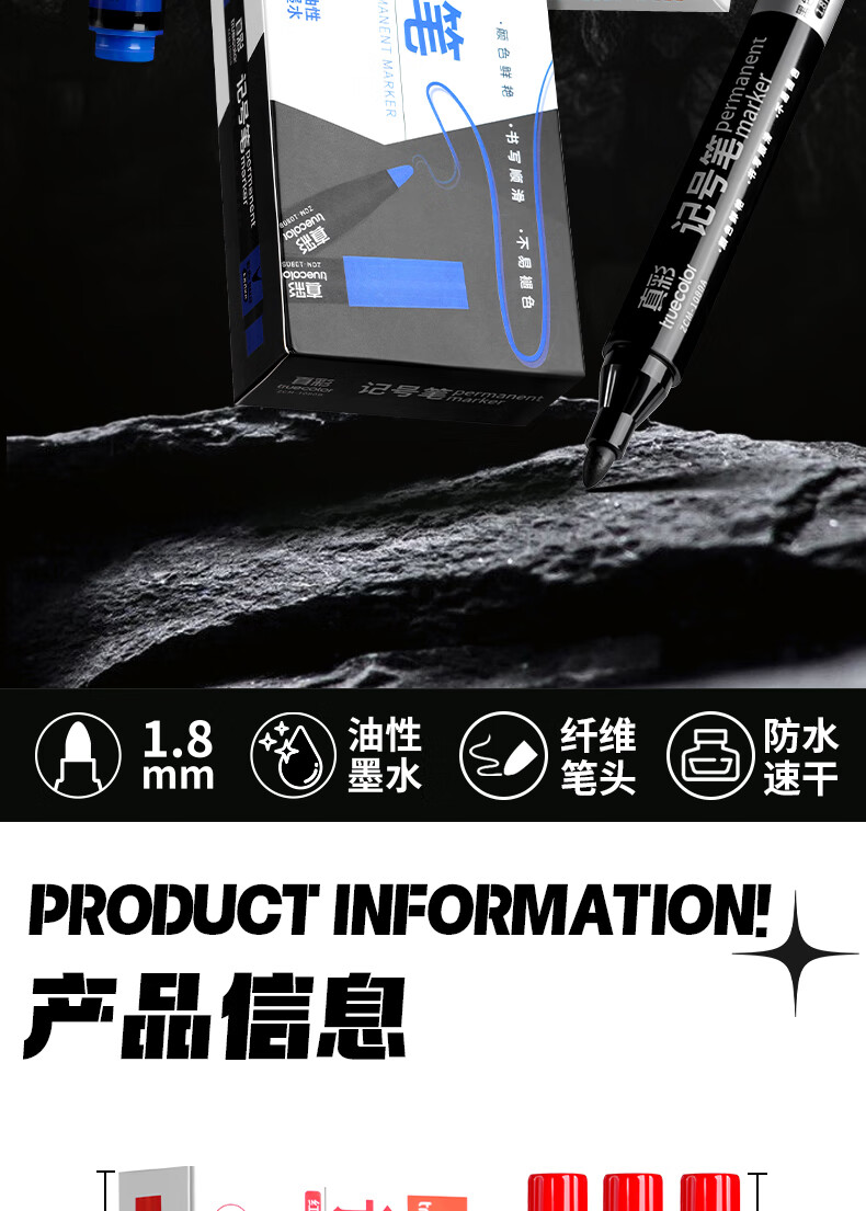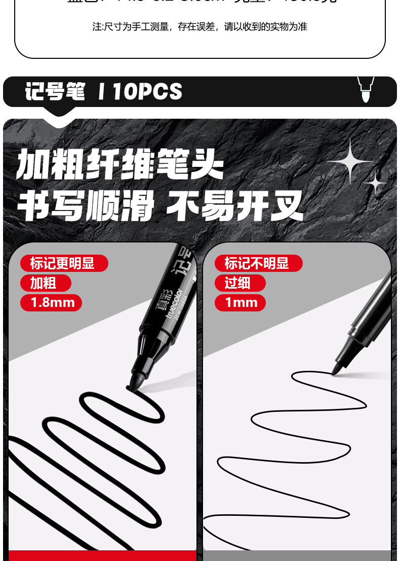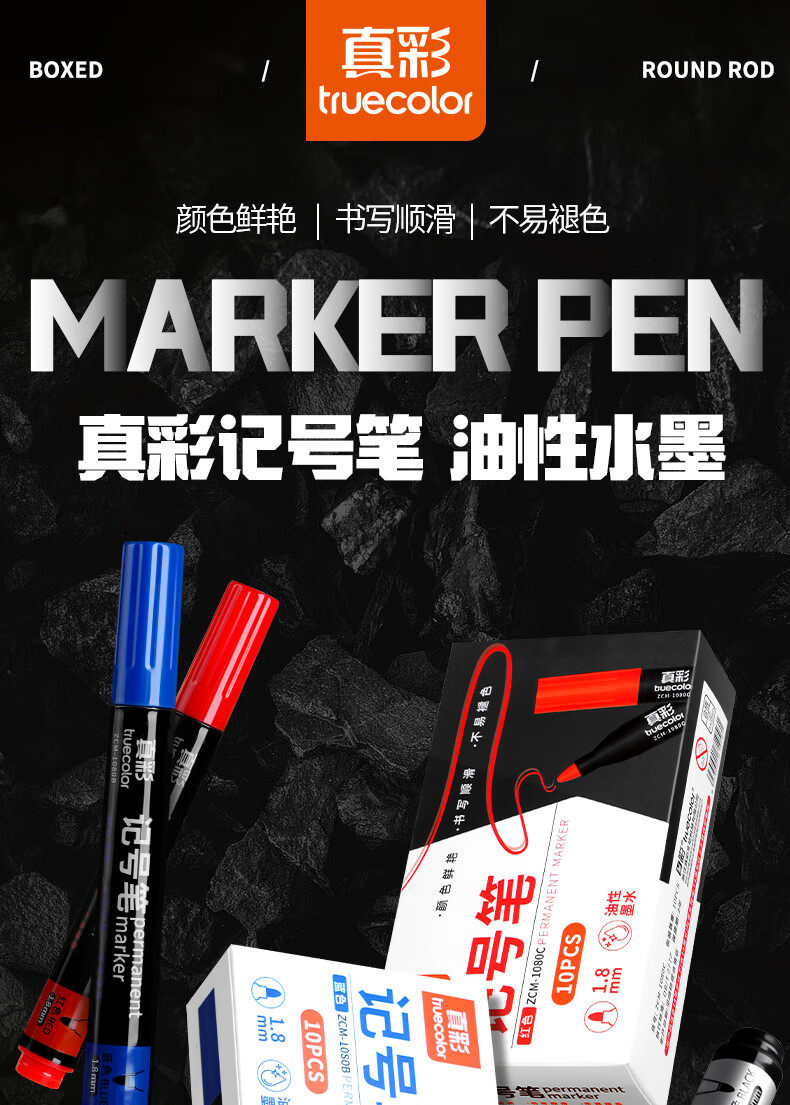 真彩(TRUECOLOR)记号笔黑色油性不可擦大头笔快递物流工地专用笔加长墨水笔粗头防水防油速干顺滑办公大容量1080
