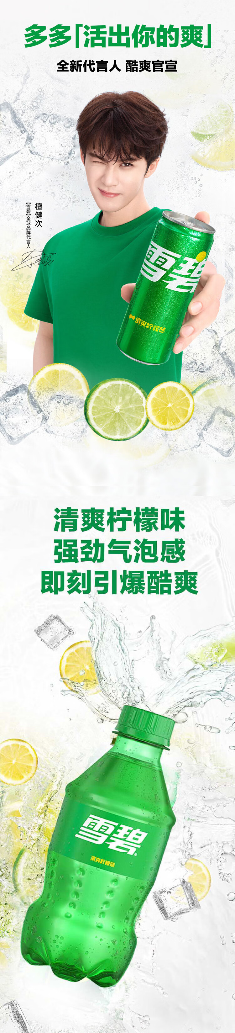 可口可乐(Coca-Cola)檀健次代言 雪碧 Sprite柠檬味汽水碳酸饮料300ml*24瓶 整箱装