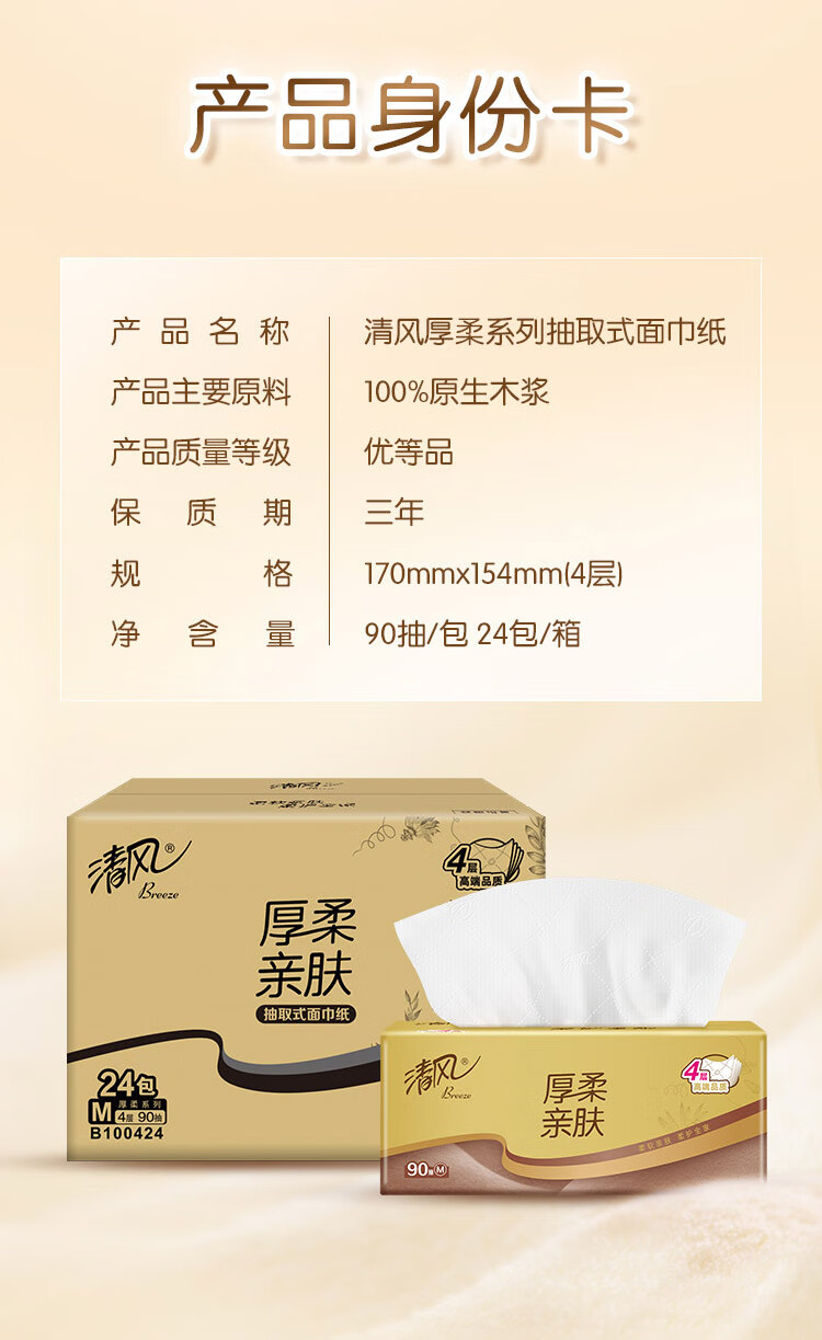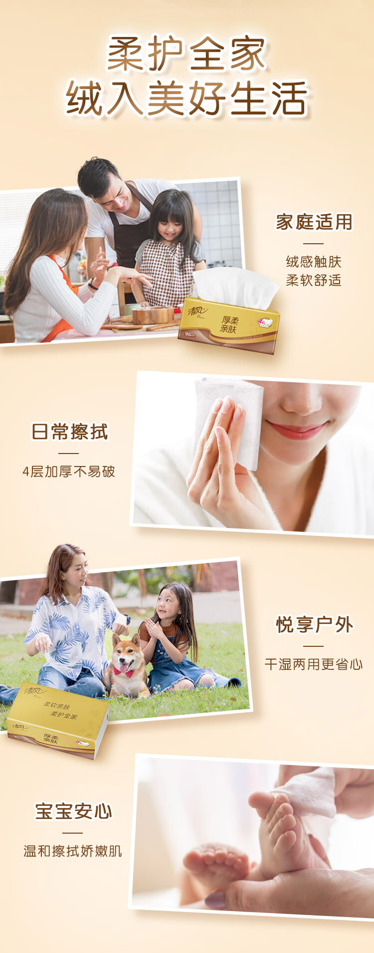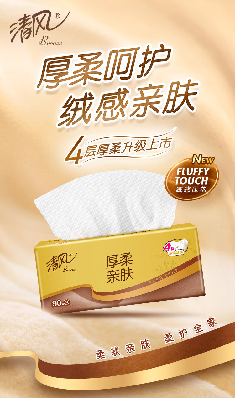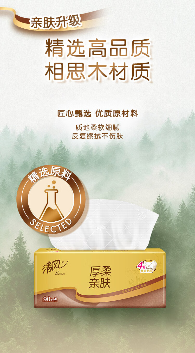 清风抽纸金装厚柔 360张*24包M码 4层纸巾抽 面巾纸餐巾纸 整箱装