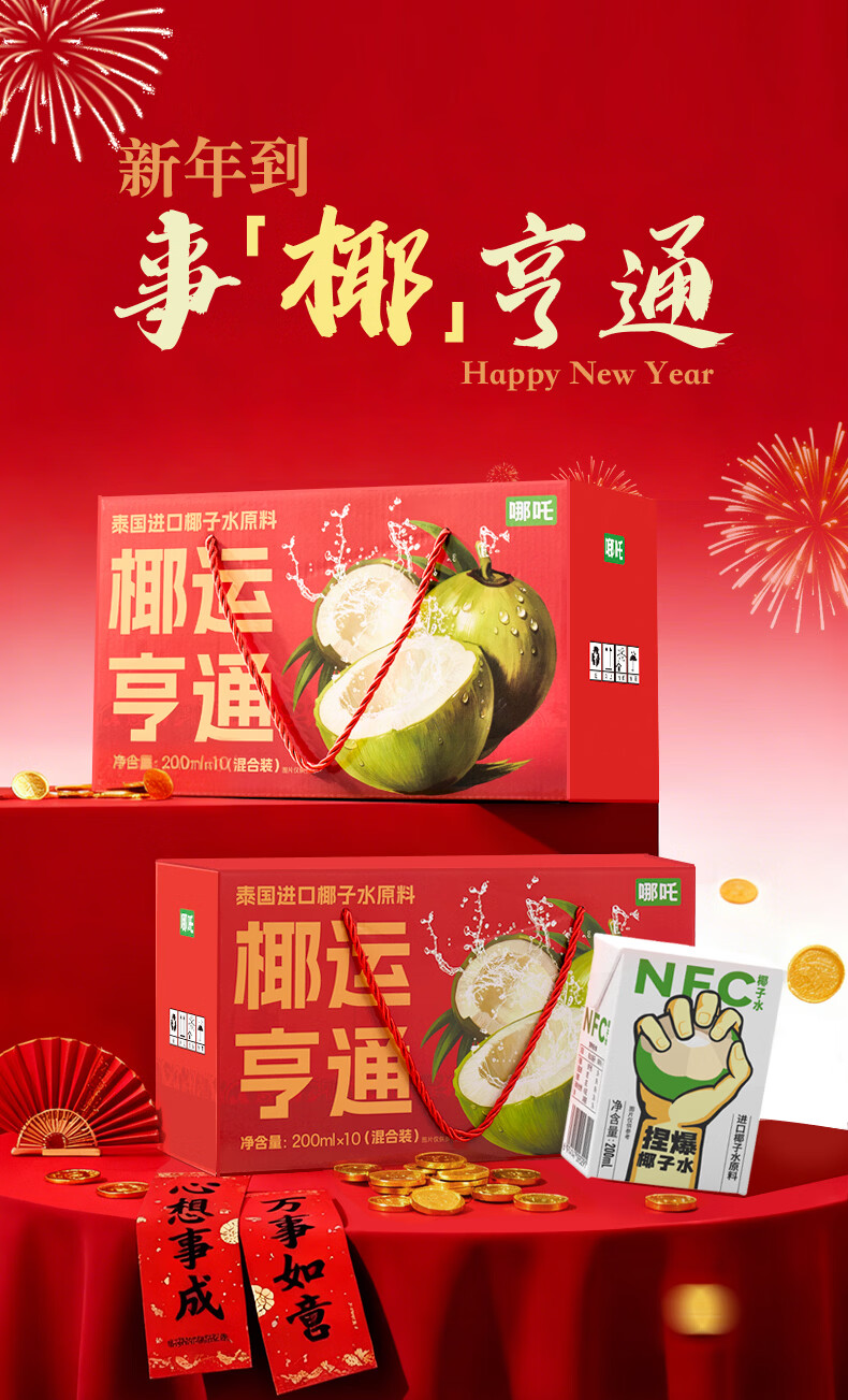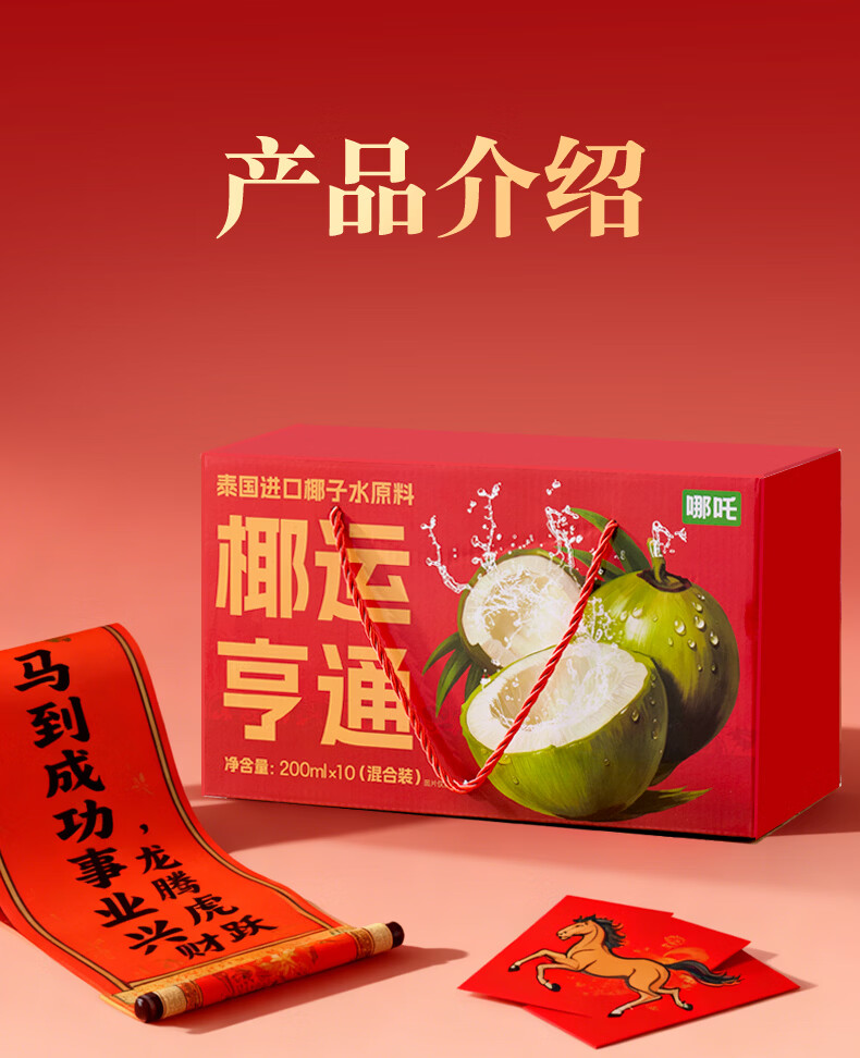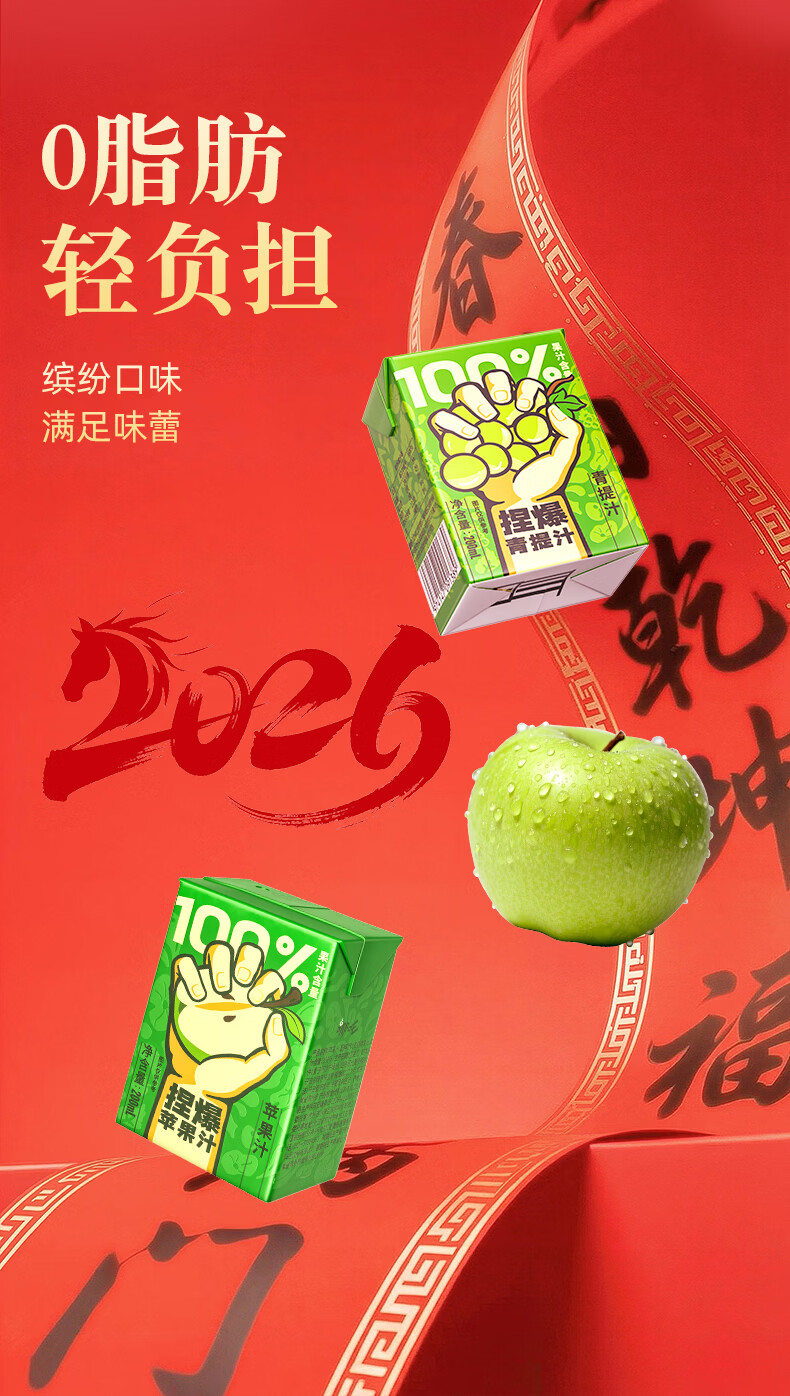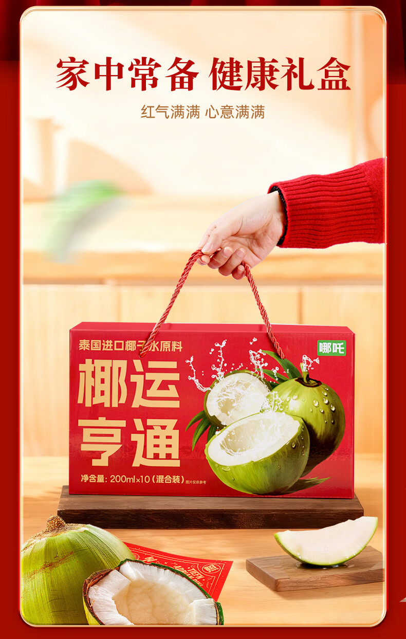 哪吒甜橙雪梨苹果青提青柠白桦树西梅汁椰子水年货送礼盒饮料品含维C 捏爆100%青提汁2L*2瓶 哪吒捏爆果汁