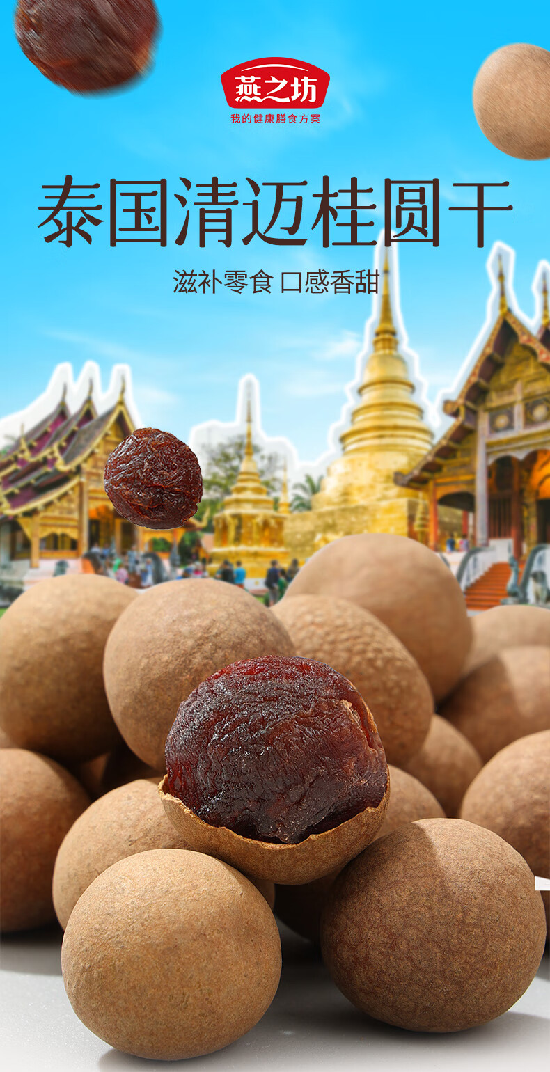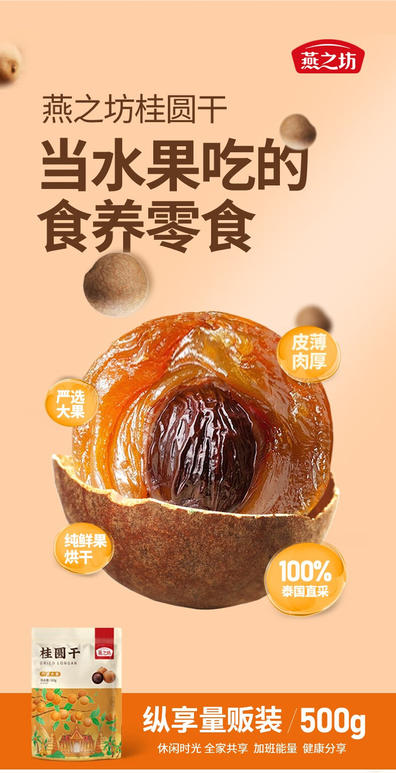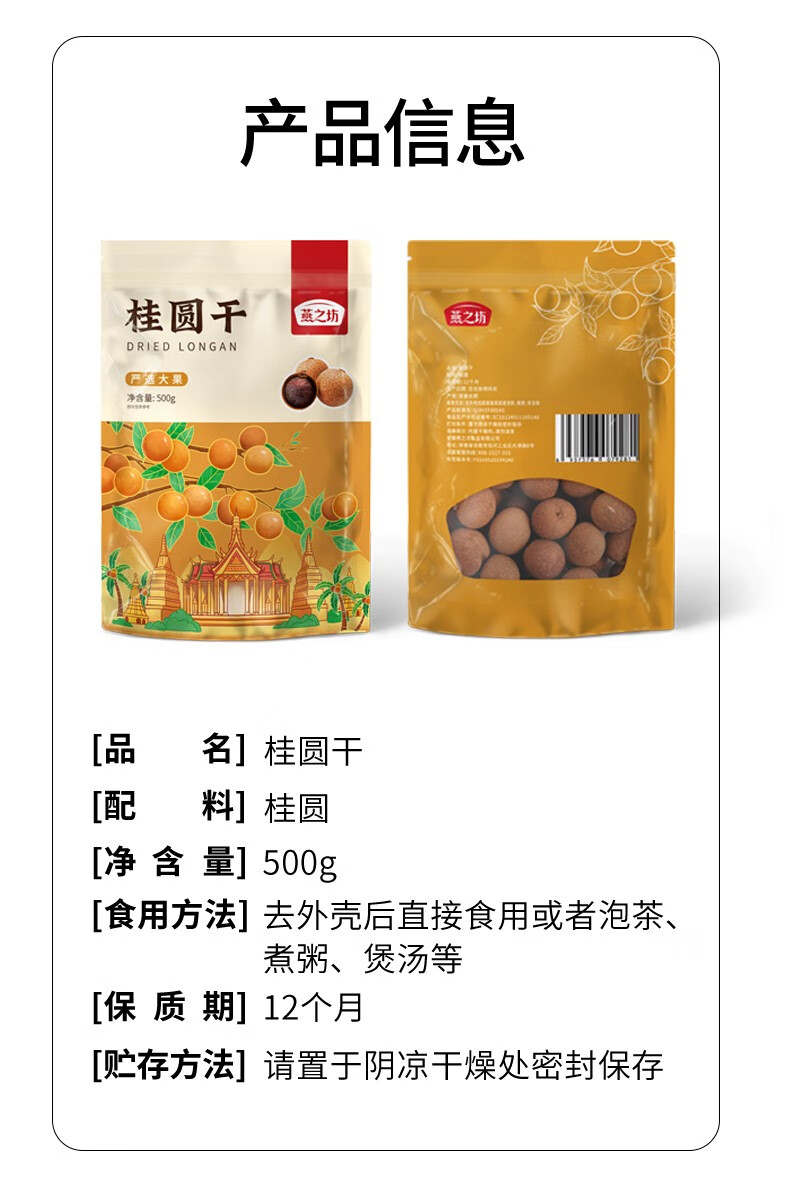 燕之坊桂圆干500g 去壳桂圆肉双A大果肉厚龙眼干煲汤食材肉厚可泡茶即食 泰国清迈桂圆干500g*1袋