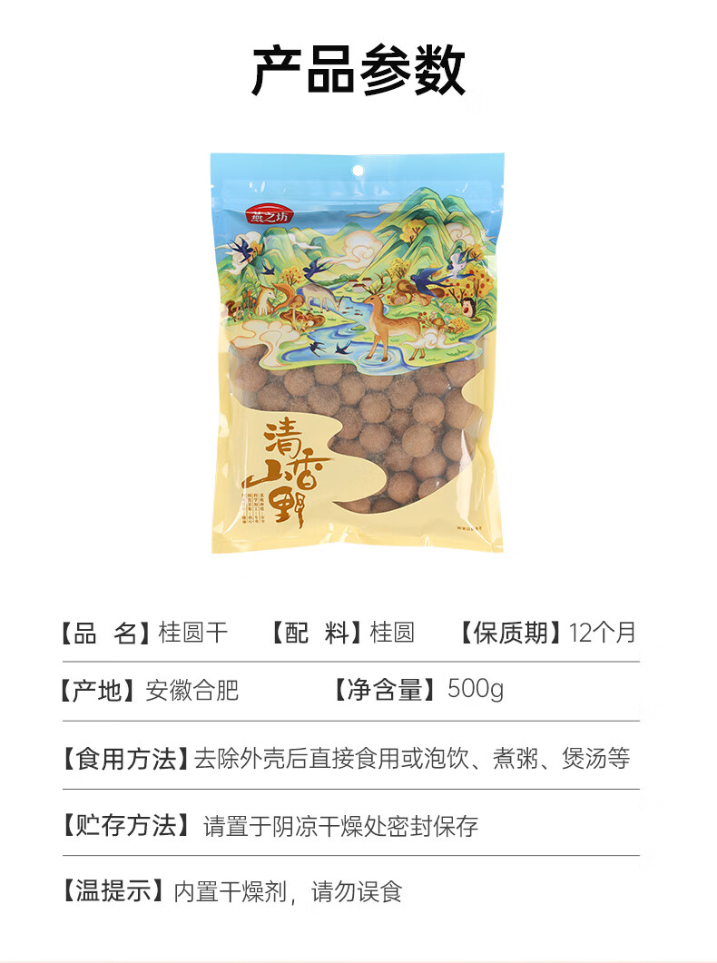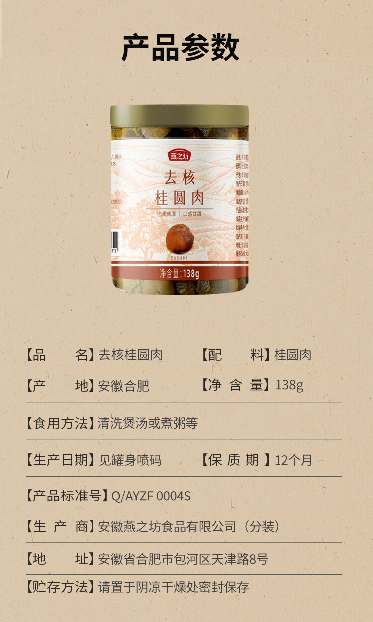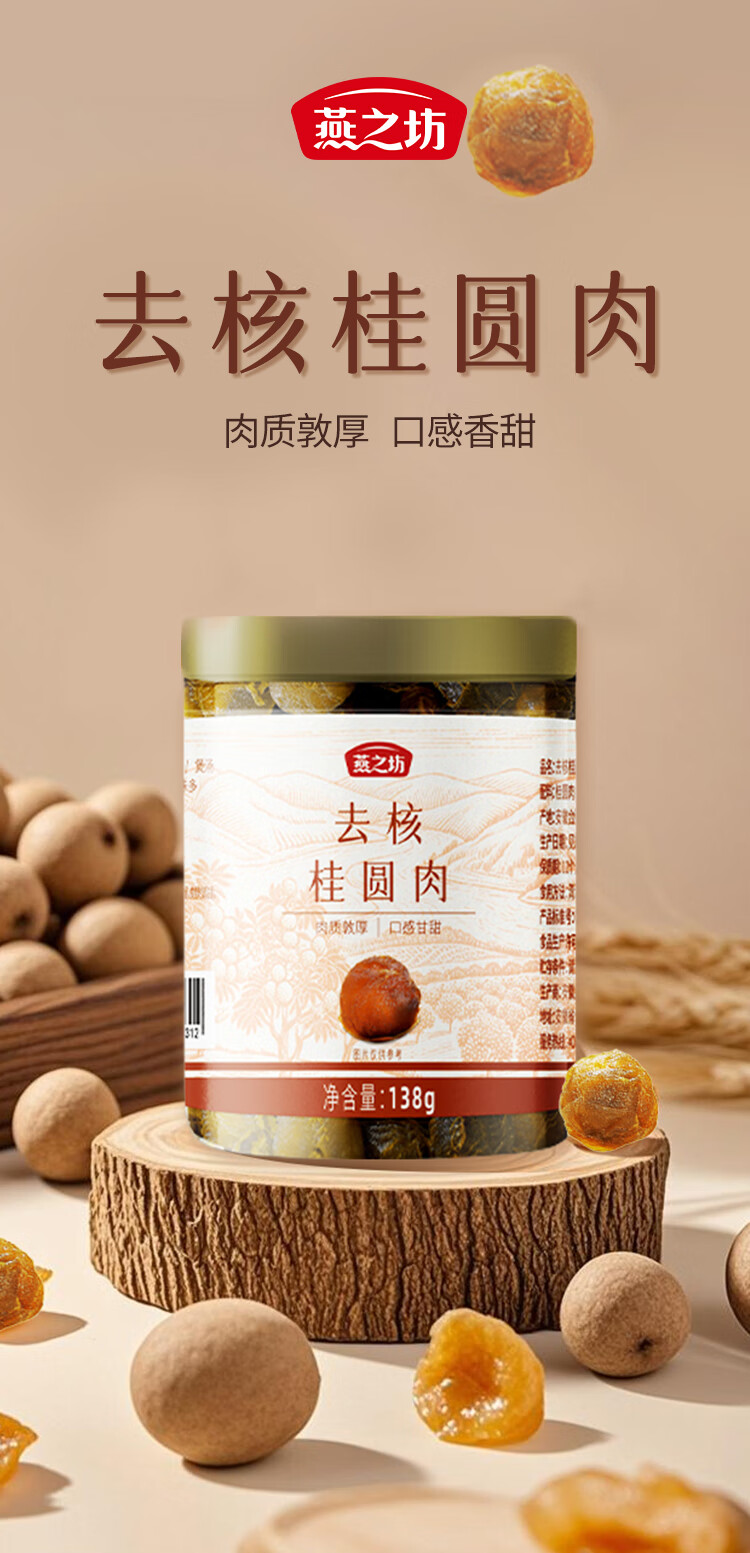燕之坊桂圆干500g 去壳桂圆肉双A大果肉厚龙眼干煲汤食材肉厚可泡茶即食 泰国清迈桂圆干500g*1袋