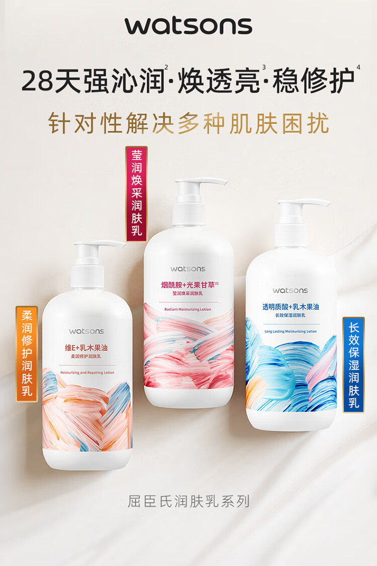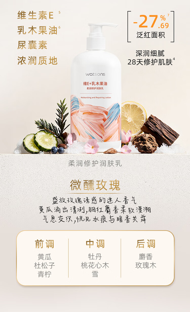 屈臣氏身体乳维E柔滑保湿润肤露500毫升 滋养锁水身体乳润肤乳呵护秋天