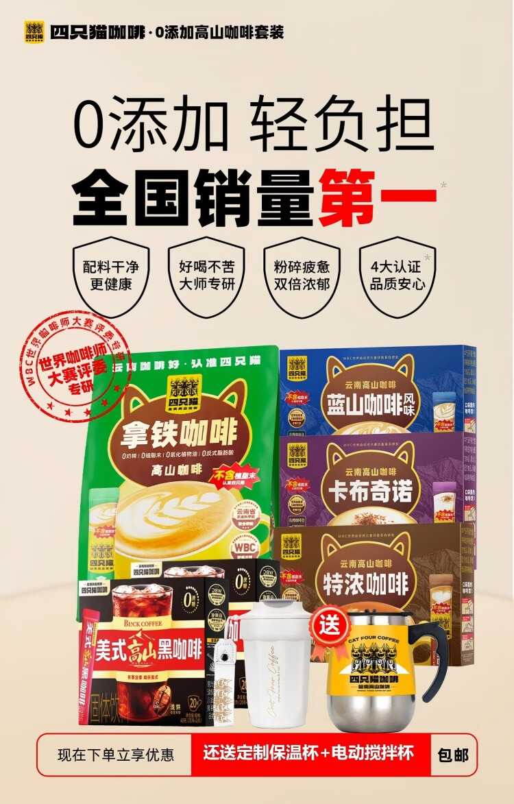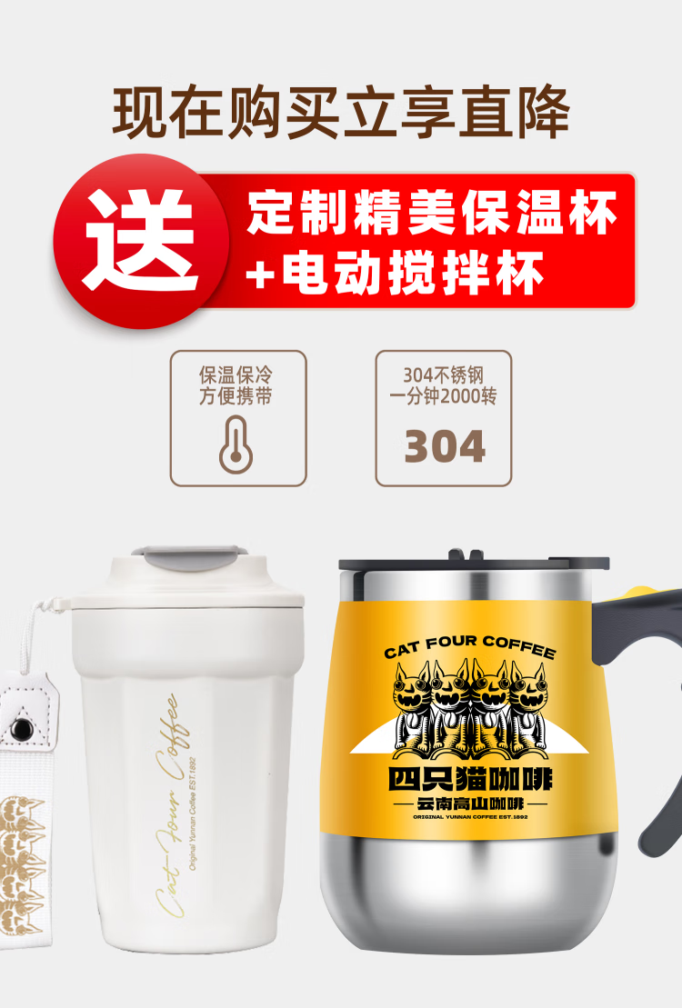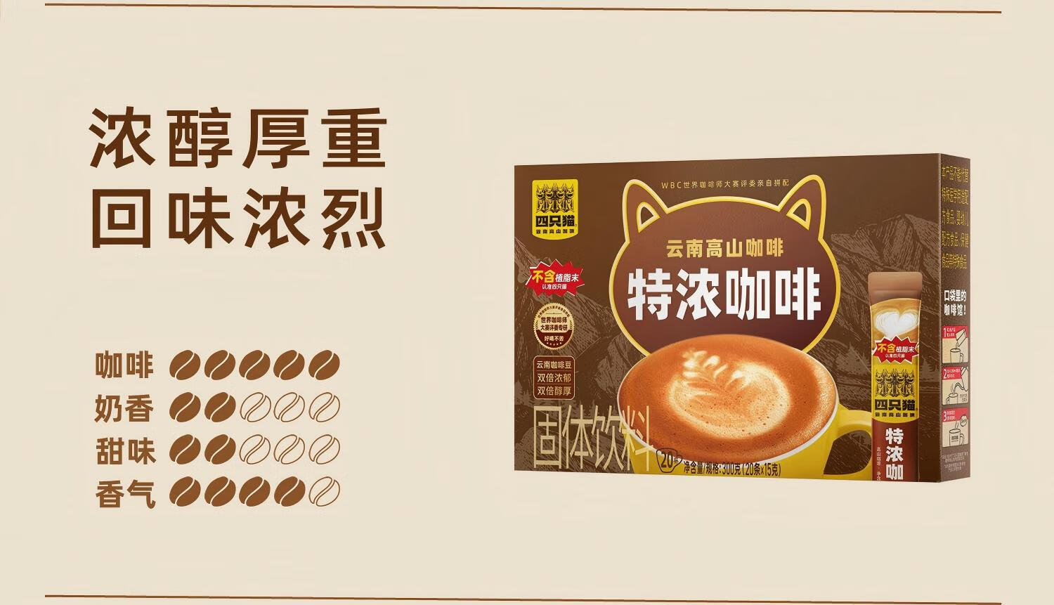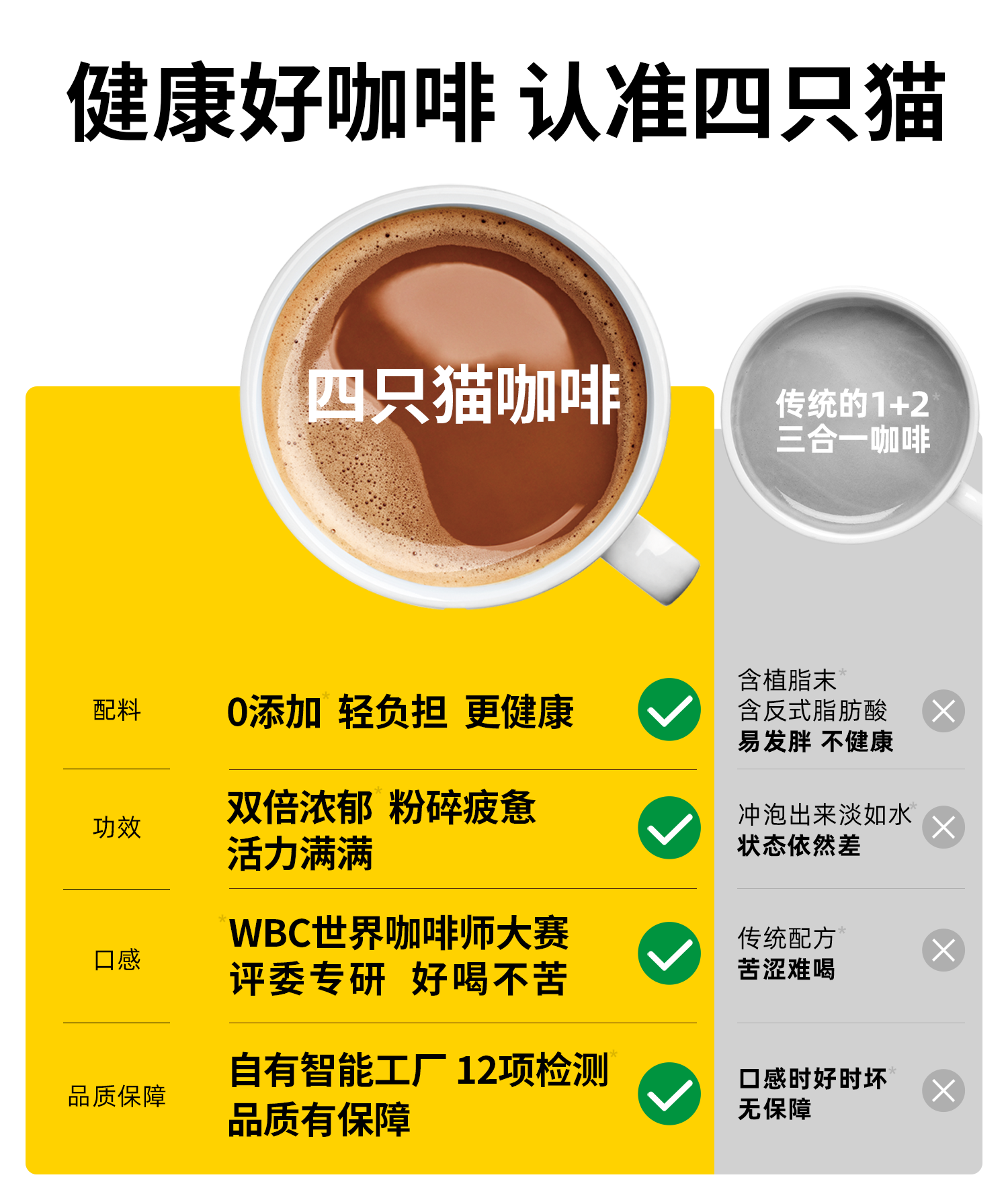 四只猫咖啡130杯咖啡 搅拌杯 保温杯 拿铁蓝山特浓卡布黑咖啡速溶咖啡 1430g