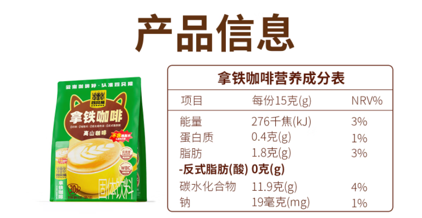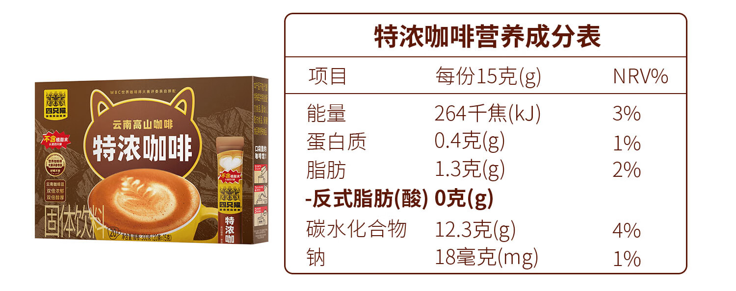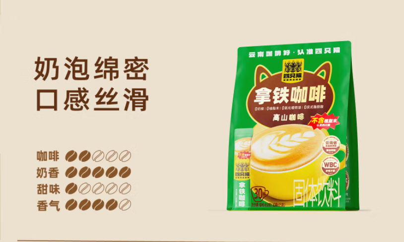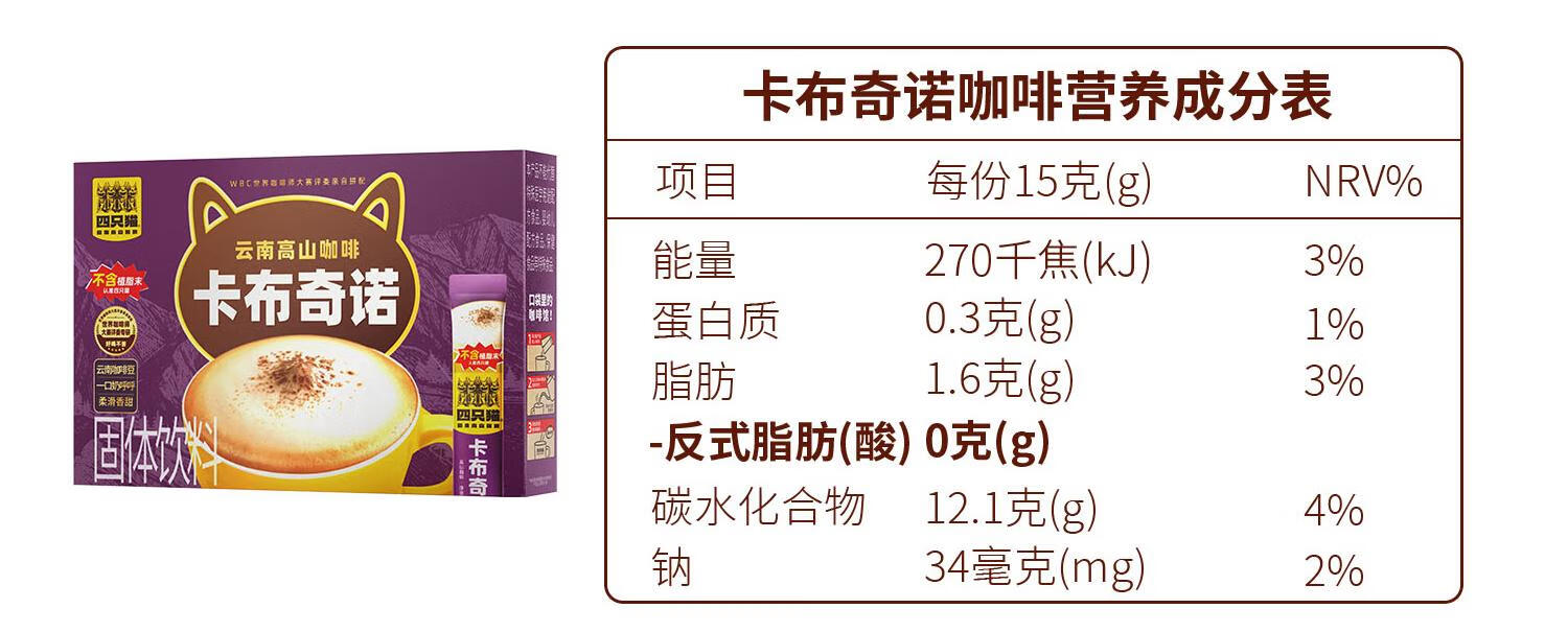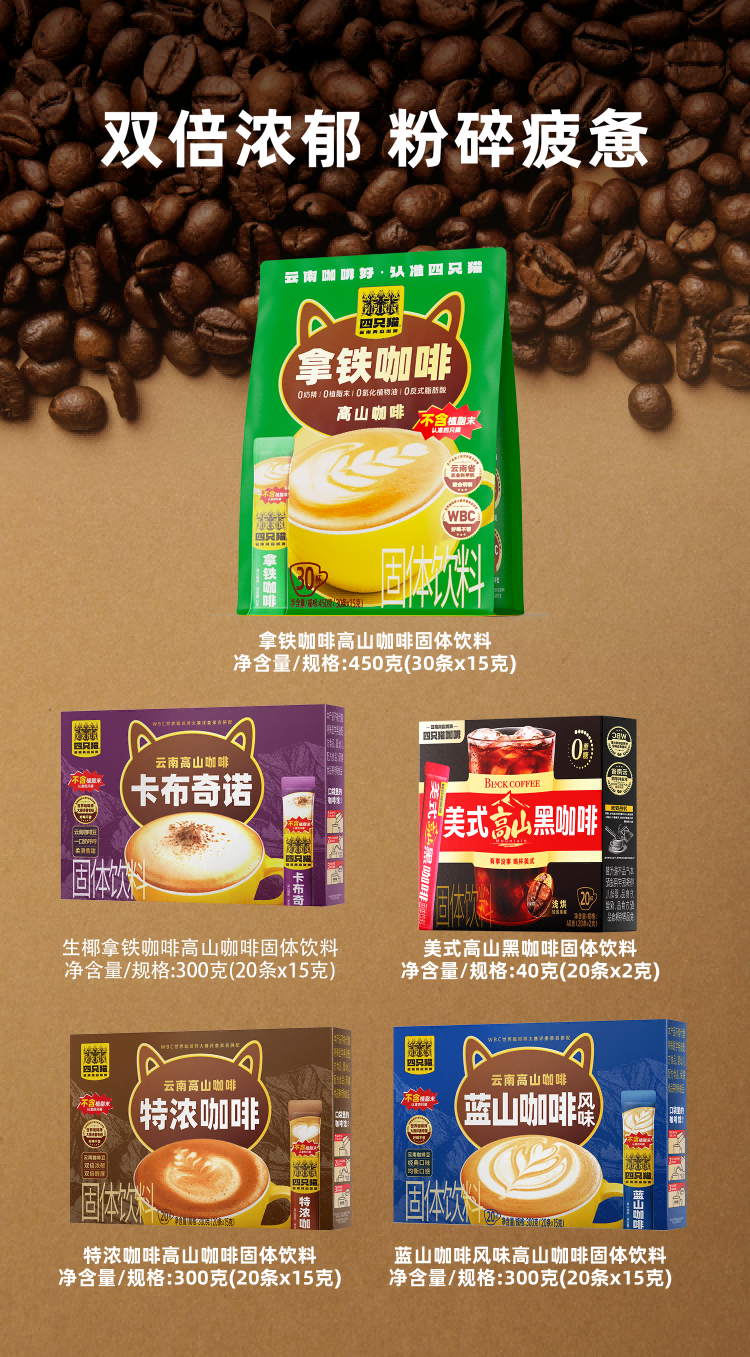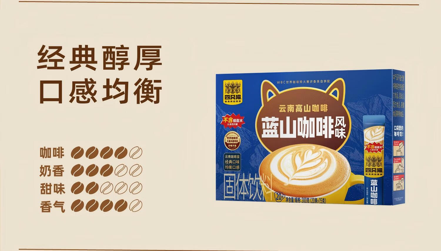 四只猫咖啡130杯咖啡 搅拌杯 保温杯 拿铁蓝山特浓卡布黑咖啡速溶咖啡 1430g