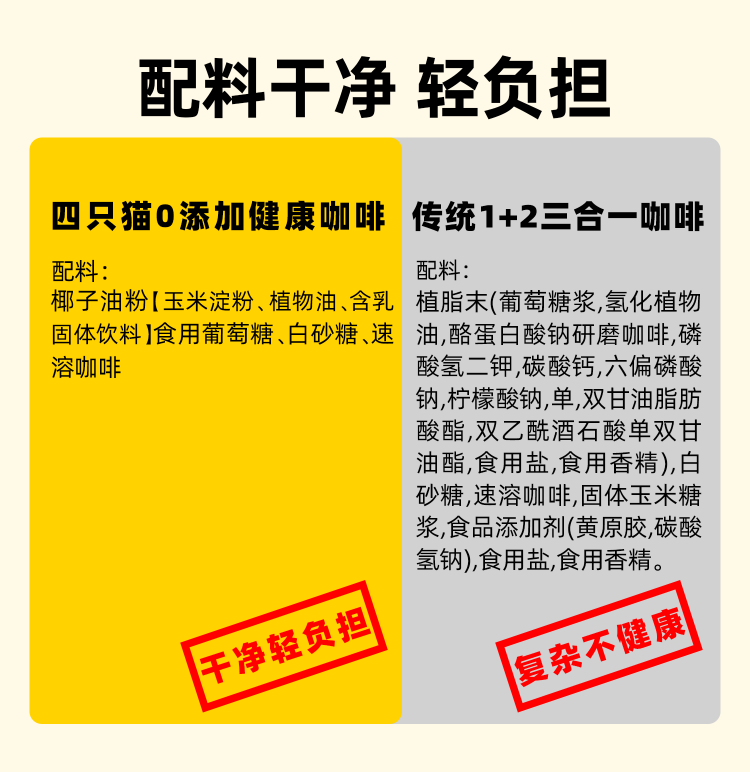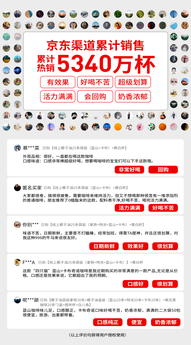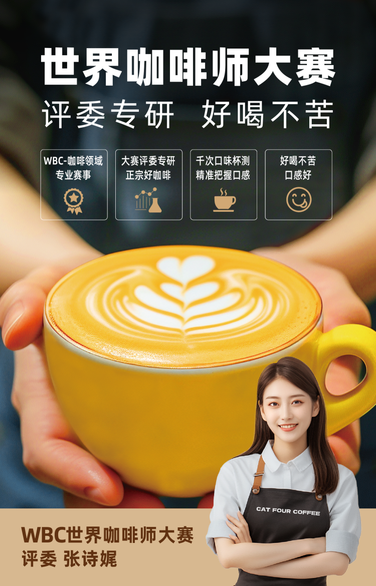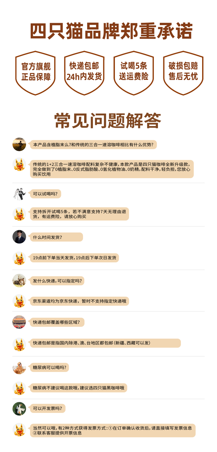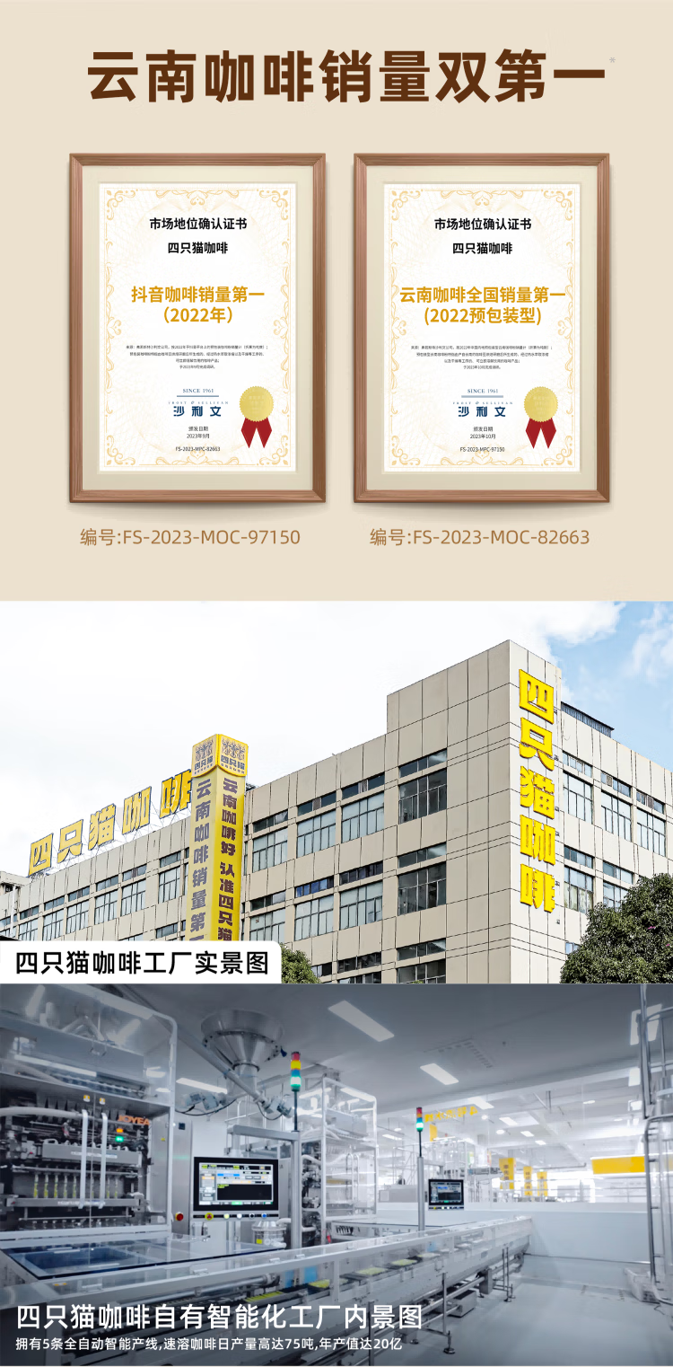 四只猫咖啡130杯咖啡 搅拌杯 保温杯 拿铁蓝山特浓卡布黑咖啡速溶咖啡 1430g