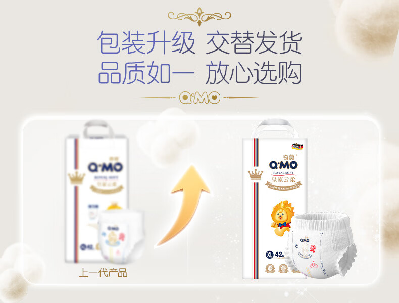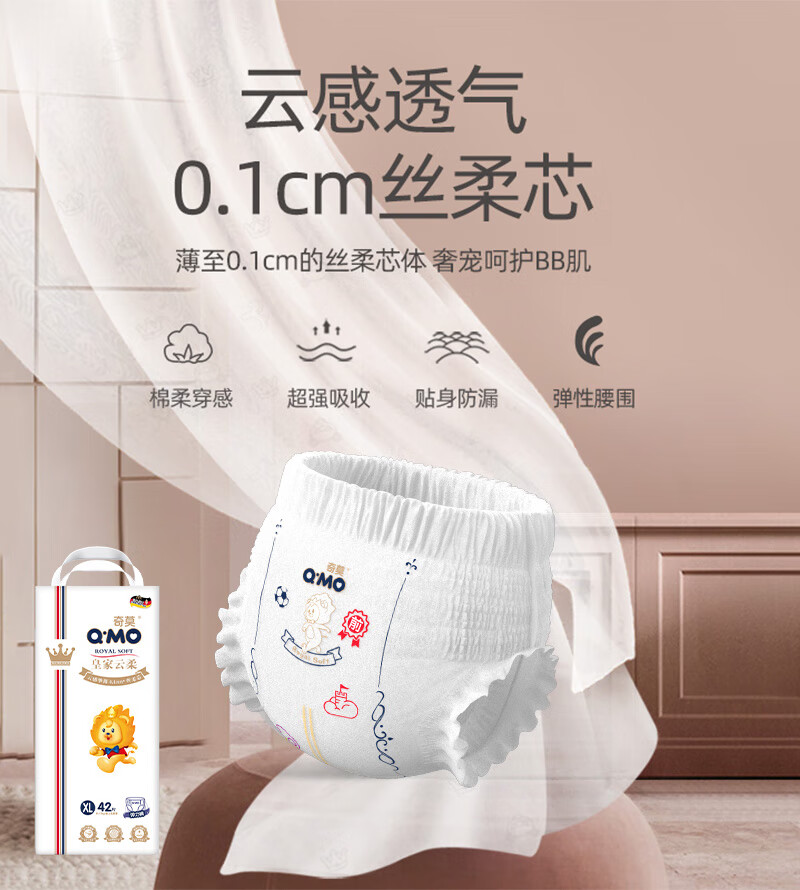 奇莫Q-MO皇家云柔拉拉裤XL42片(12-17kg)加大码弹力裤尿不湿超薄透气