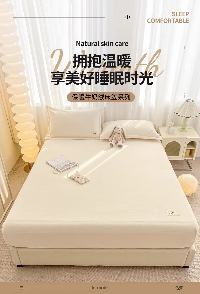 猫人(MiiOW)冬季加厚牛奶绒床笠单件1.8米x2米全包床垫保护套宿舍加绒床垫罩 雪白【高克重牛奶绒】 90x200cm单床笠【亲肤不掉毛】