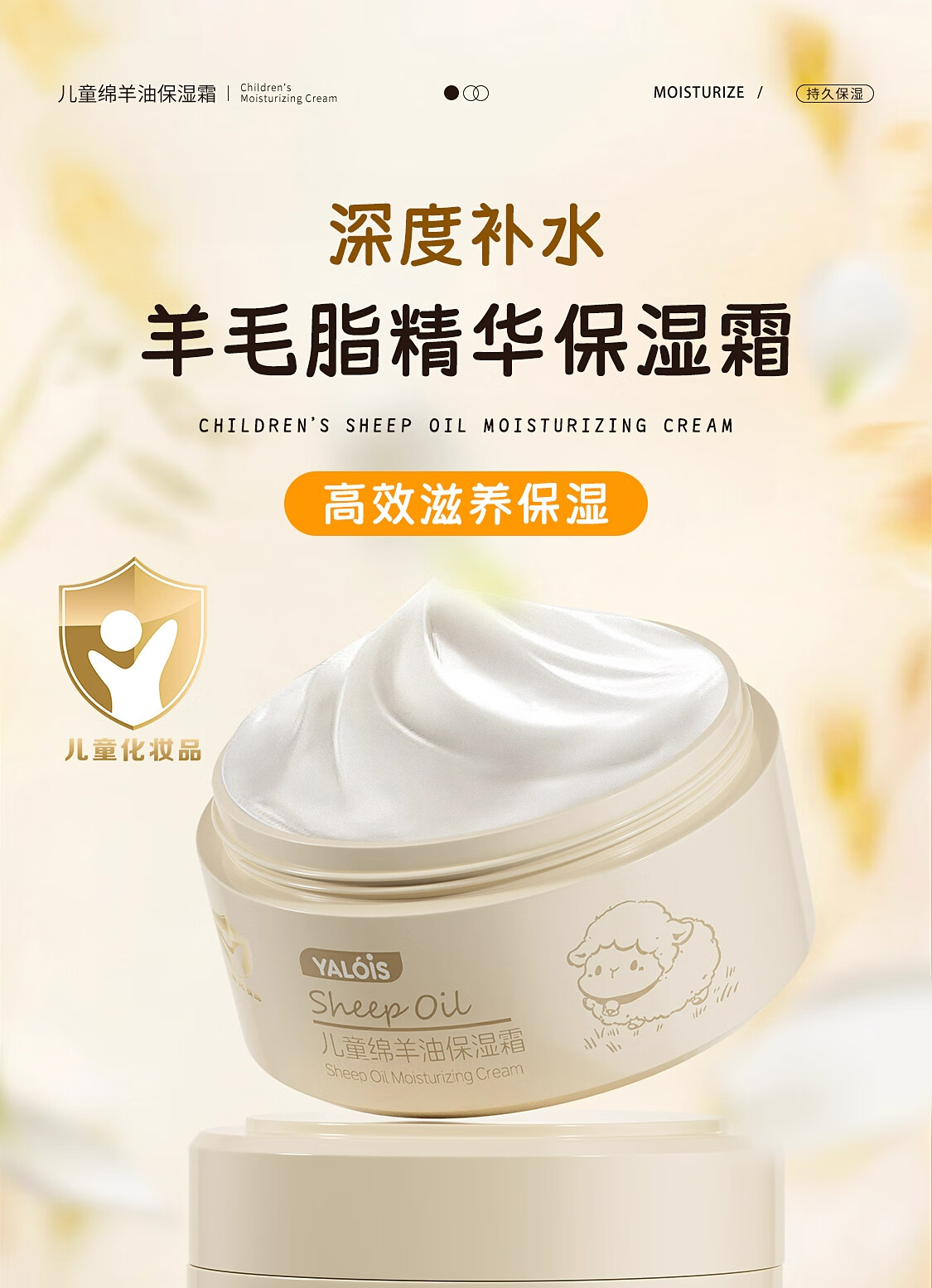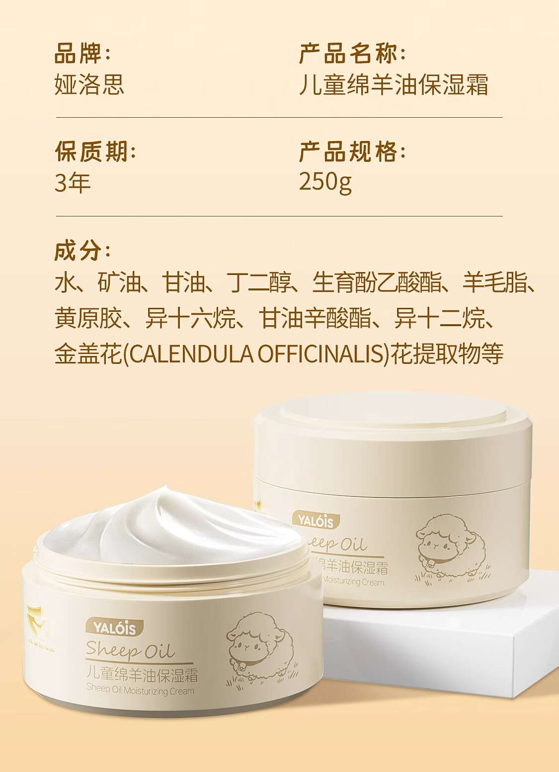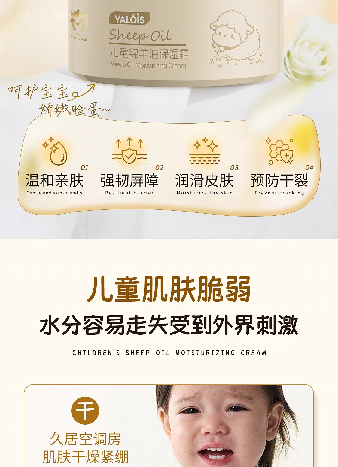 YALOIS儿童绵羊油保湿面霜婴幼儿润肤乳修护舒缓清爽不油护肤霜250g