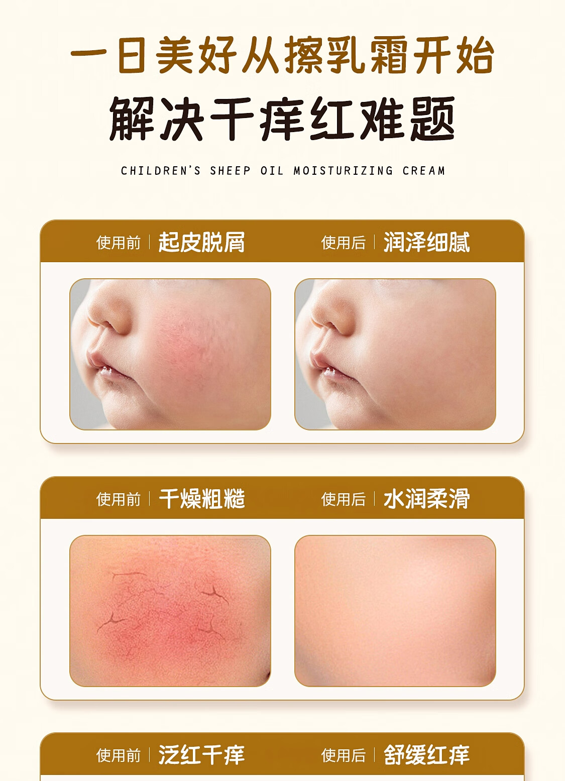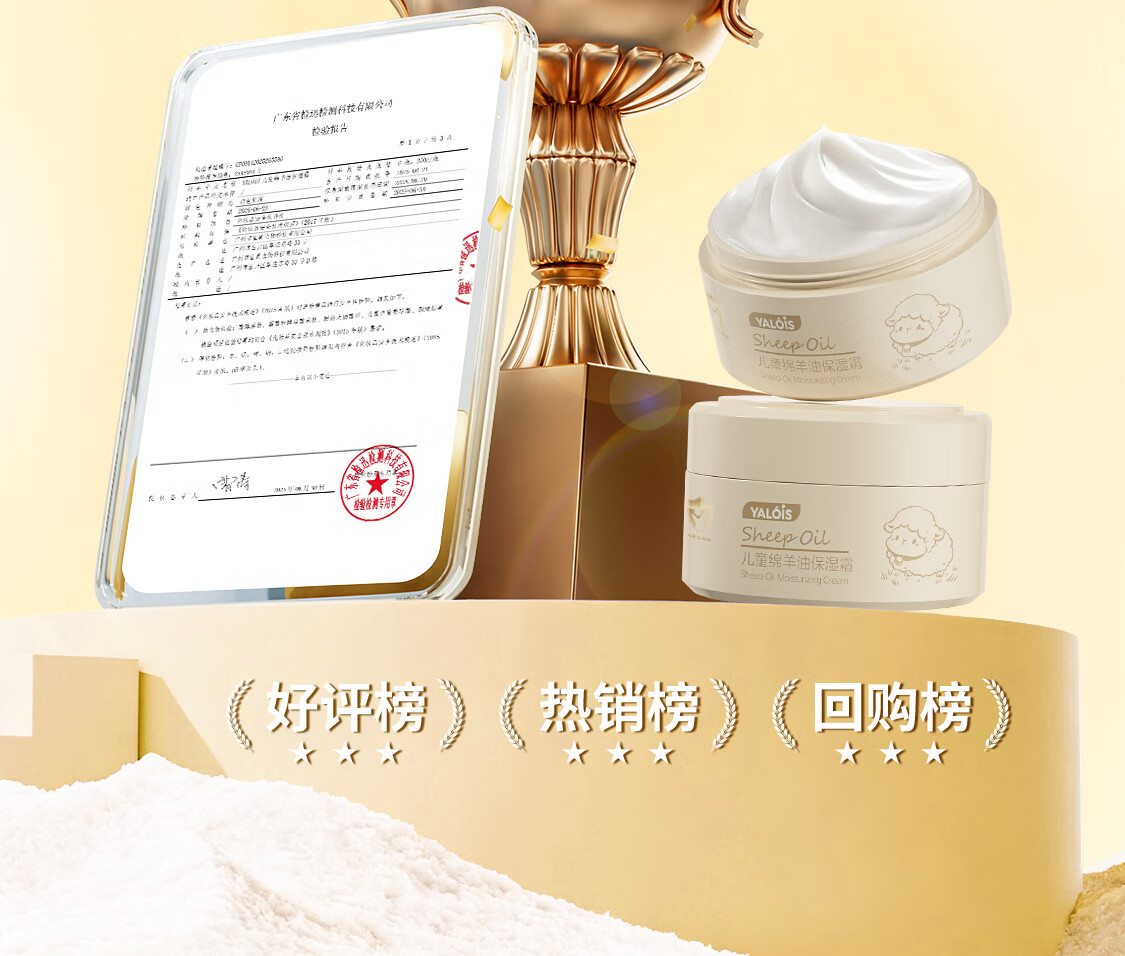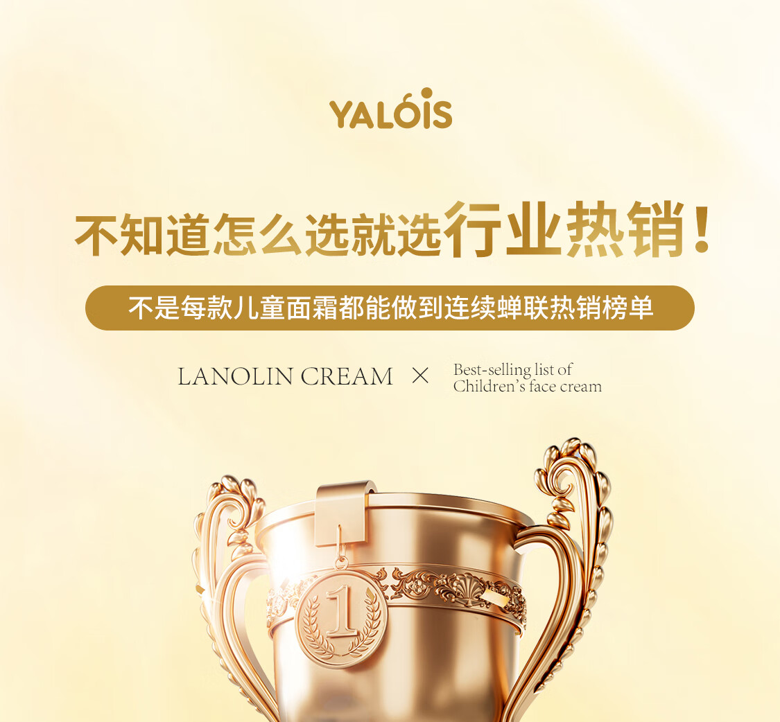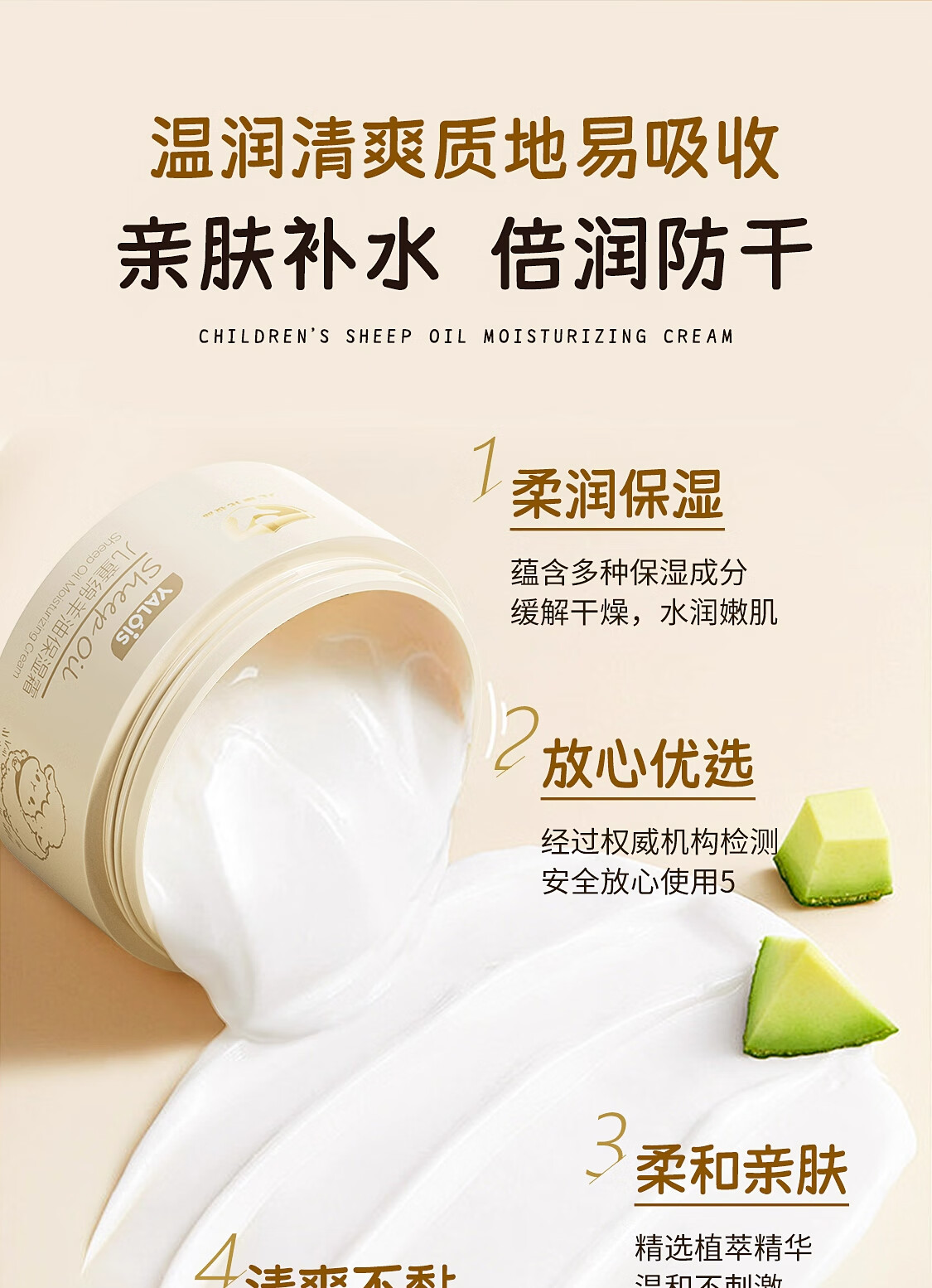 YALOIS儿童绵羊油保湿面霜婴幼儿润肤乳修护舒缓清爽不油护肤霜250g