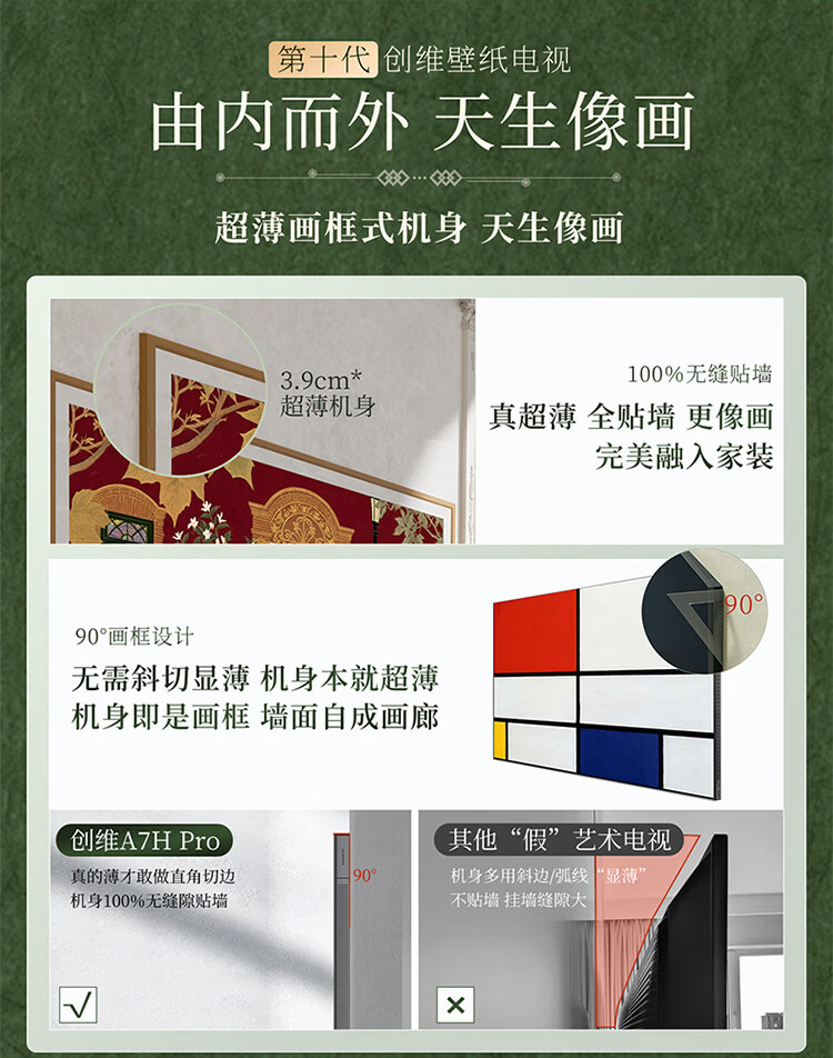 创维电视85A7H Pro 85英寸艺术壁纸电视Mini LED 3.9cm超薄无缝贴墙平板电视机 家电国家补贴A7F升级款
