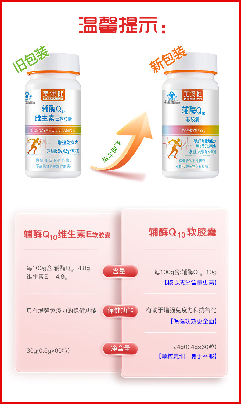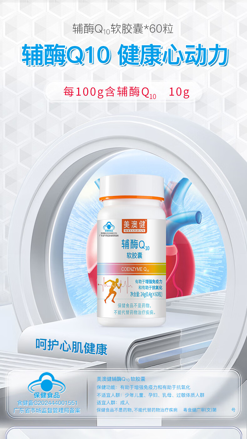 美澳健(MEIAOJIAN)拍1发2辅酶q10软胶囊60粒成人中老年人增强免疫力药店同款辅酶Q10 专柜辅酶Q10胶囊 60粒*1瓶 送1礼