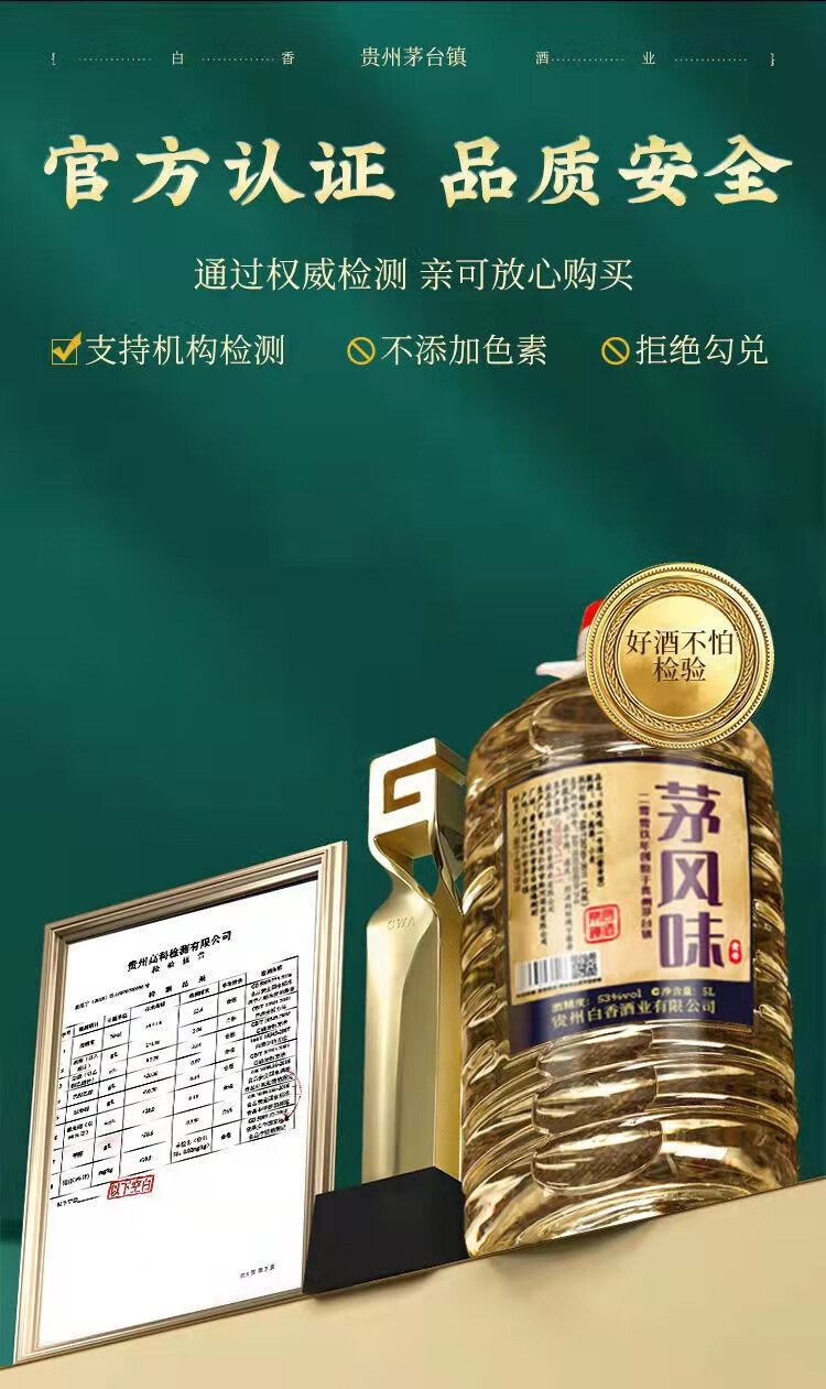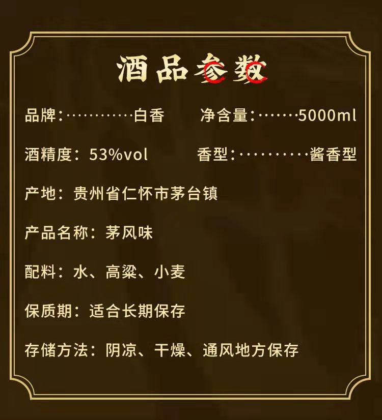 BAIXIANG茅台镇纯粮食散装白酒53度酱香型桶装白酒泡酒专用基酒高粱散酒 53%vol 5L 1桶