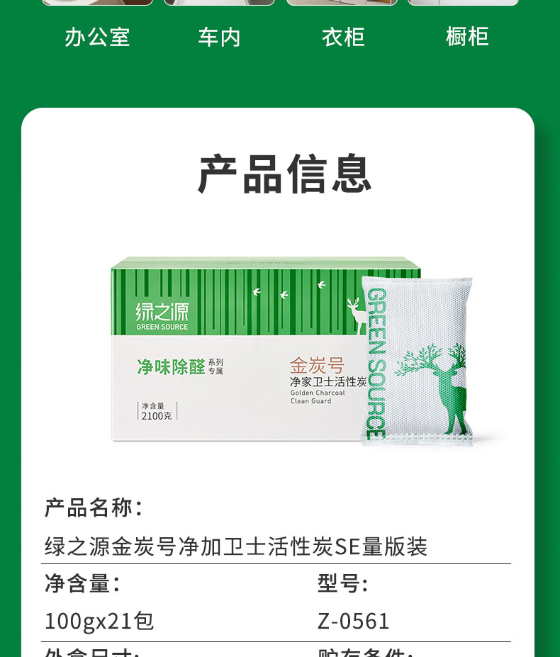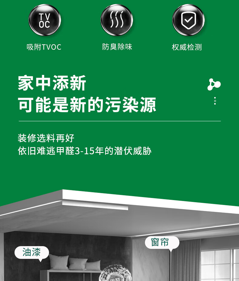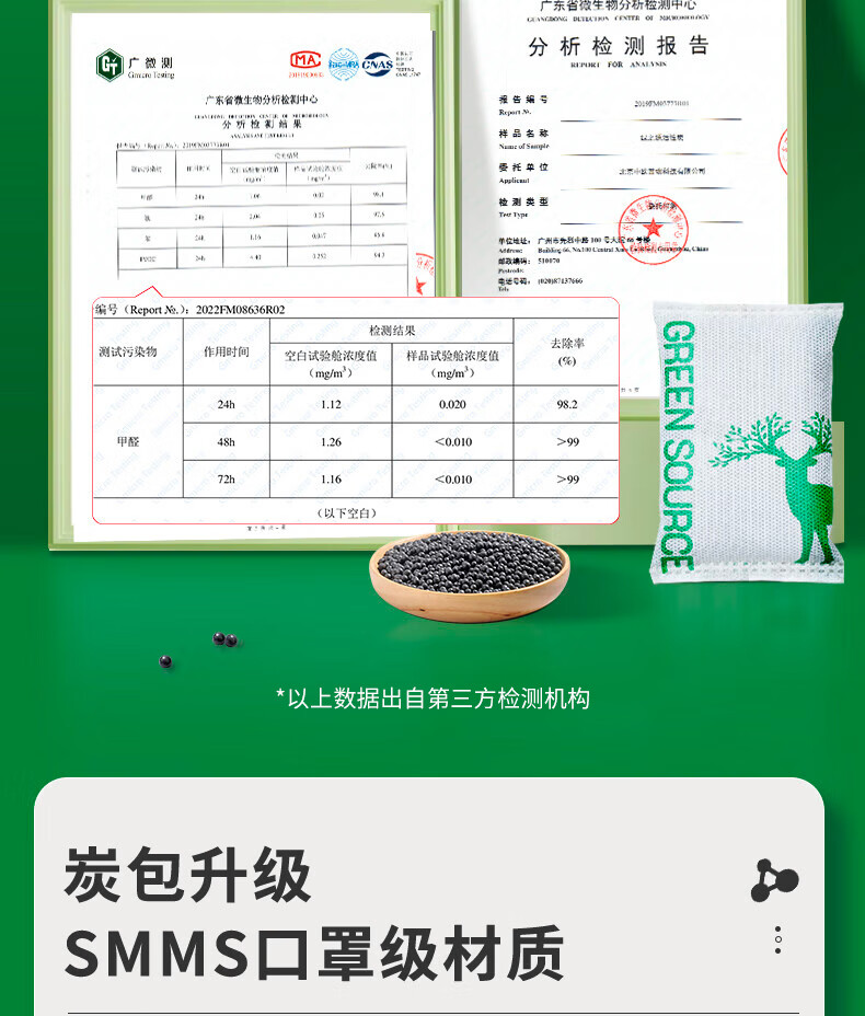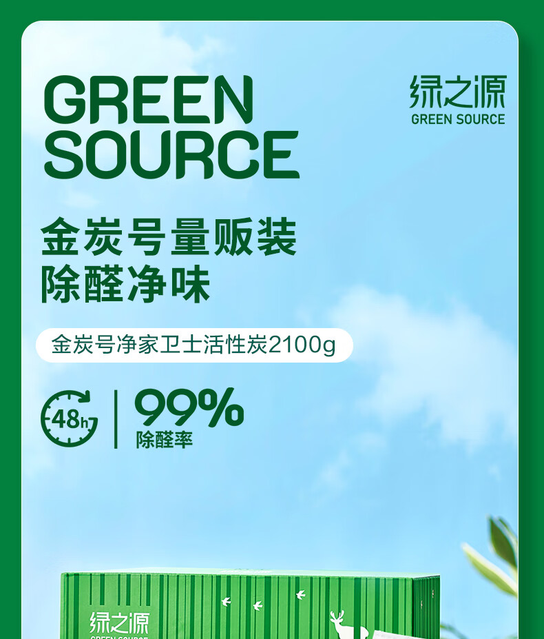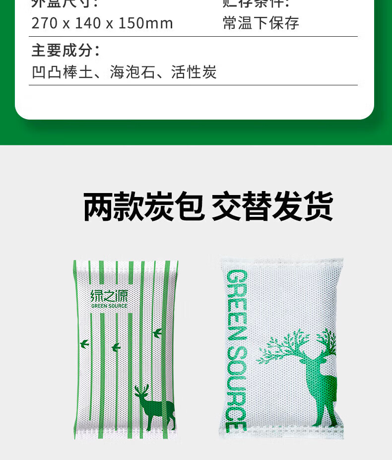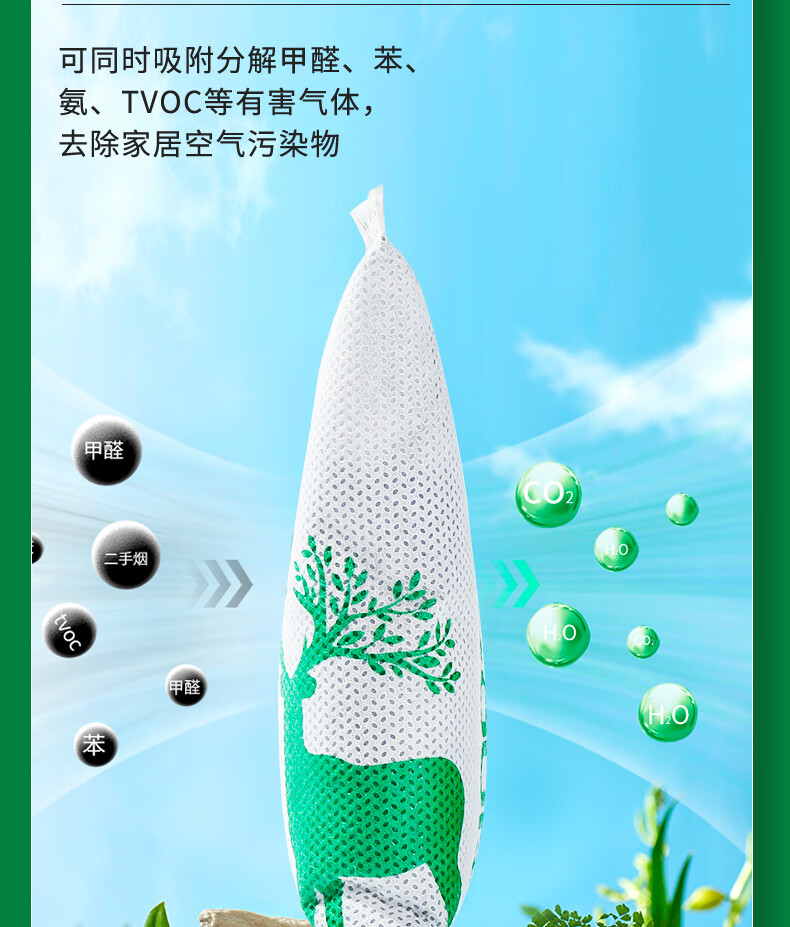 绿之源 活性炭除甲醛去甲醛炭包去甲醛新房汽车除味竹碳包除甲醛除味 Mn25高碘值活性炭吸附分解6盒